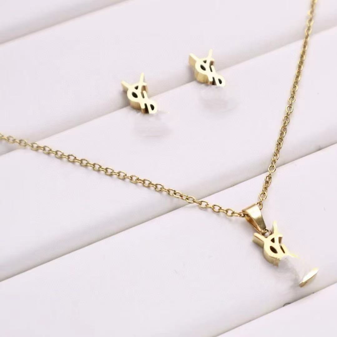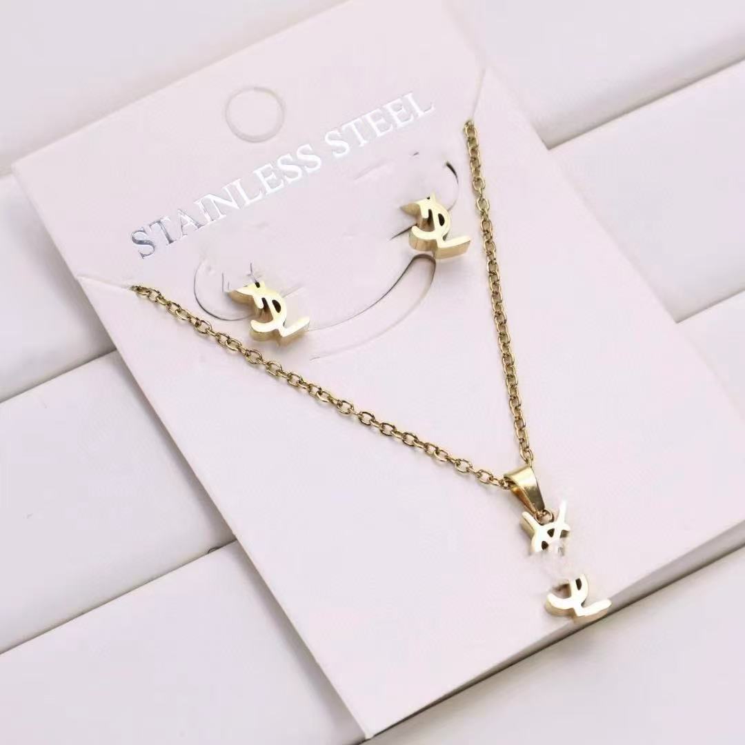 Fashionable High-End Light Luxury Exquisite Necklace and Earring Set with Yangshulin Letter Fine Chain Stainless Steel Temperament Set