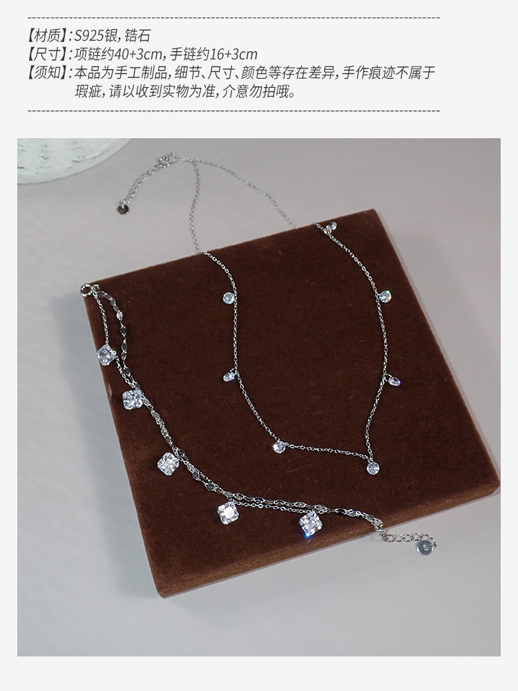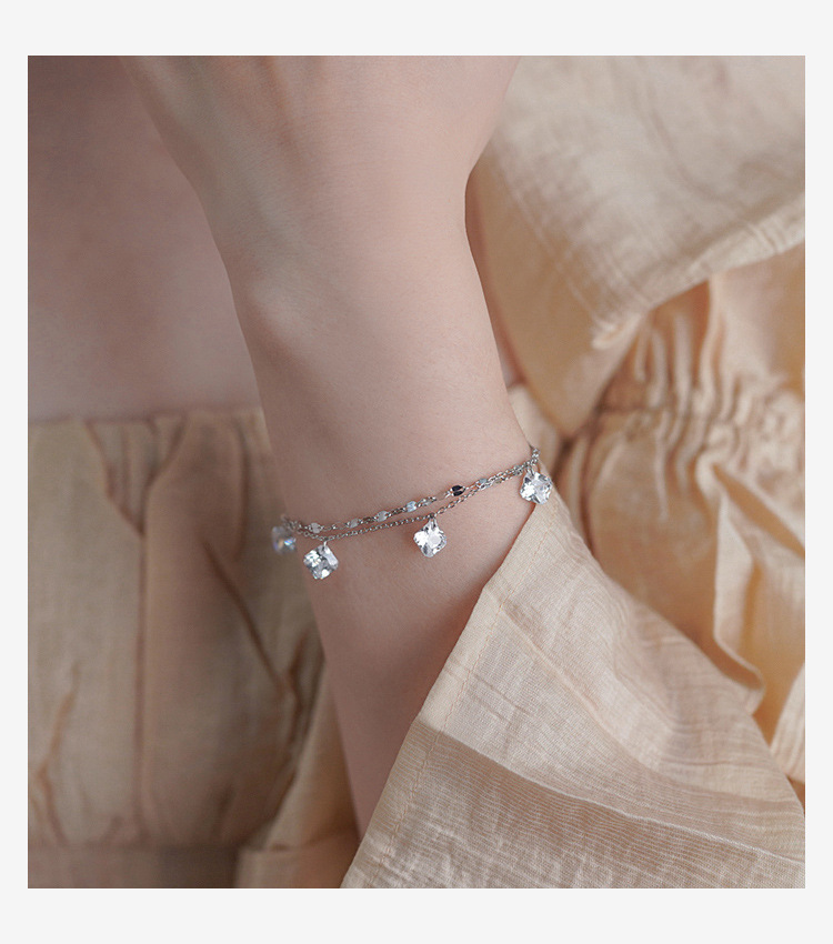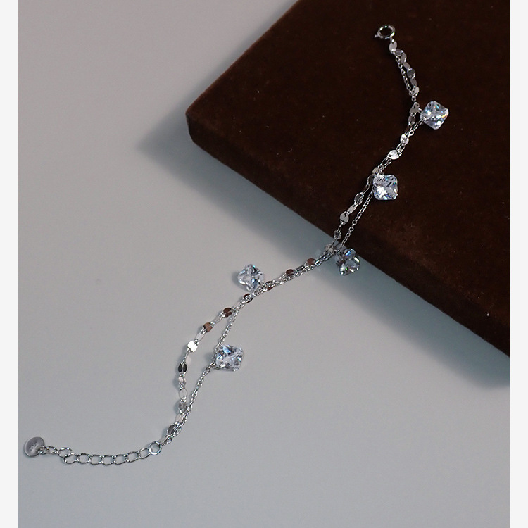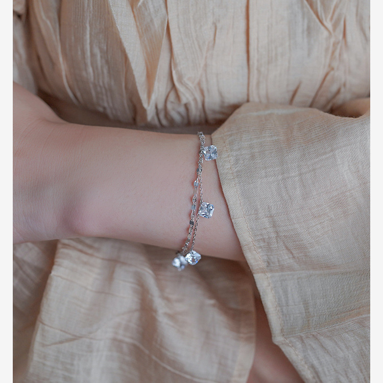 Niche Design Square Zircon Lip Chain Double Layer Bracelet 925 Sterling Silver Simple Commuter Bracelet Ins Women's 40708