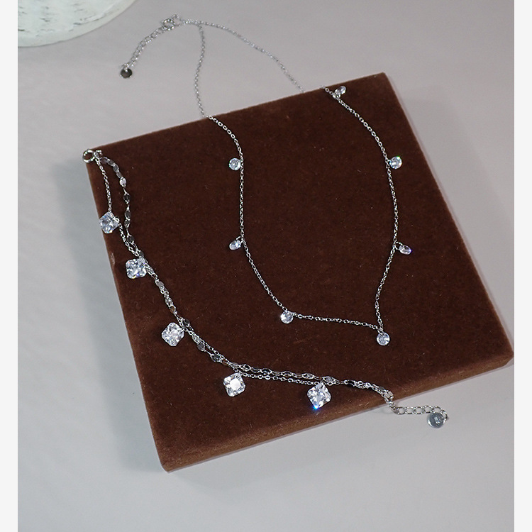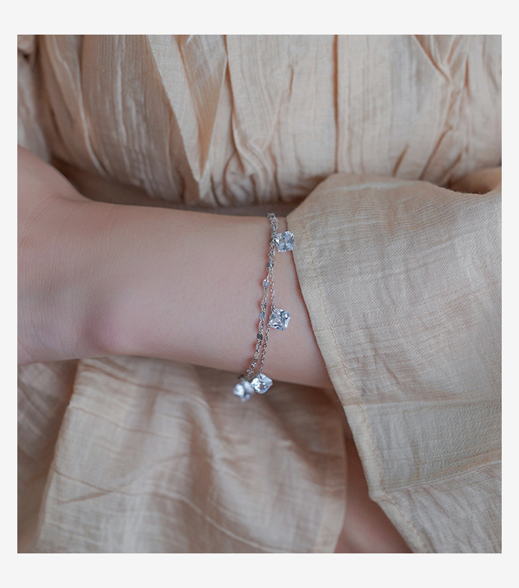 Color: 40708 Square Zirconium Lip Chain Double Layer Bracelet