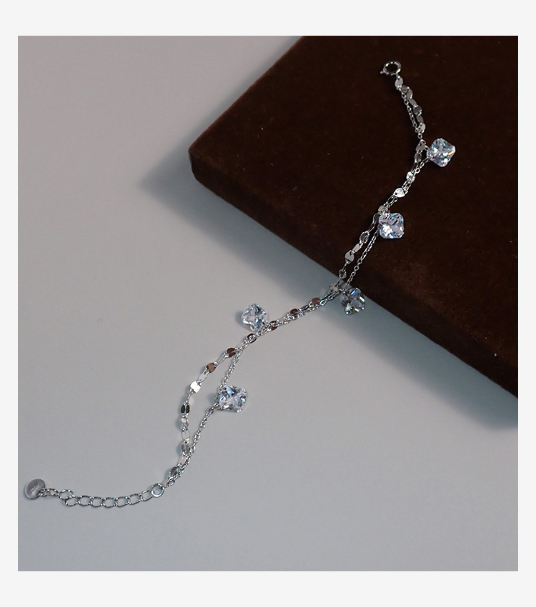 40708 Square Zirconium Lip Chain Double Layer Bracelet