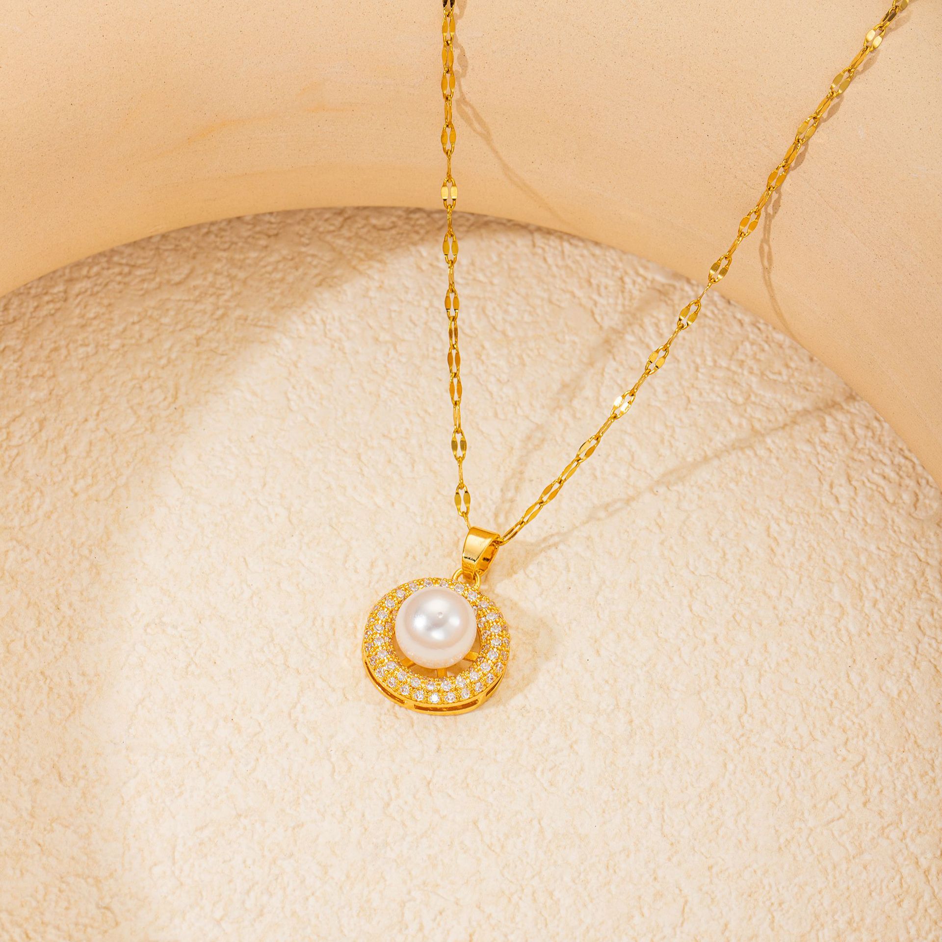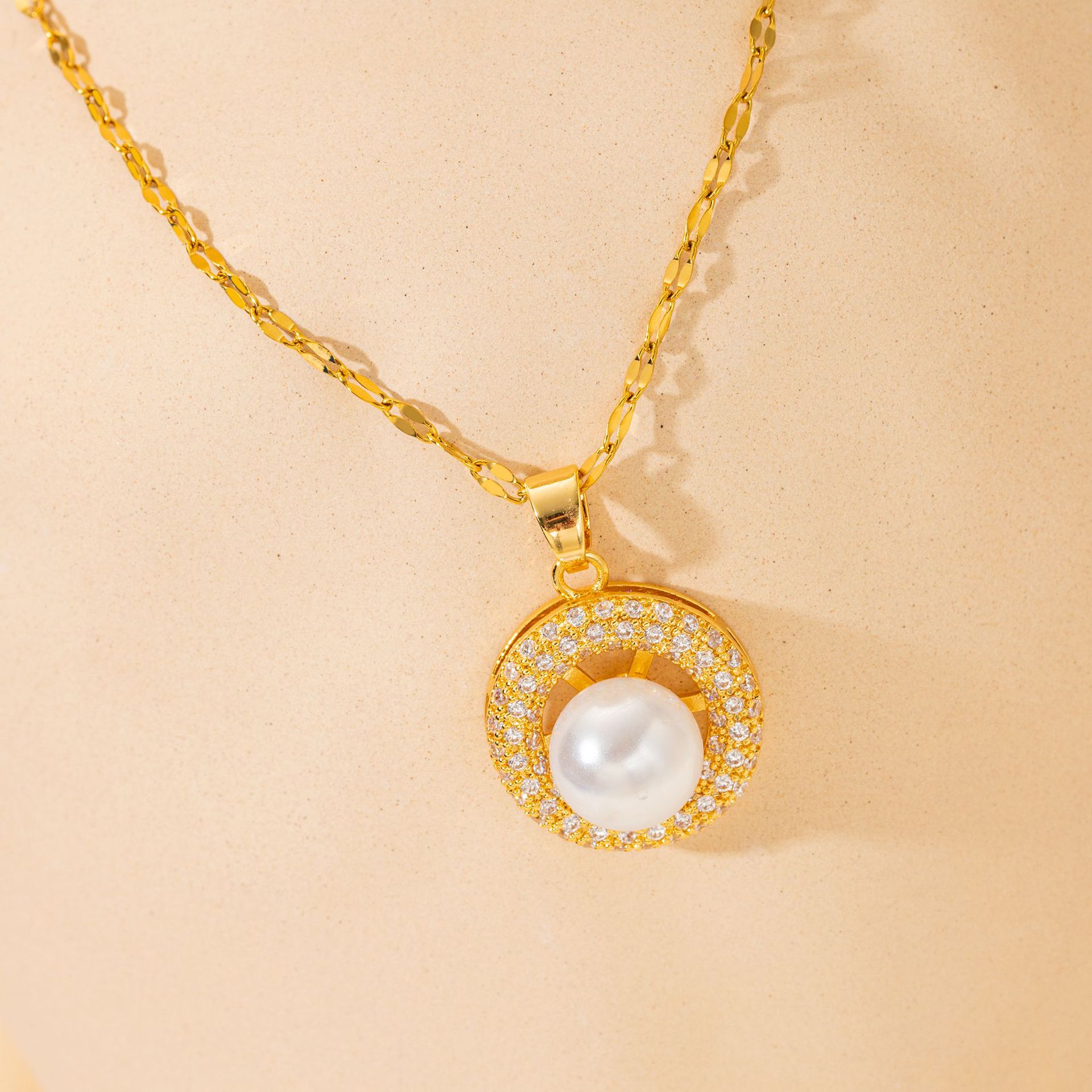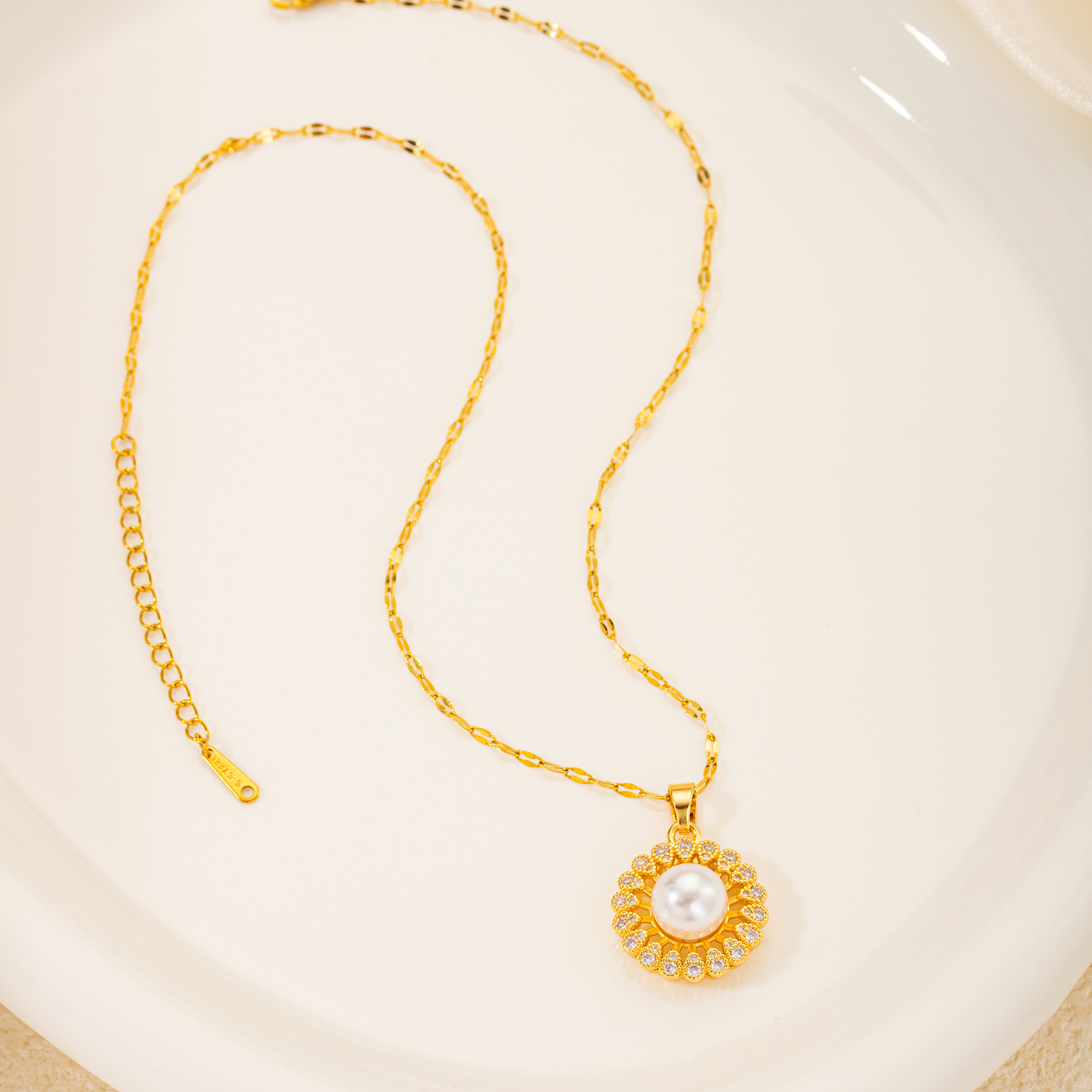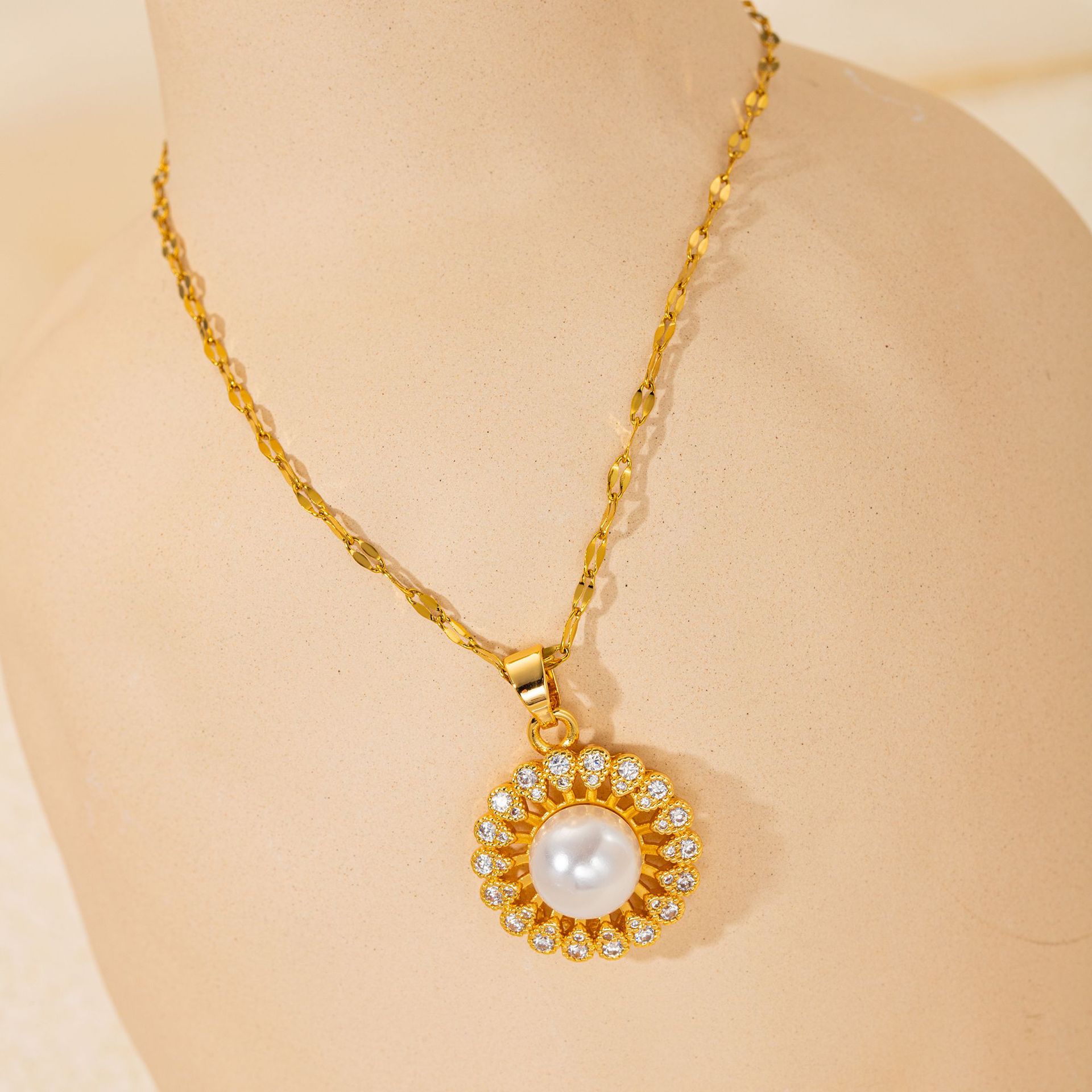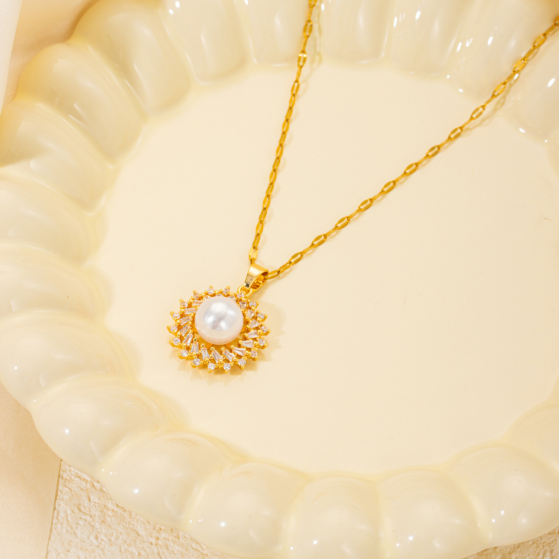 French Agate New Accessible Luxury Pearl Copper Inlaid Zircon Sun Goddess Pendant Necklace 18K Real Gold High-End