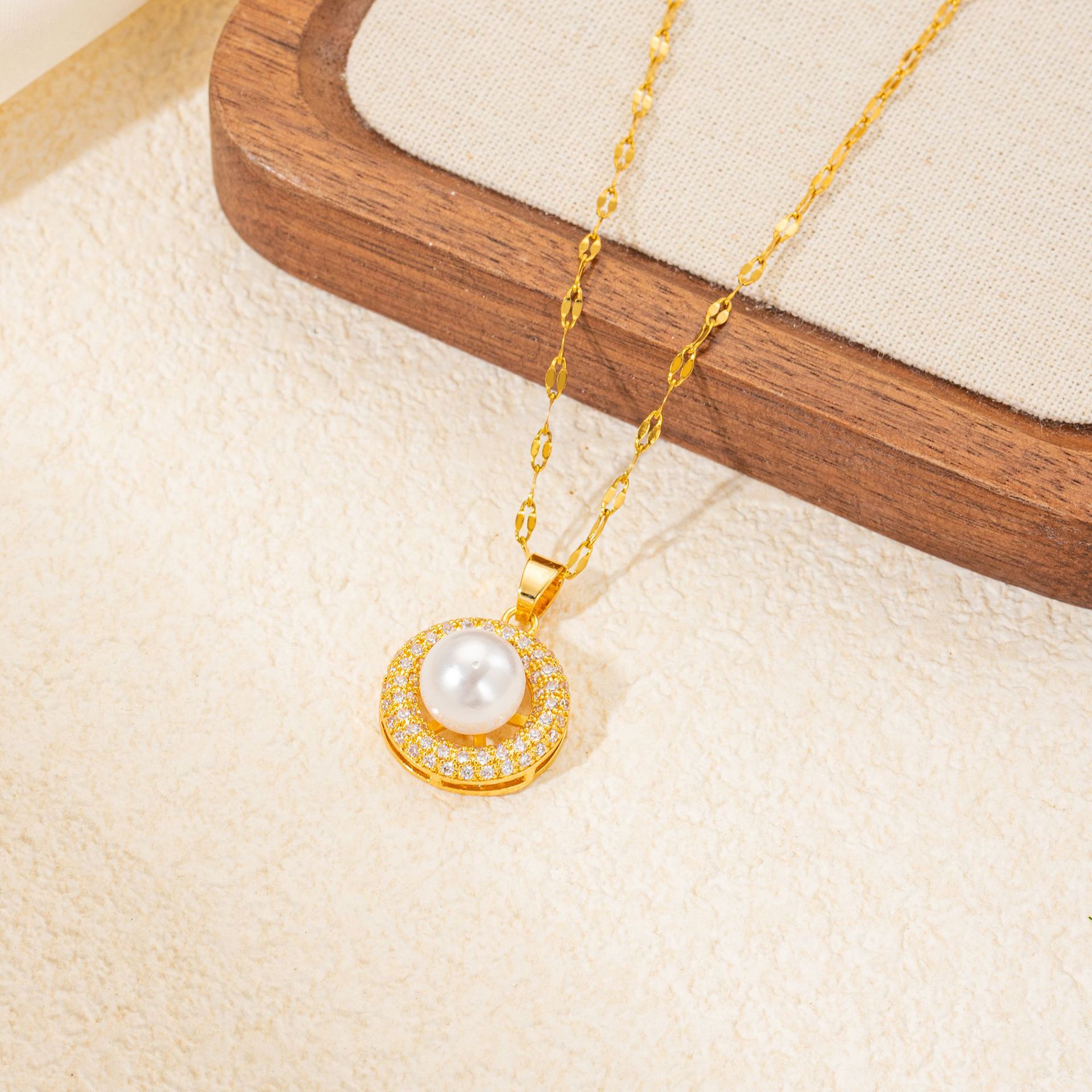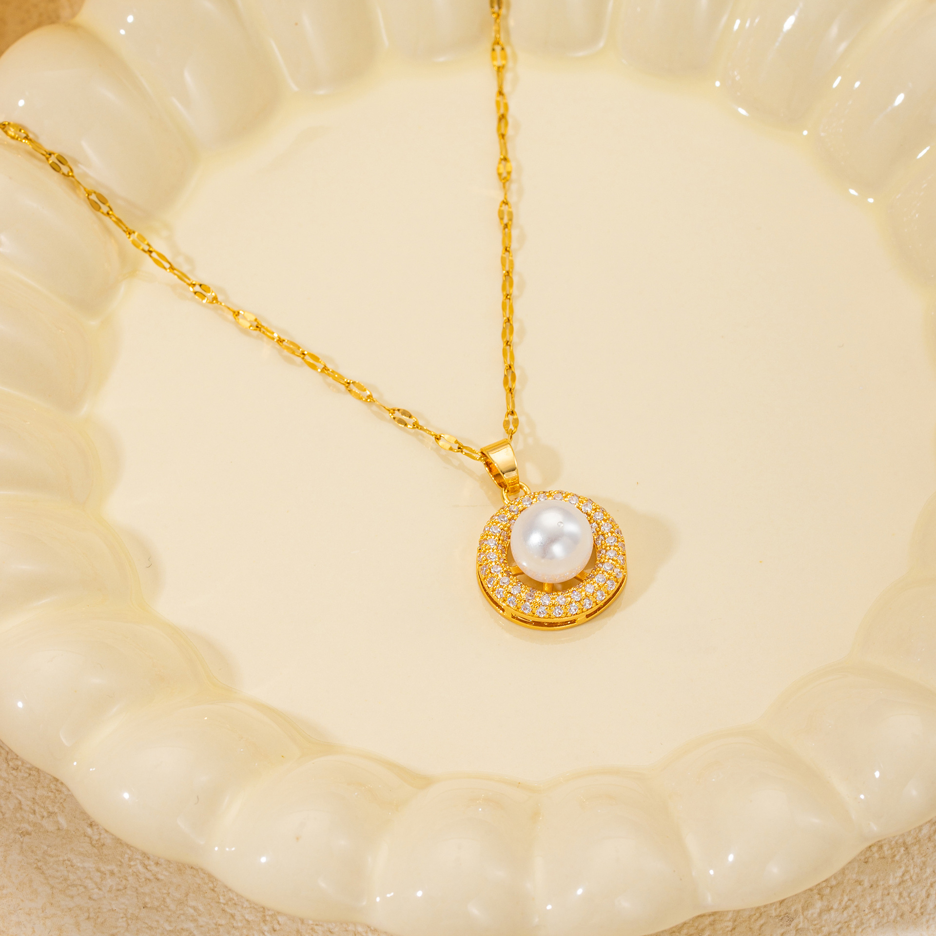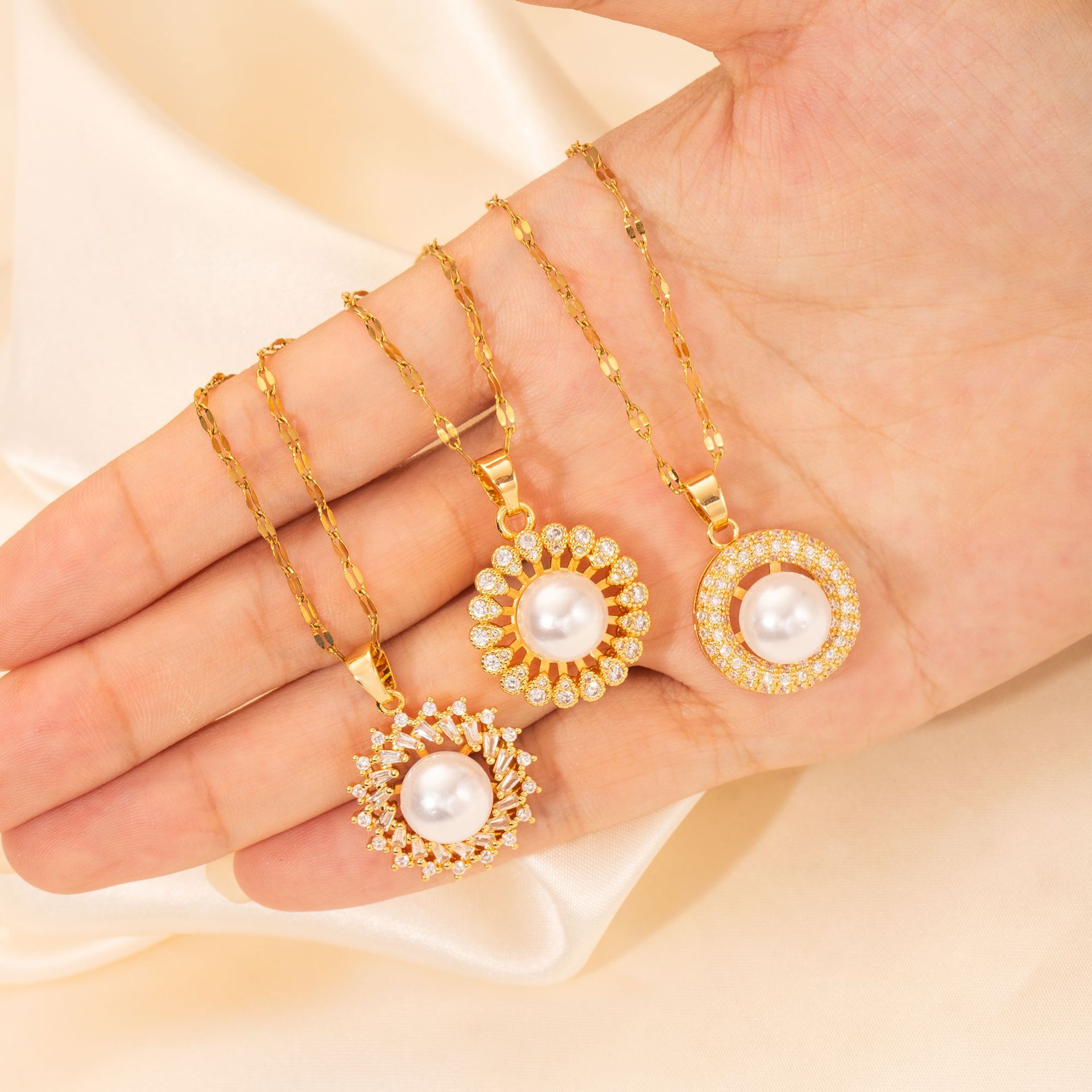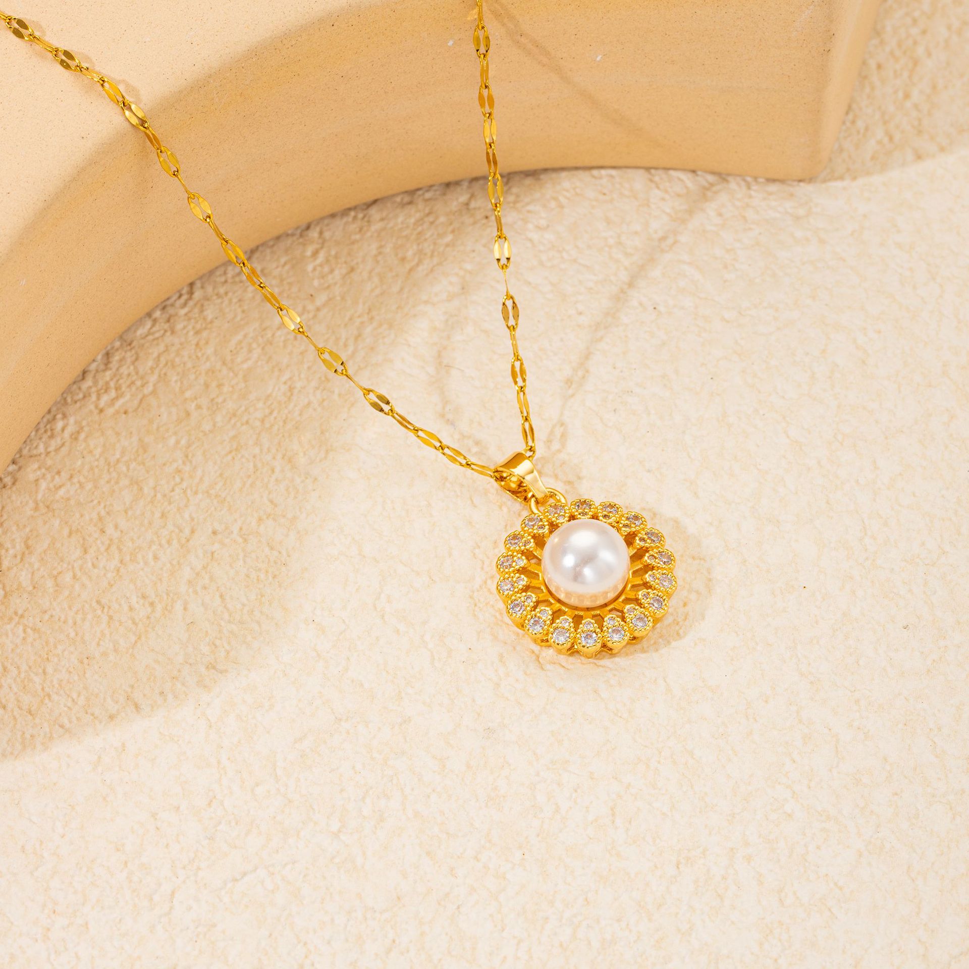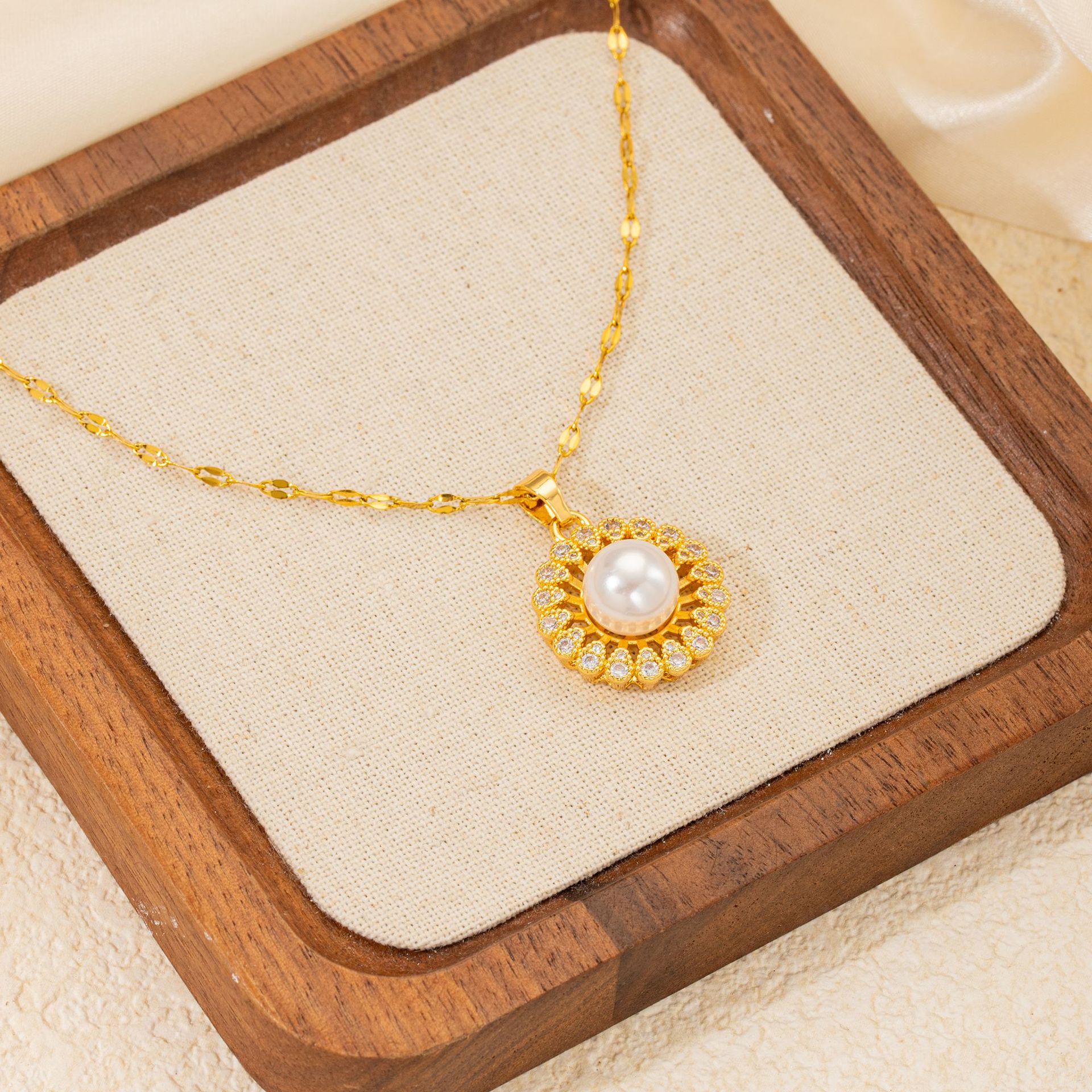 French Agate New Accessible Luxury Pearl Copper Inlaid Zircon Sun Goddess Pendant Necklace 18K Real Gold High-End