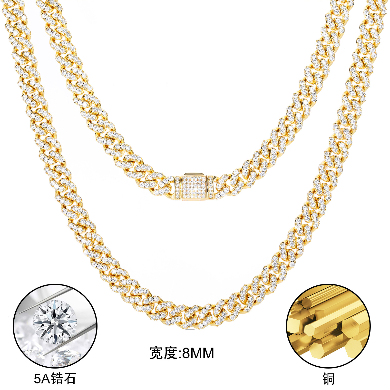 Stylish 8mm Single Row Zircon Cuban Chain European and American Cross-Border Hot Selling Hip-Hop Necklace Jewelry Wholesale for Men and Women