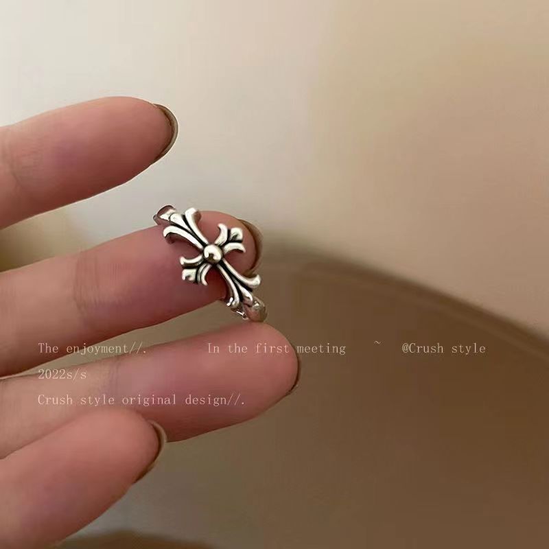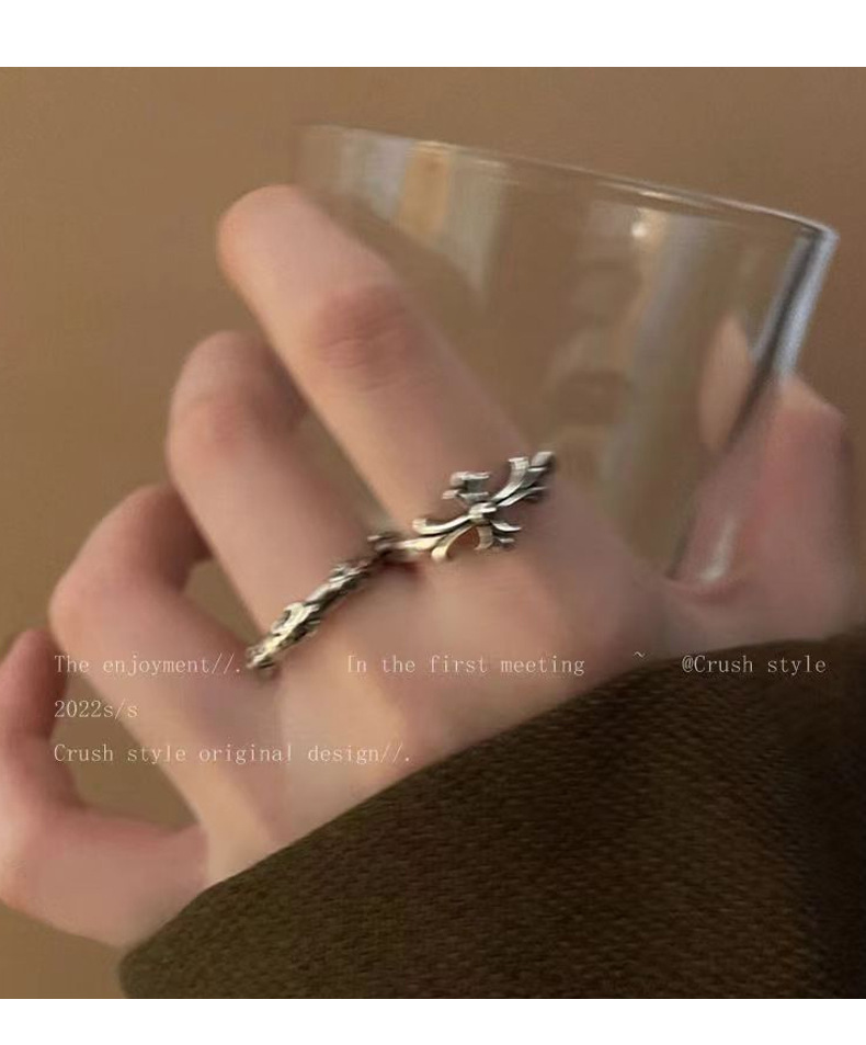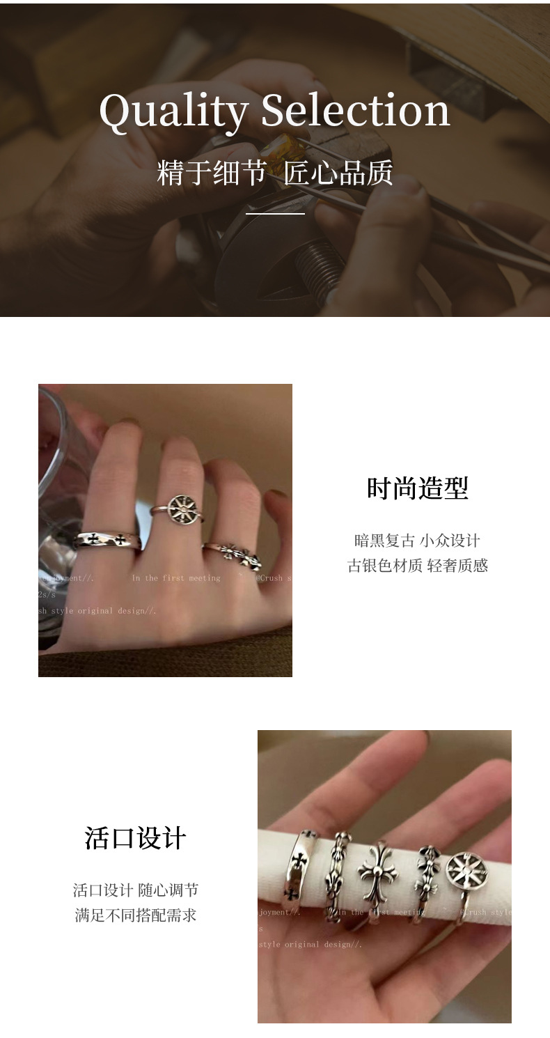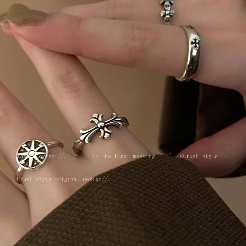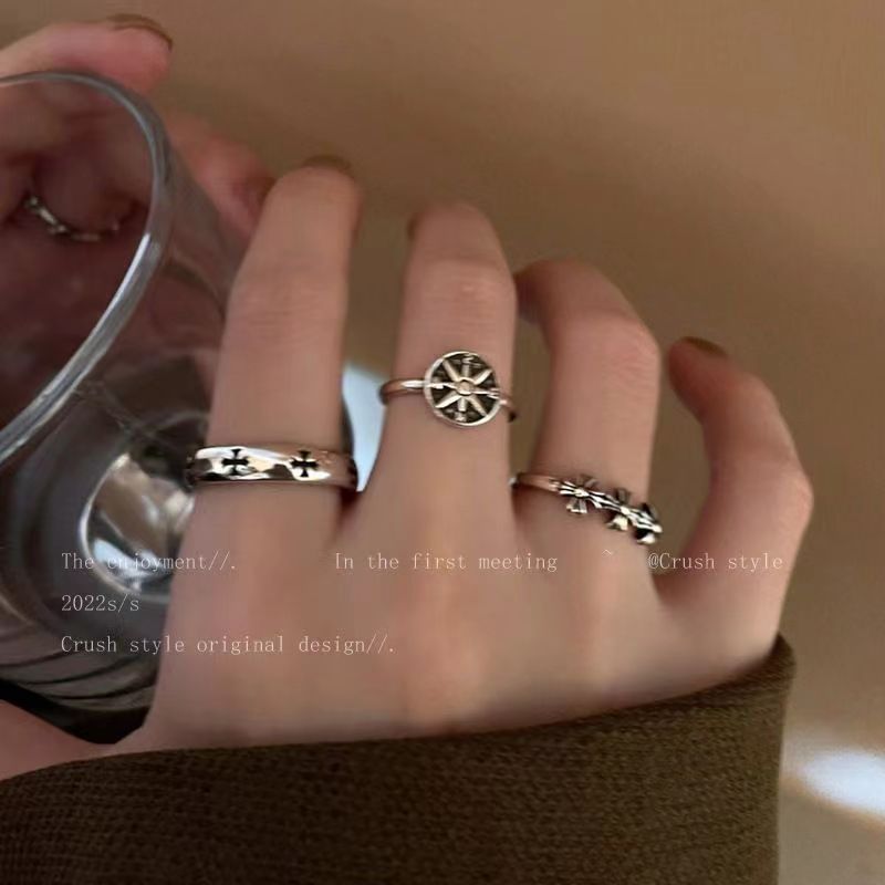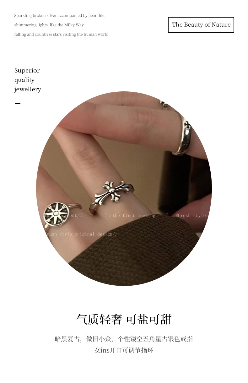 Dark Retro Old Niche Stylish Cut Out Five-Pointed Star Ancient Silver Ring Female Ins Opening Adjustable Ring