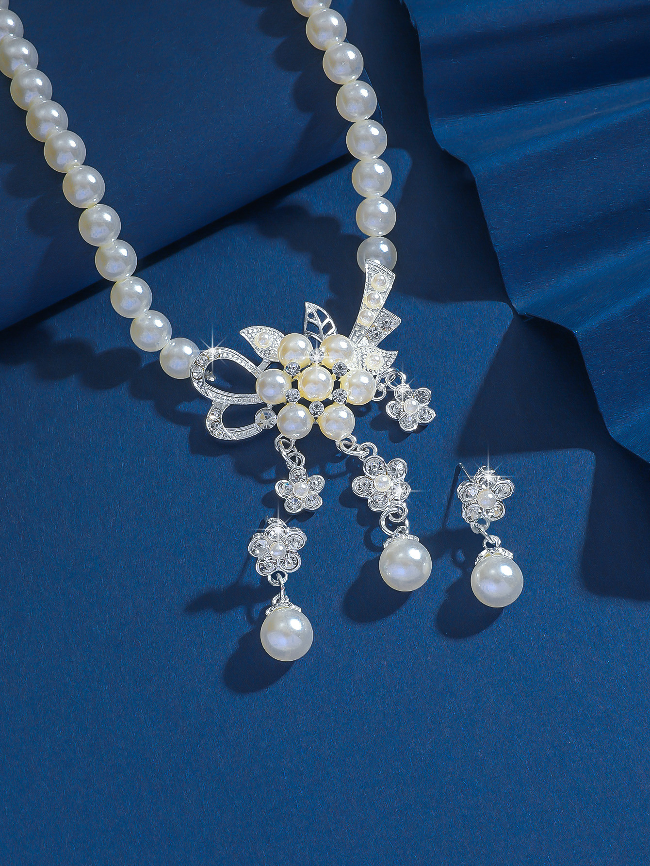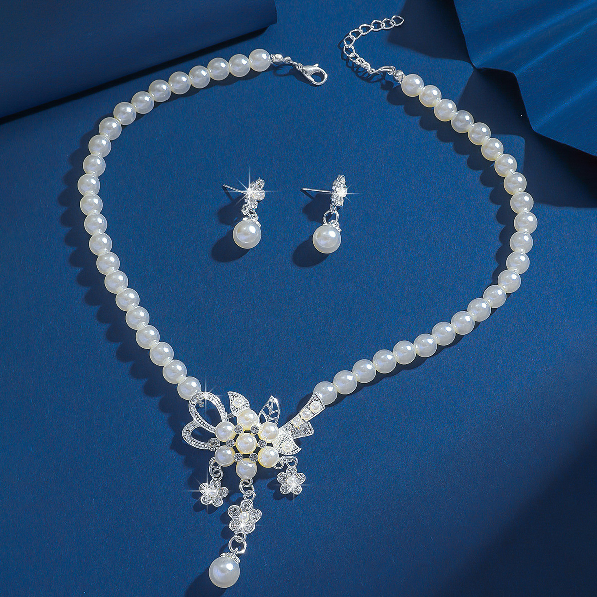 European and American Pearl Necklace Earrings suit Women's Fashion Temperament Explosion Alloy Drop Shape Flower Bridal Dress Personality