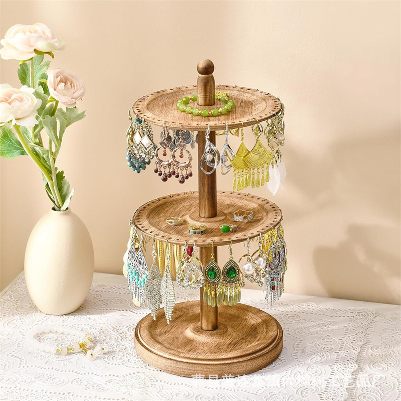 Customized Jewelry Rack Store Jewelry Display Stand 2-Layer Rotatable Jewelry Rack Earrings Necklace Solid Wood Display Rack