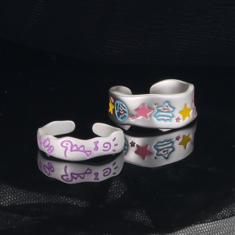 Original Design New Dopamine Bestie Ring Three-Piece Set Sweet and Spicy Cute Versatile Niche Cartoon Ring