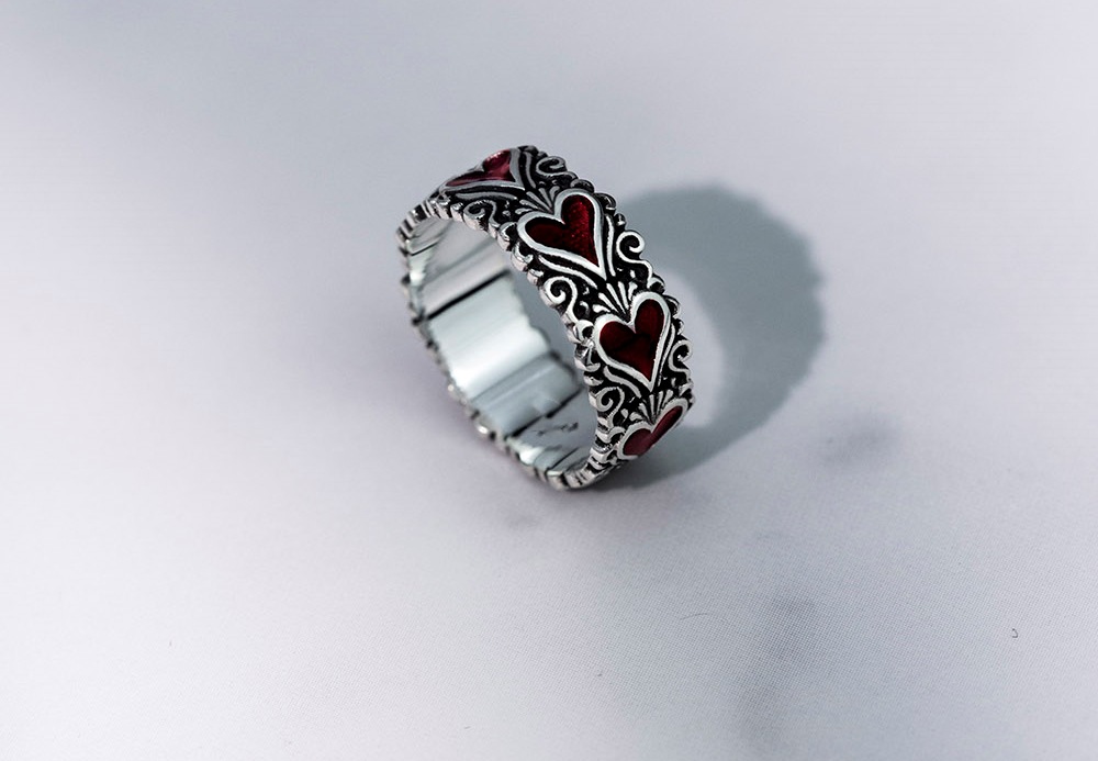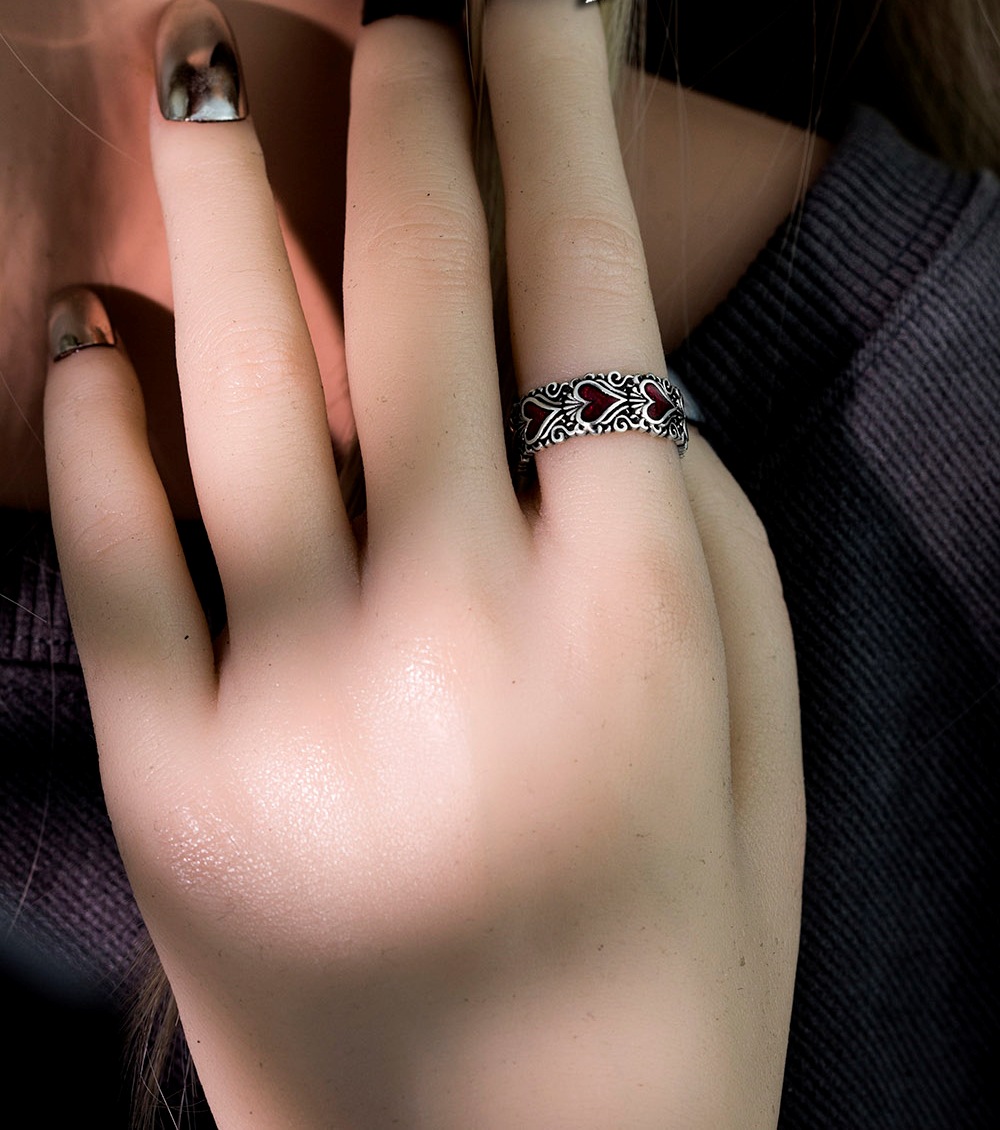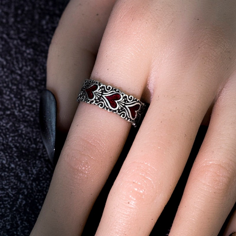 Qishang Original Design Gothic Pattern Love Pledge Ring 925 Sterling Silver Women's Retro Fashion Opening