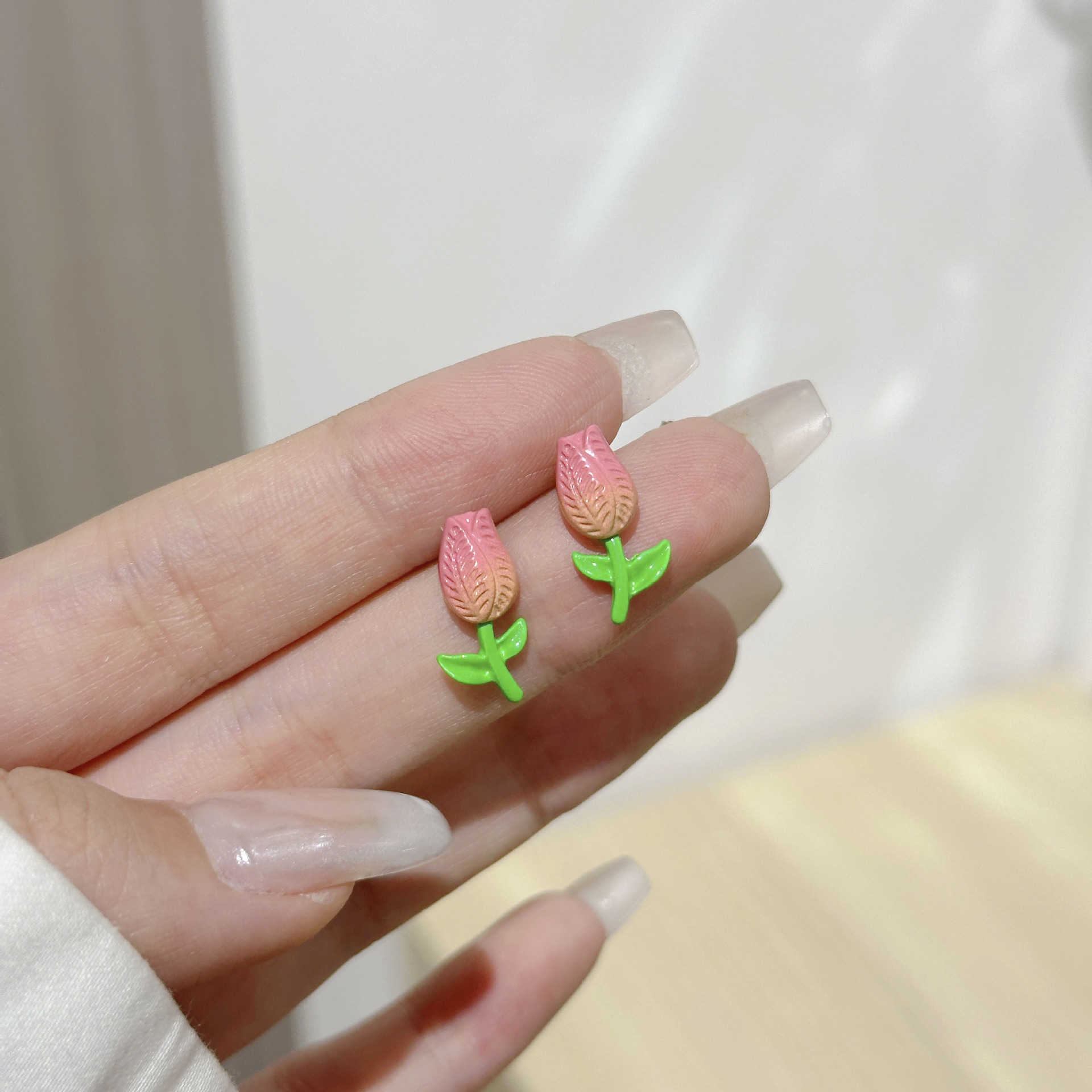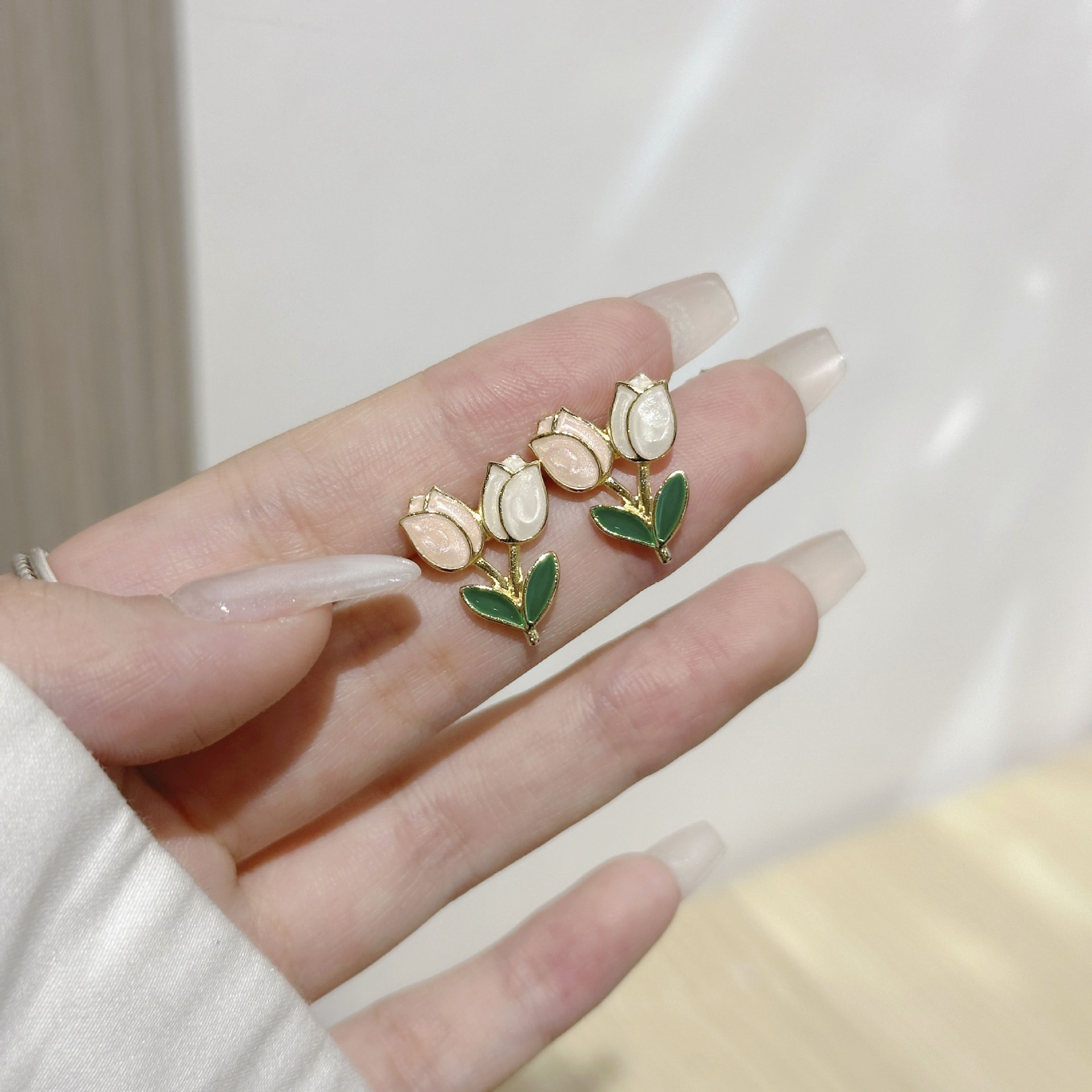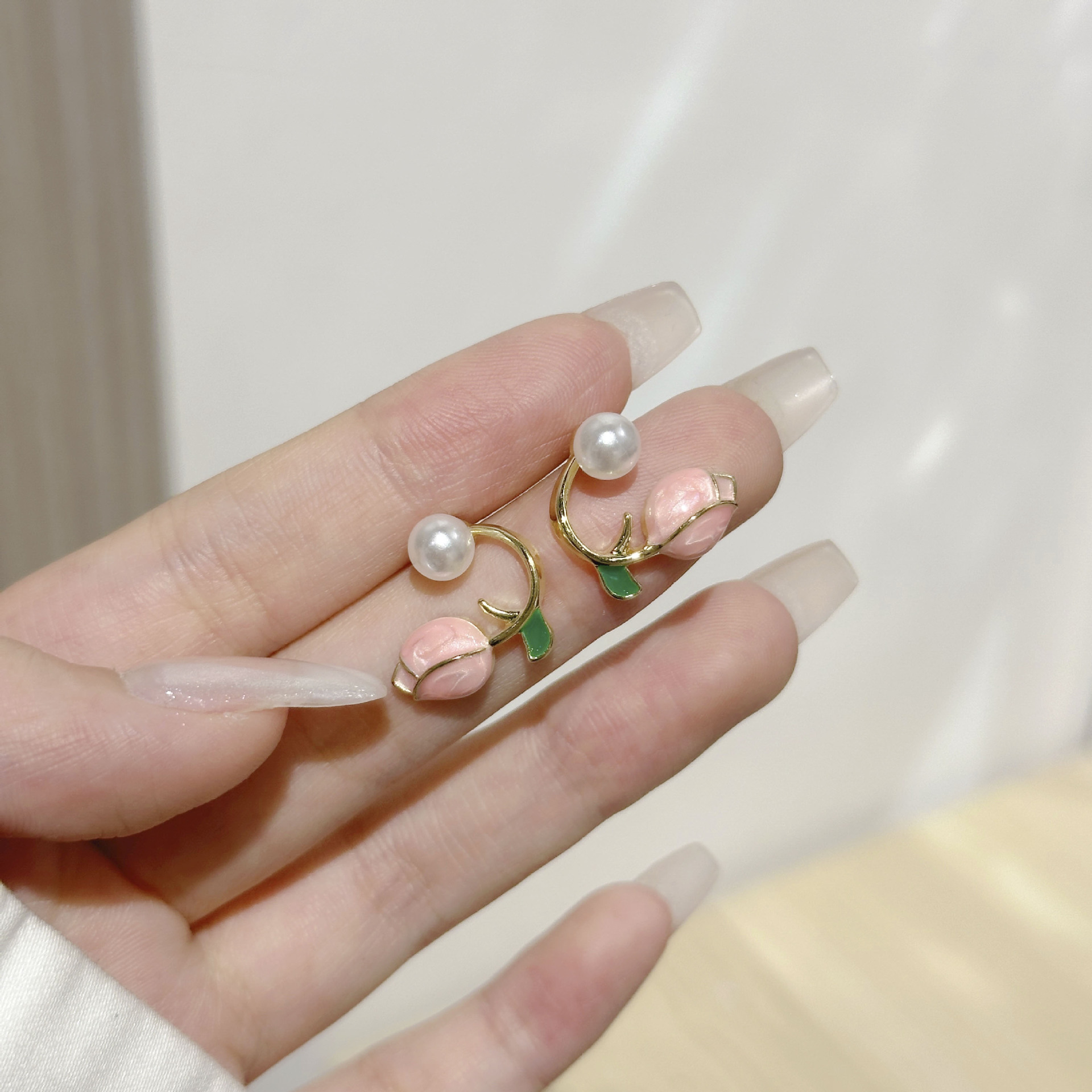 Colors: Silver Needle-Tulip-Pearl Earrings