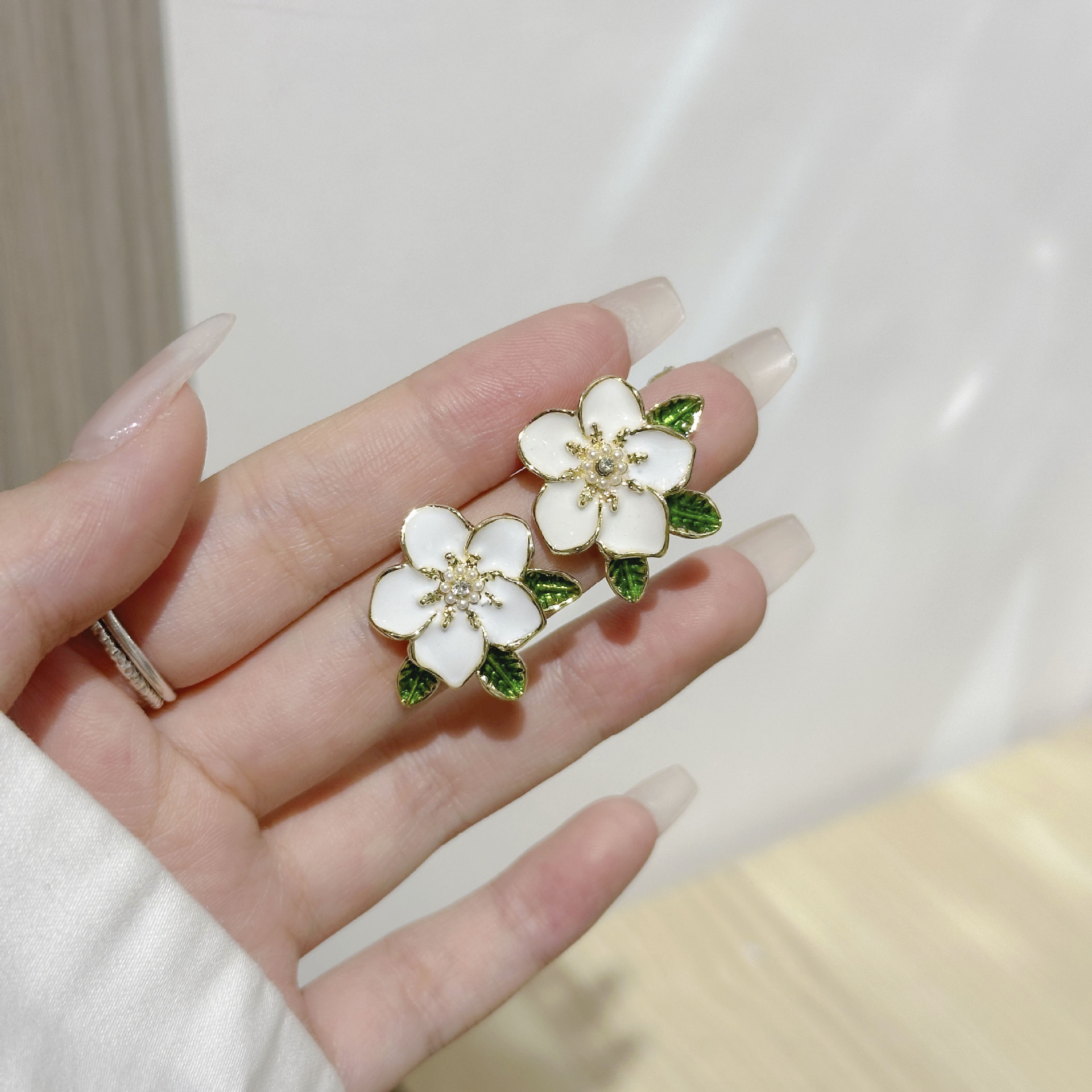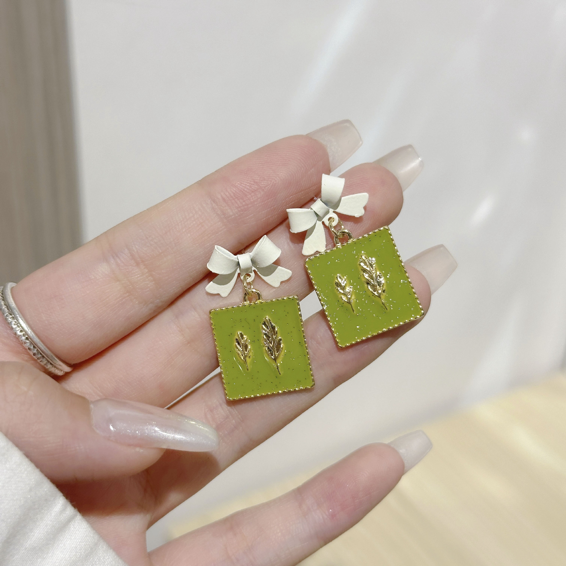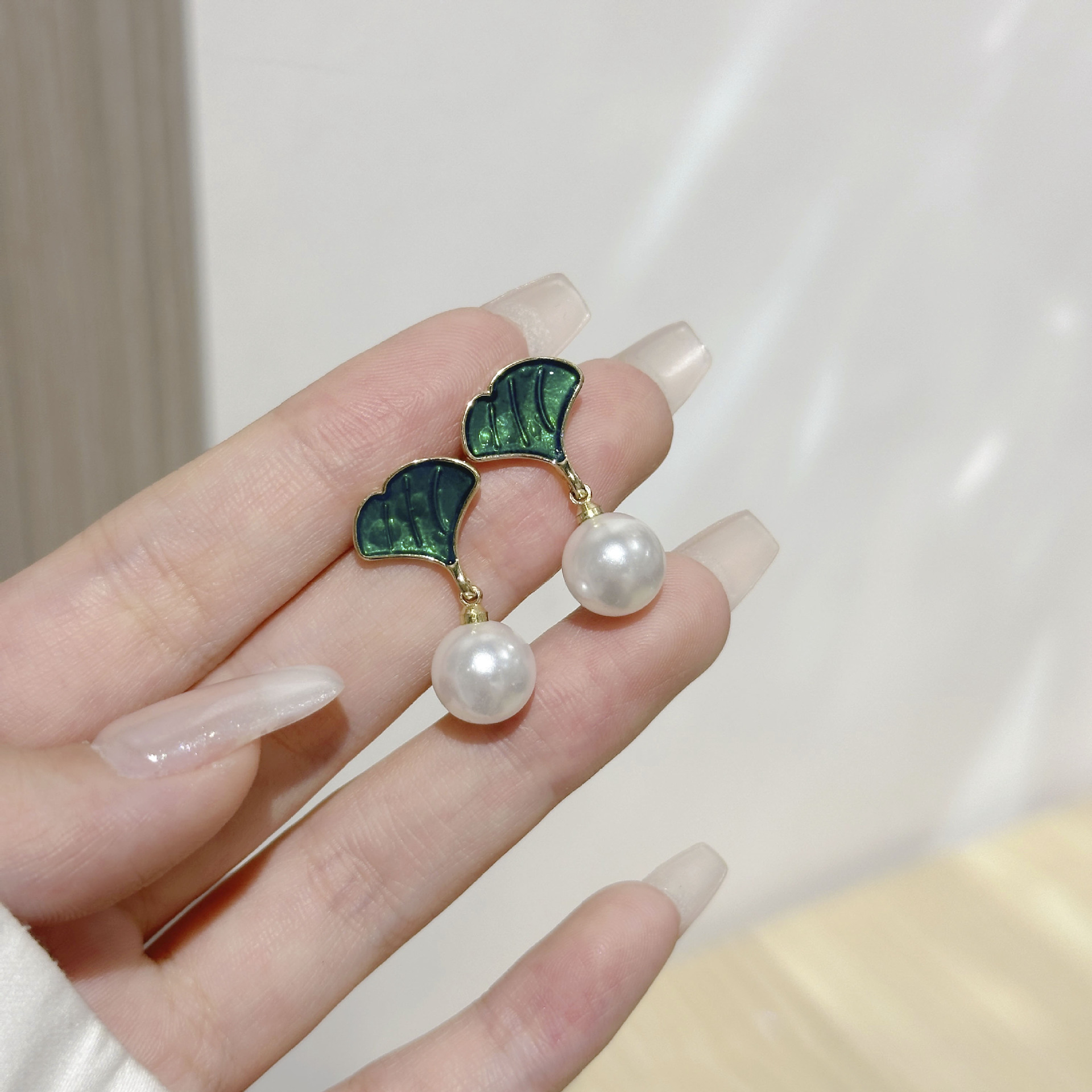 Colors: Silver Needle-Green-Pearl Stud Earrings