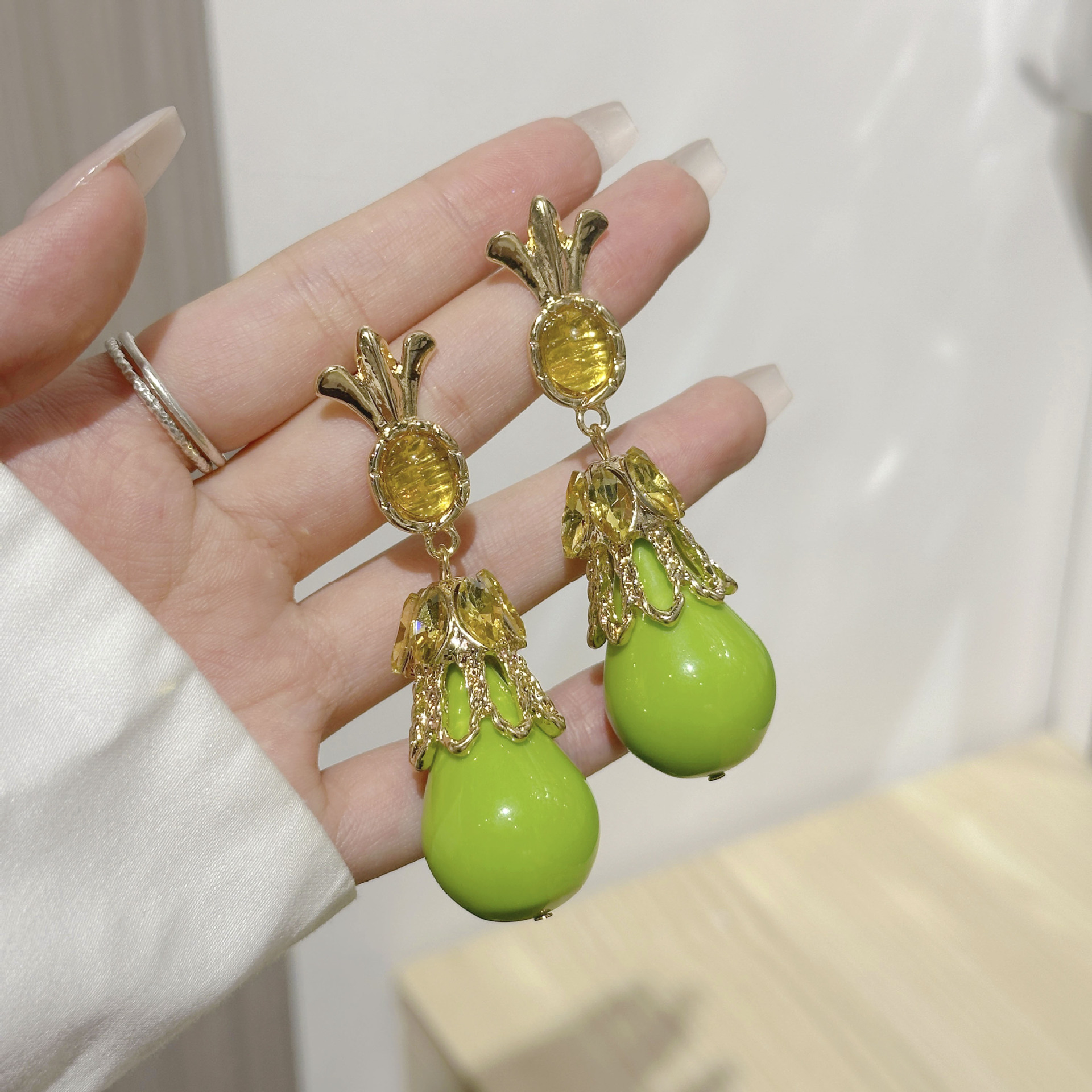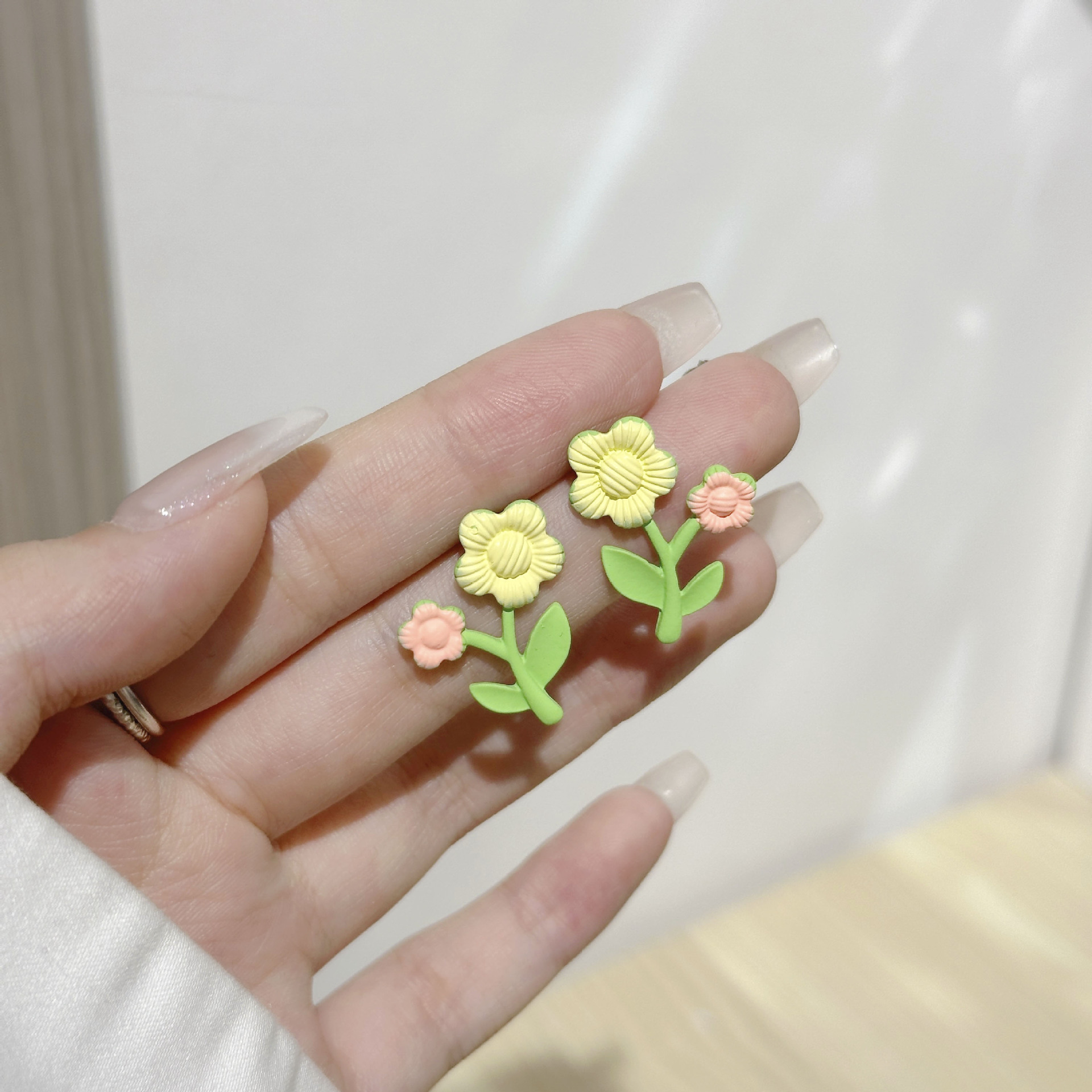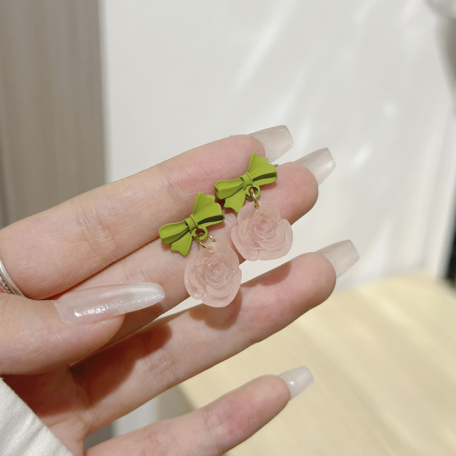 Colors: Silver Needle-Green-Pearl Stud Earrings