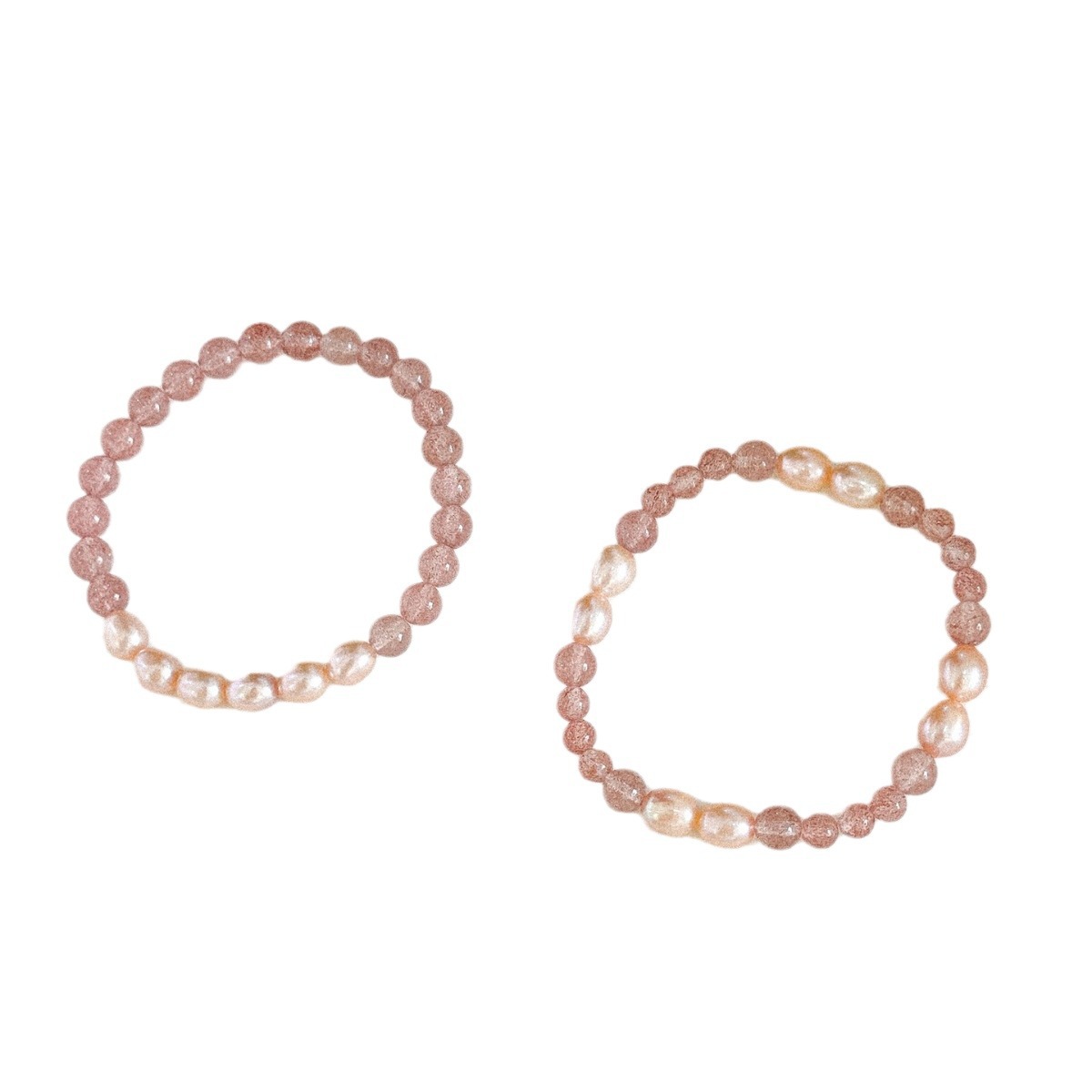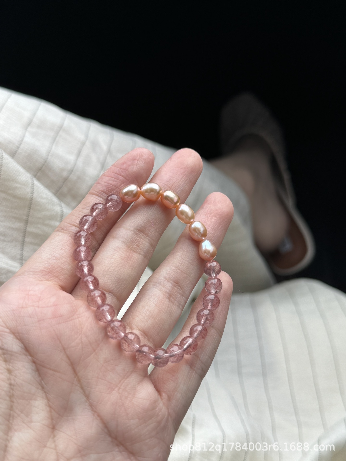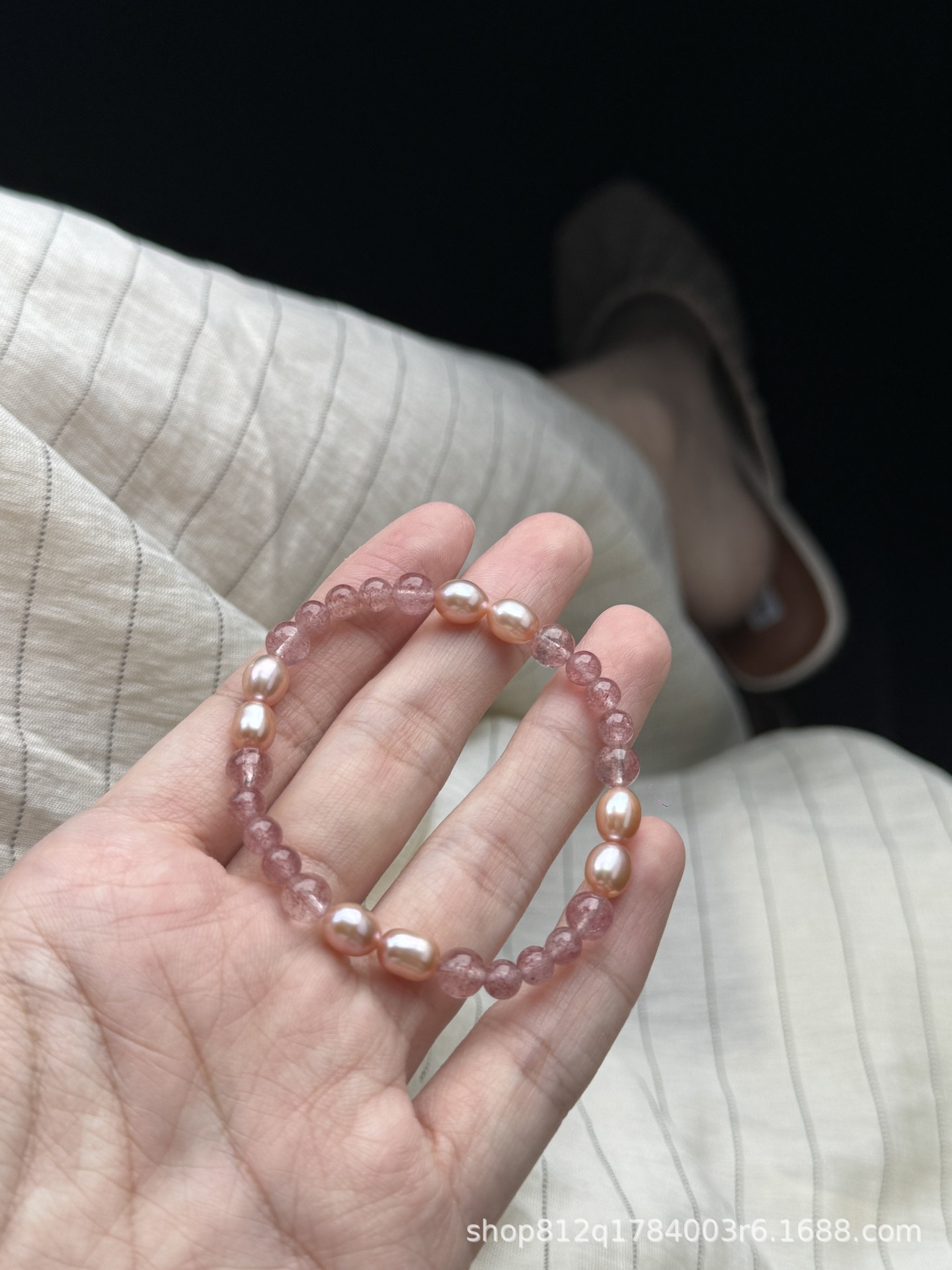 尺寸:草莓晶4/6MM,珍珠约6-6.5mm,弹力设计,约14-16手围可戴