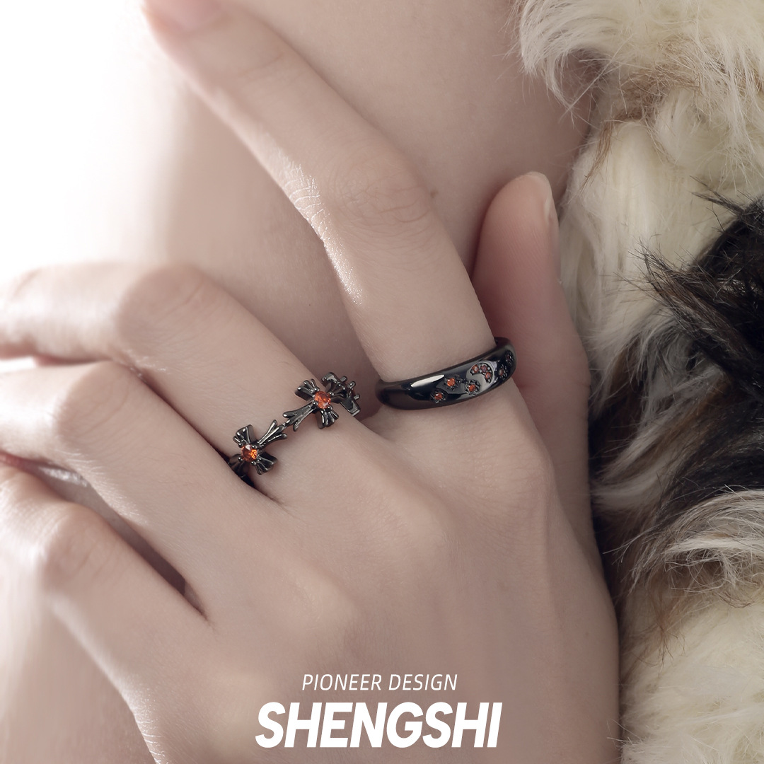 Dark Cross Ring Female Niche High-end Personality Adjustable Retro Index Finger Cold Style Simple Ring