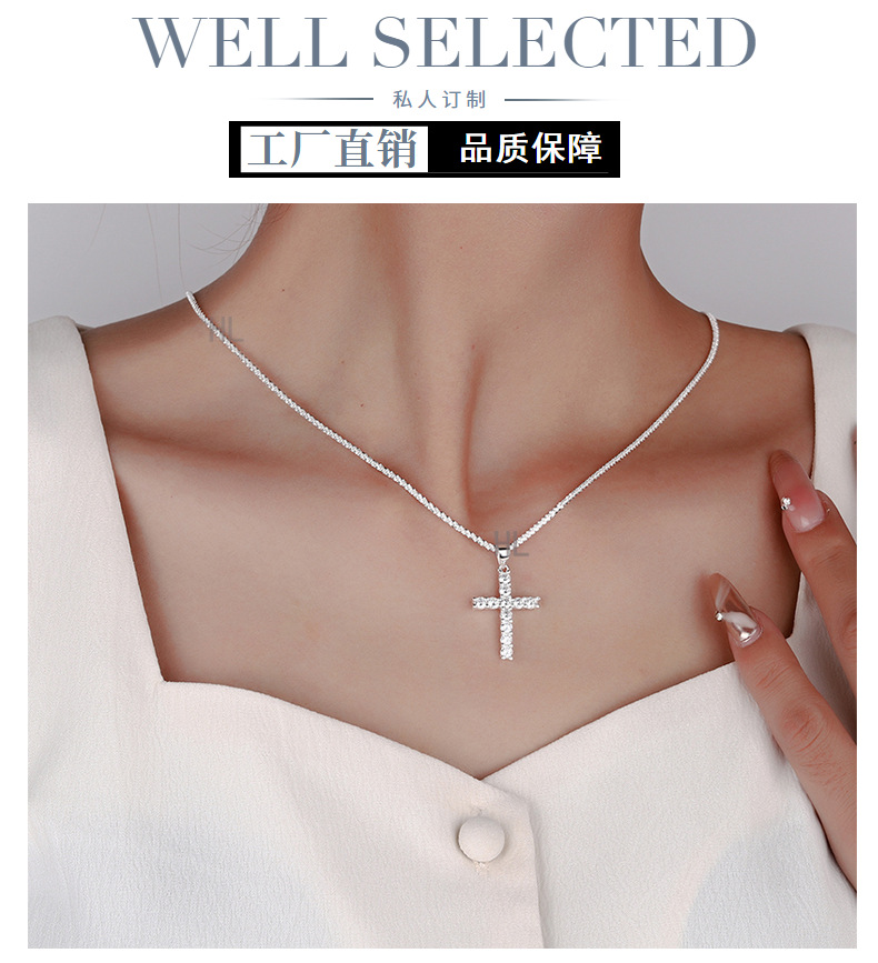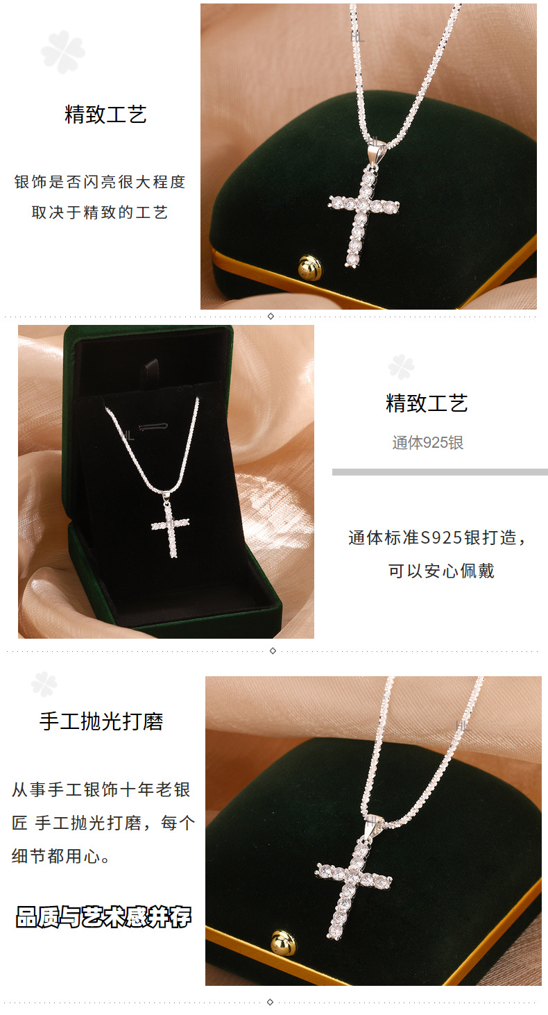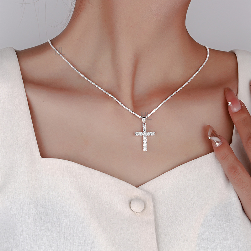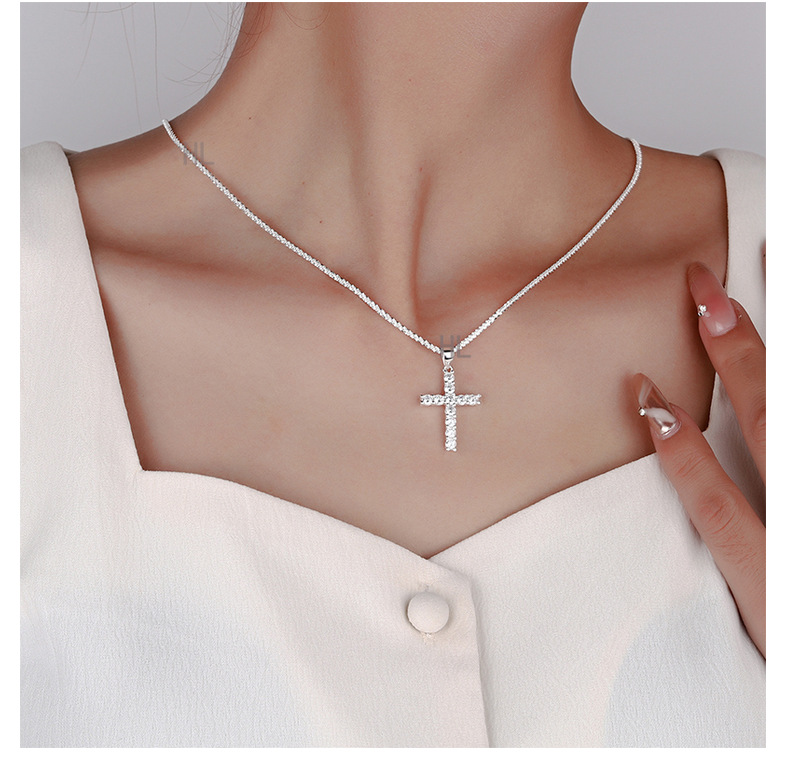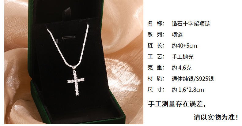European and American S925 Sterling Silver Diamond Cross Necklace Ins Ma Siwei Zircon Rap Hip-Hop Men's and Women's Clavicle Chain