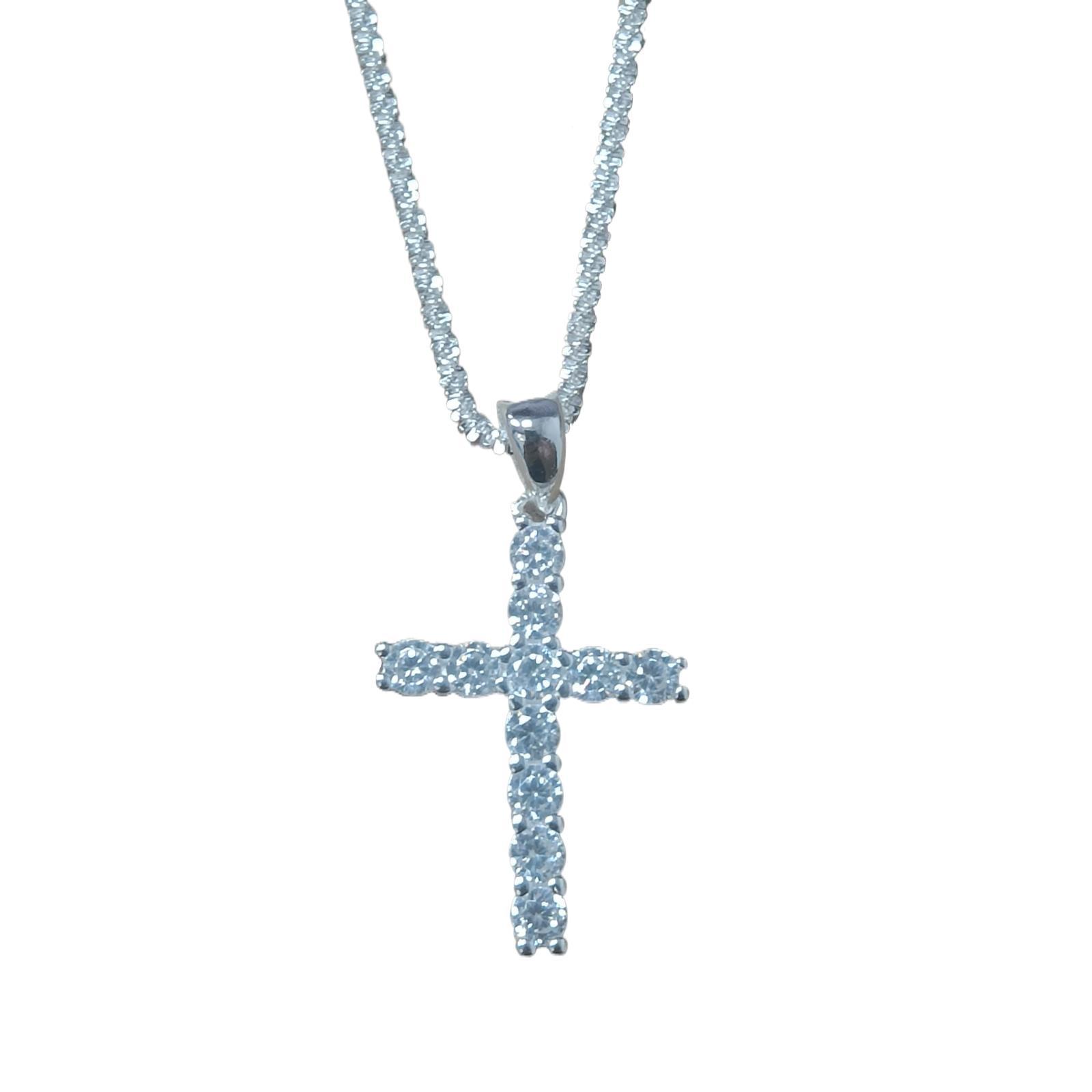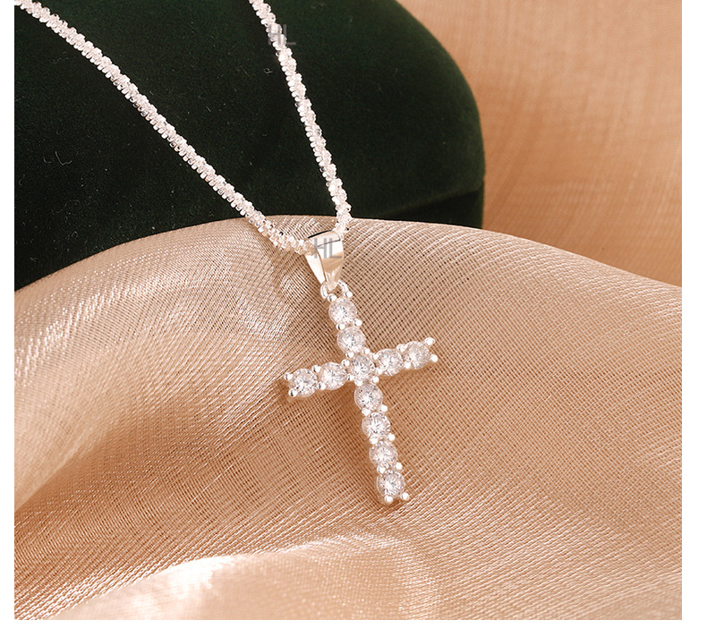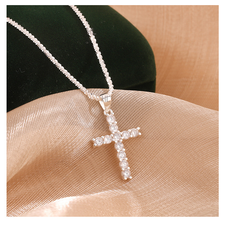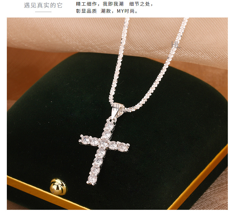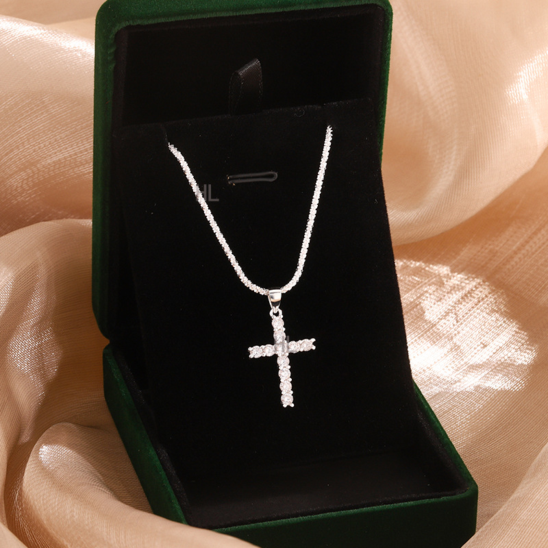European and American S925 Sterling Silver Diamond Cross Necklace Ins Ma Siwei Zircon Rap Hip-Hop Men's and Women's Clavicle Chain