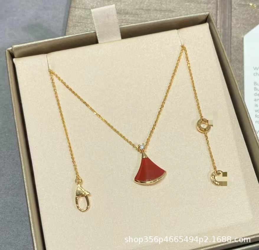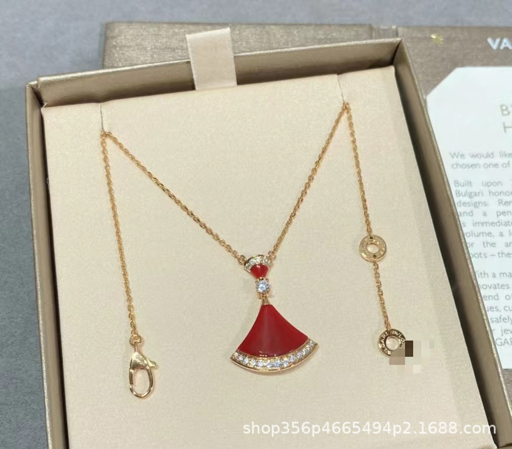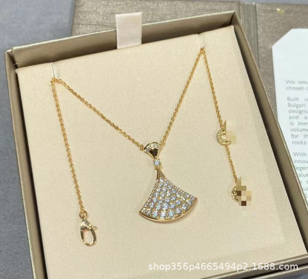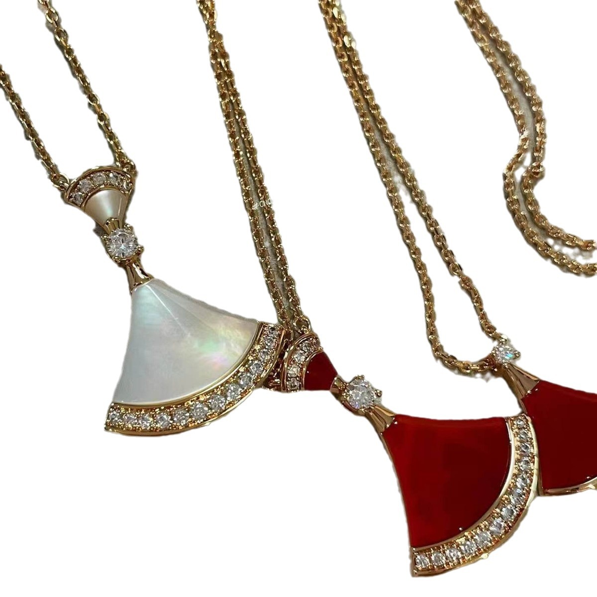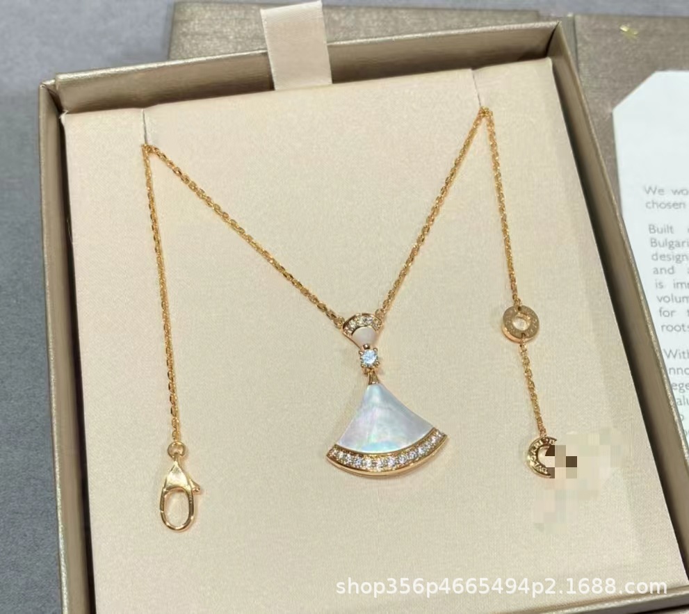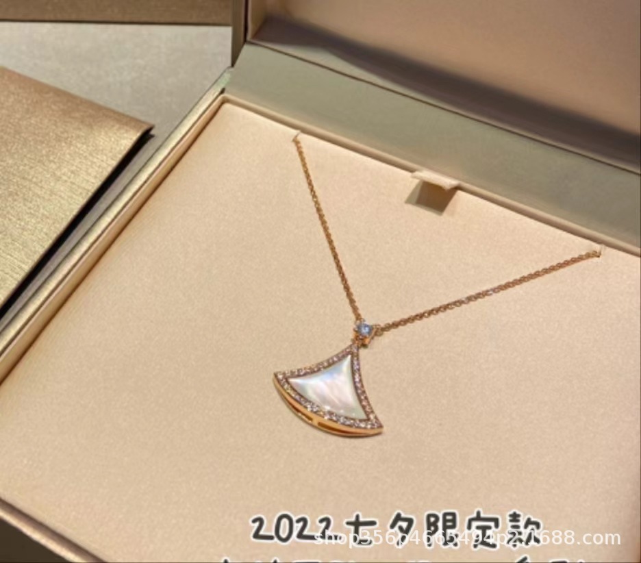 Color: 2024 chinese valentine's day limited edition pink diamond white shell fan necklace