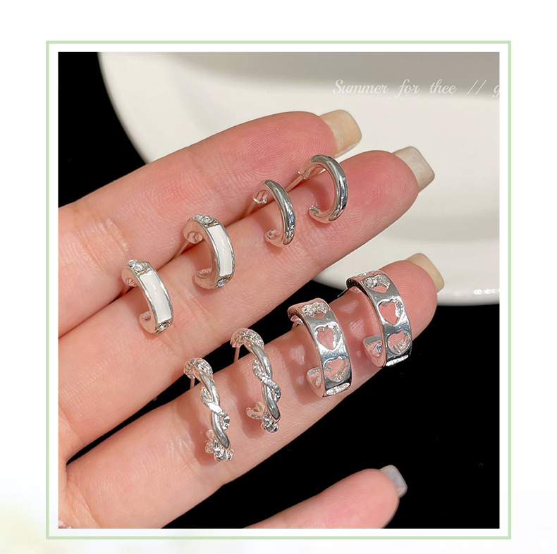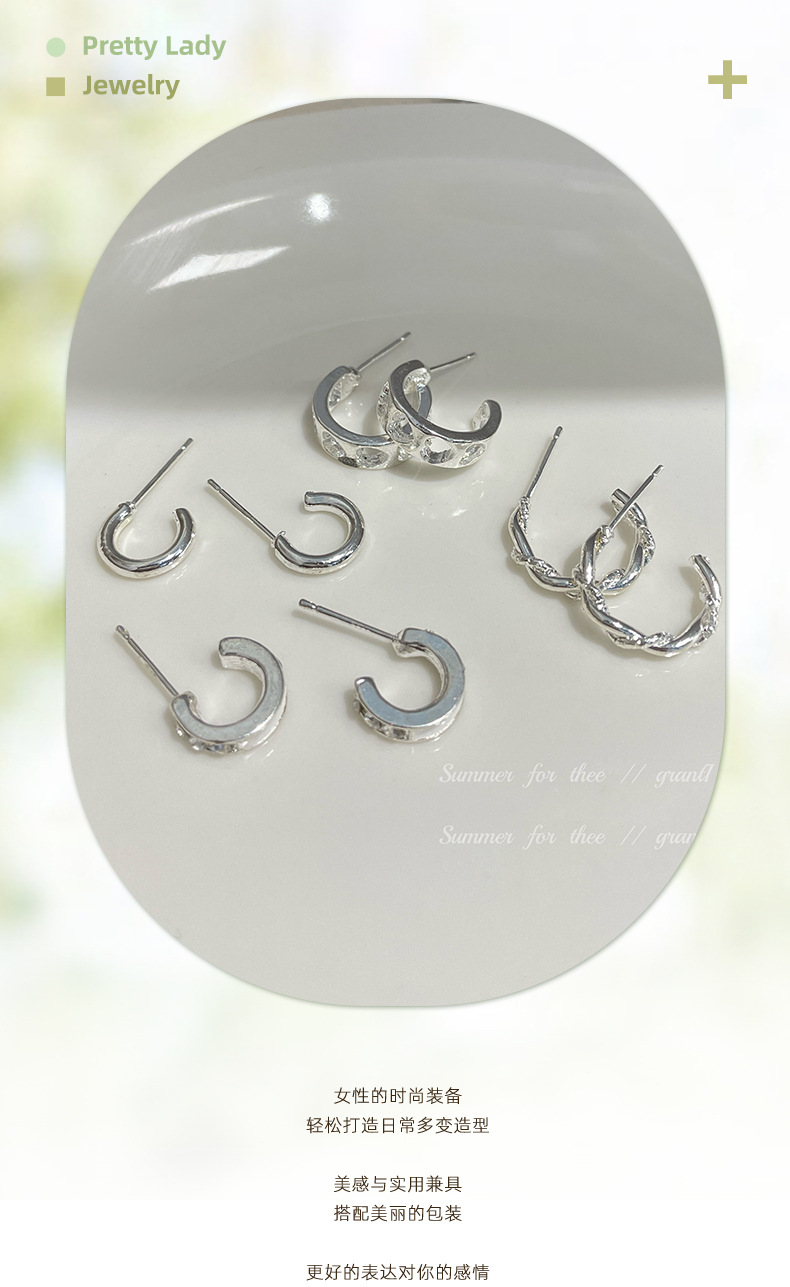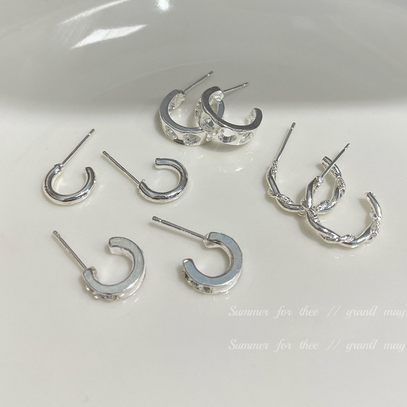 Summer Personalized Daily Simple C- ring Earrings Women's Silver Needle Design Sweet and Cool Stacked Wear Exquisite Niche Ear Buckle Earrings
