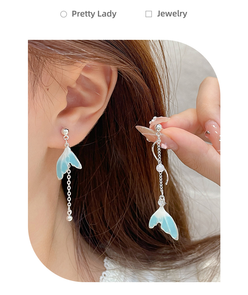 Color: STW Rotating Blue Butterfly Tassel Earrings