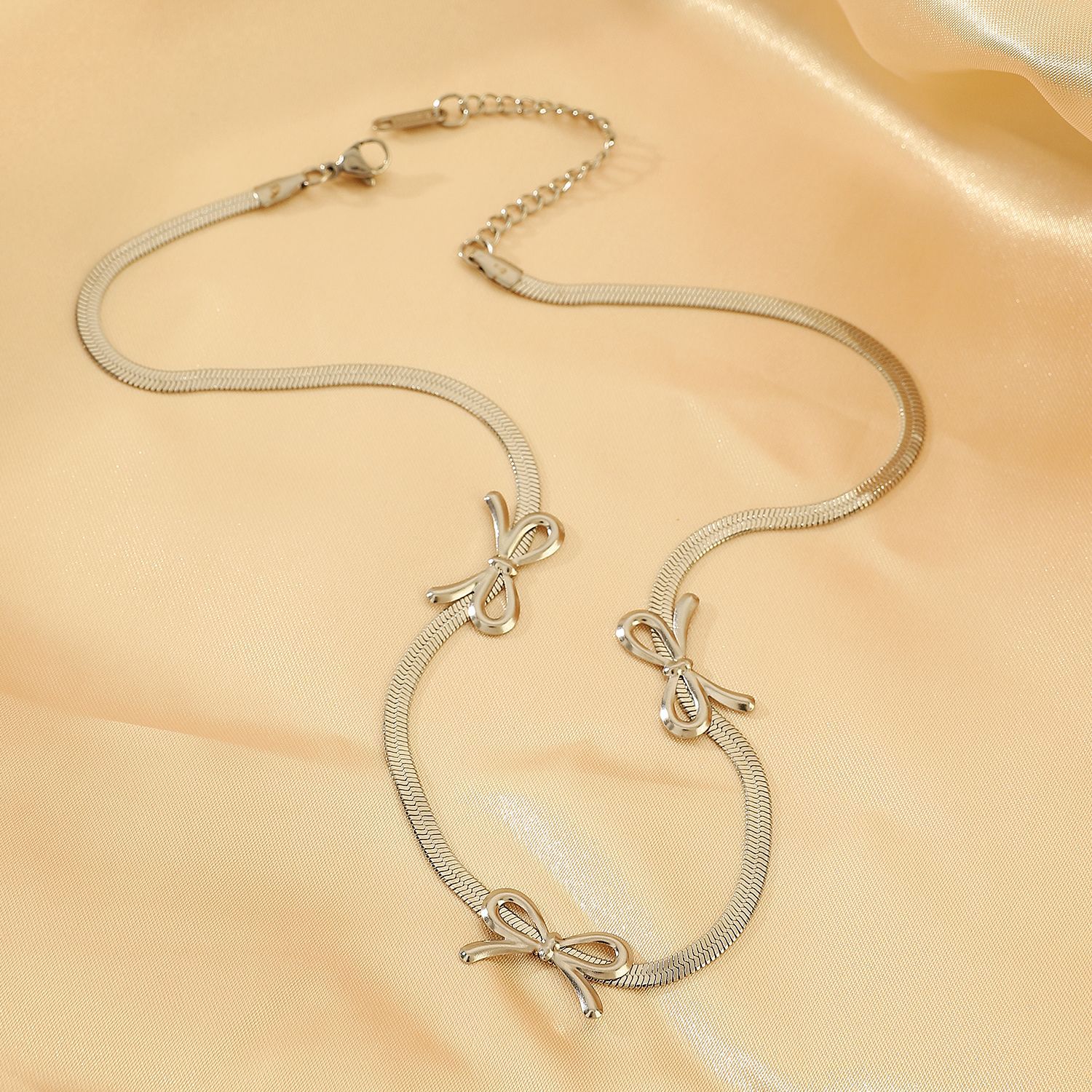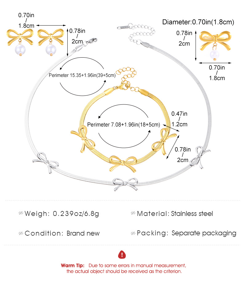 European and American ins bow stainless steel earrings bracelet necklace fashion jewelry suit women high-end jewelry wholesale