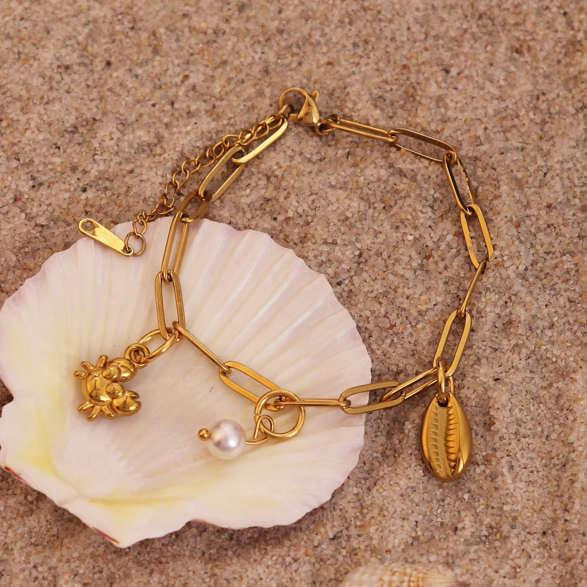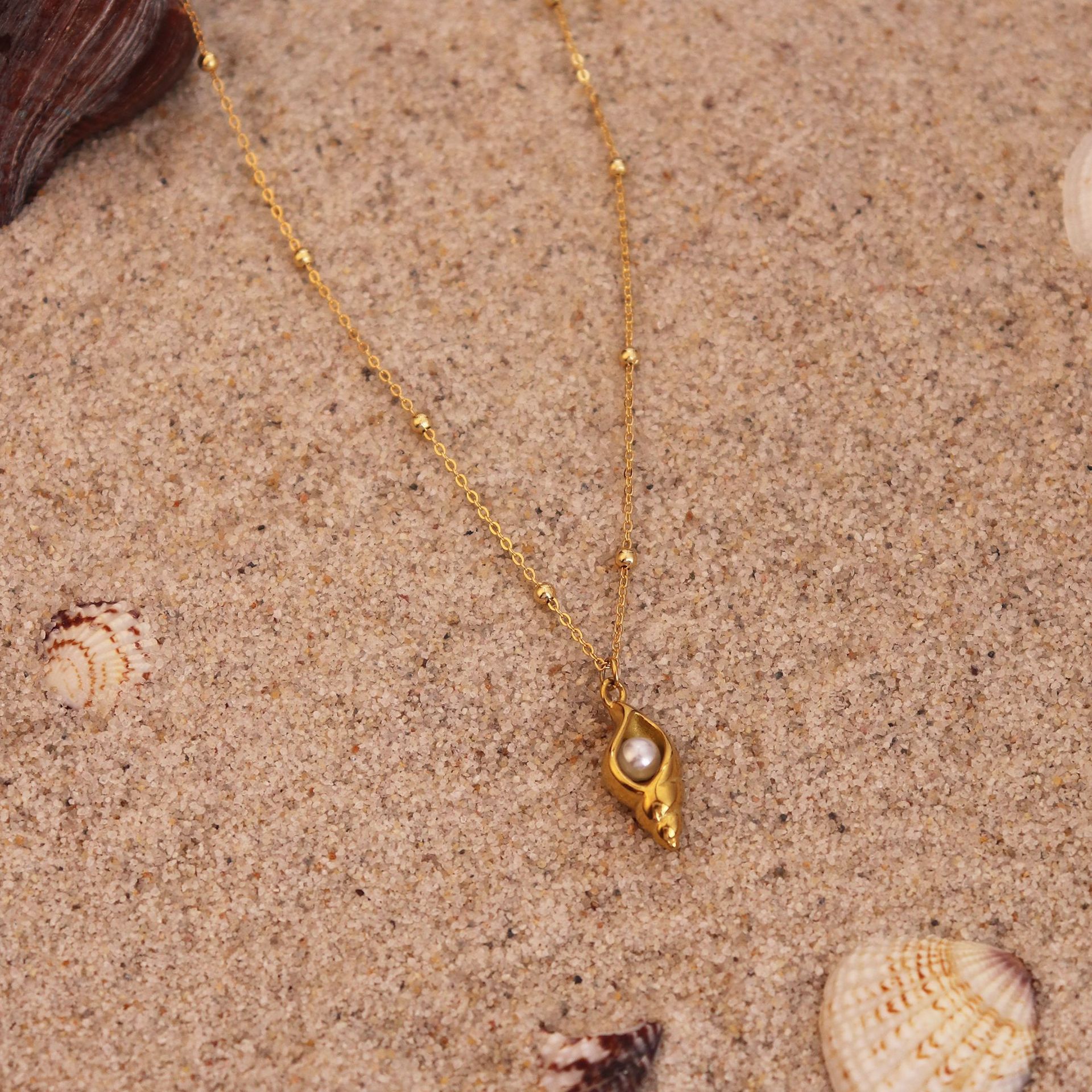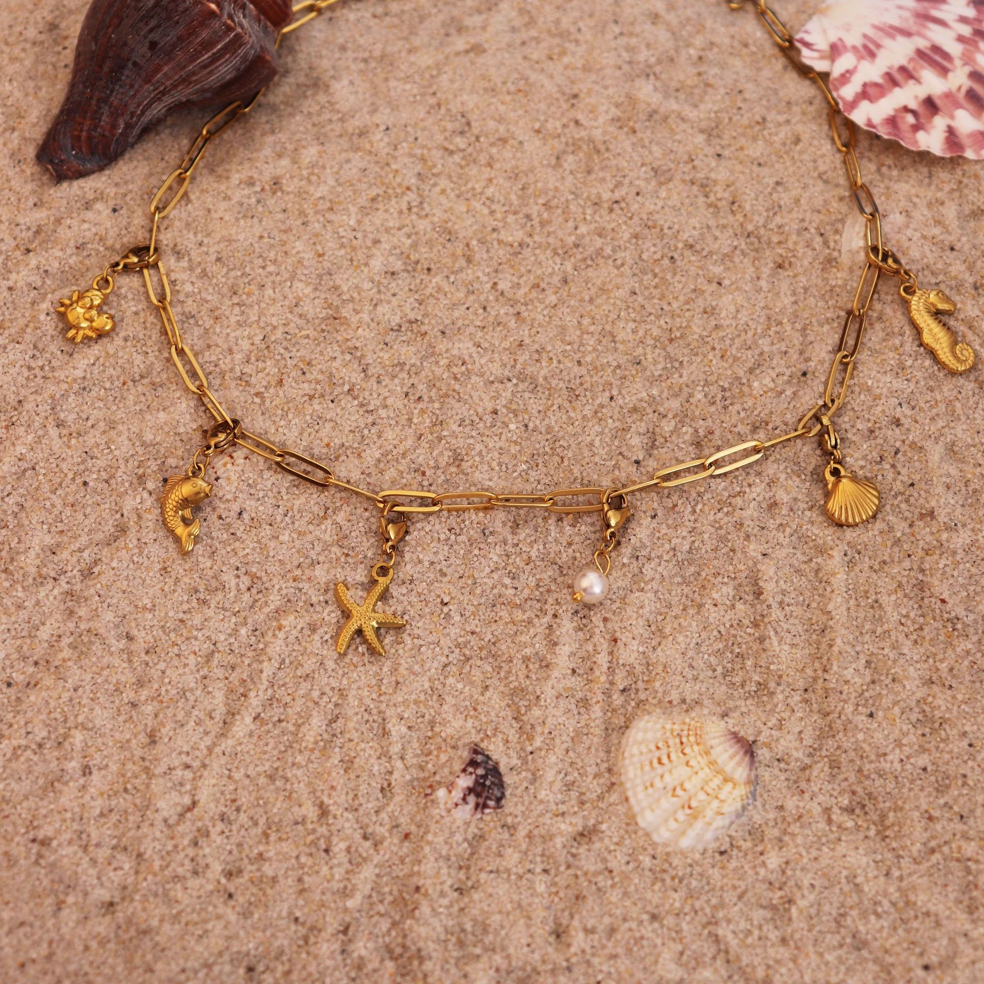 No fading titanium steel seahorse dolphin shell necklace women's marine series waterproof beach conch shell Bohemian Europe