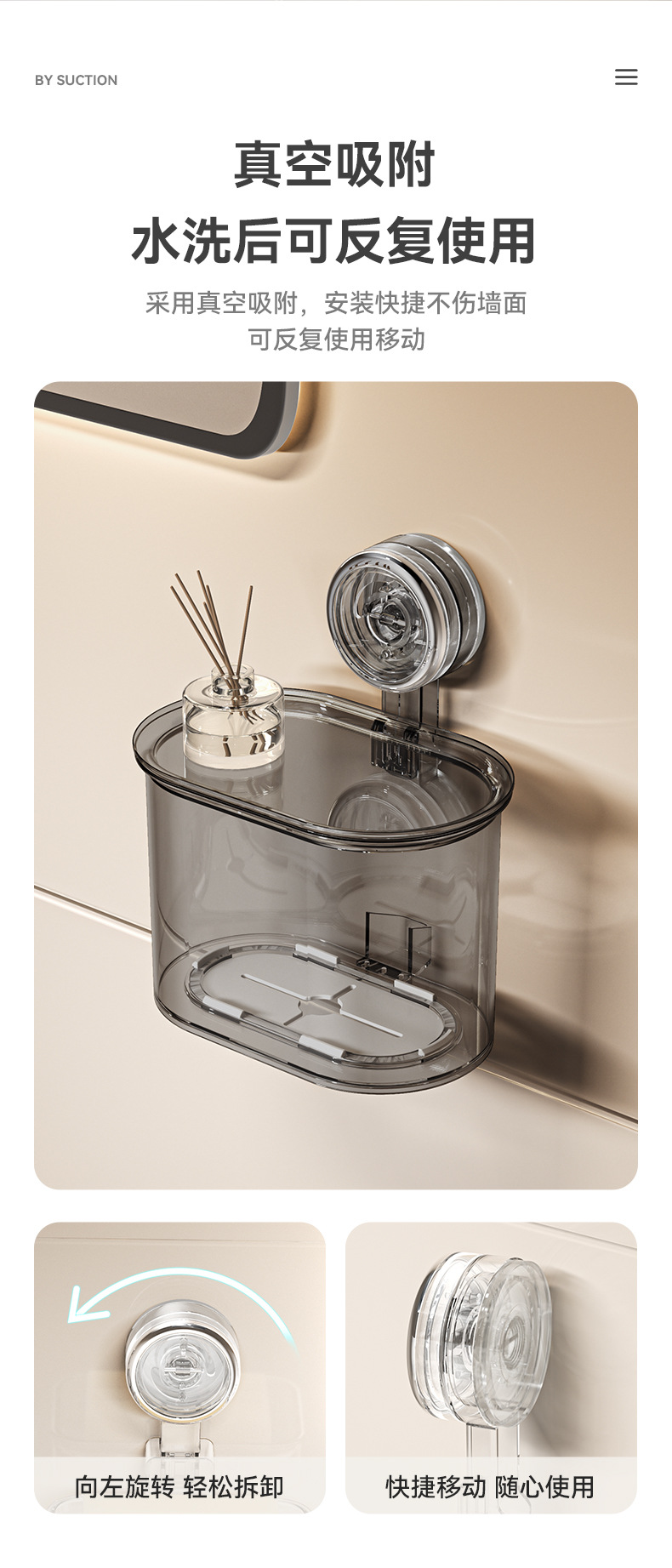 Color: Suction cup cling film storage box (transparent gray)