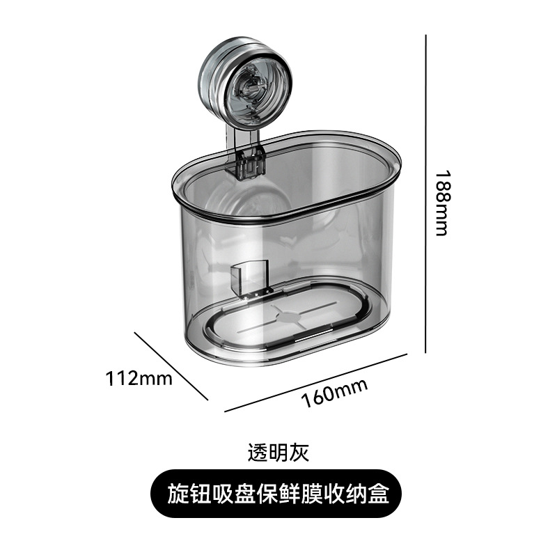 Suction cup cling film storage box (transparent gray)