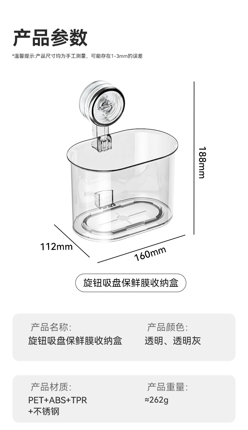 Color: Suction cup cling film storage box (transparent)