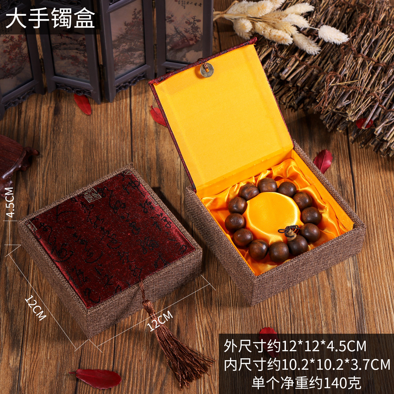 Specifications and models: Red face ancient poetry tassel small bracelet box; 10x10x3.7cm