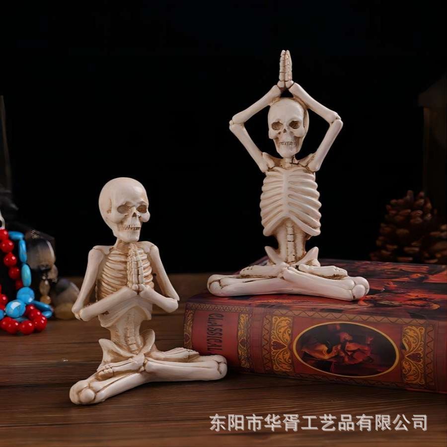 Amazon Hot Sale Meditation Yoga Skull Horror Home Decoration Halloween Simulation Skeleton Decoration Scene Layout