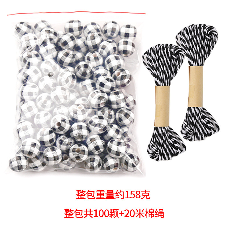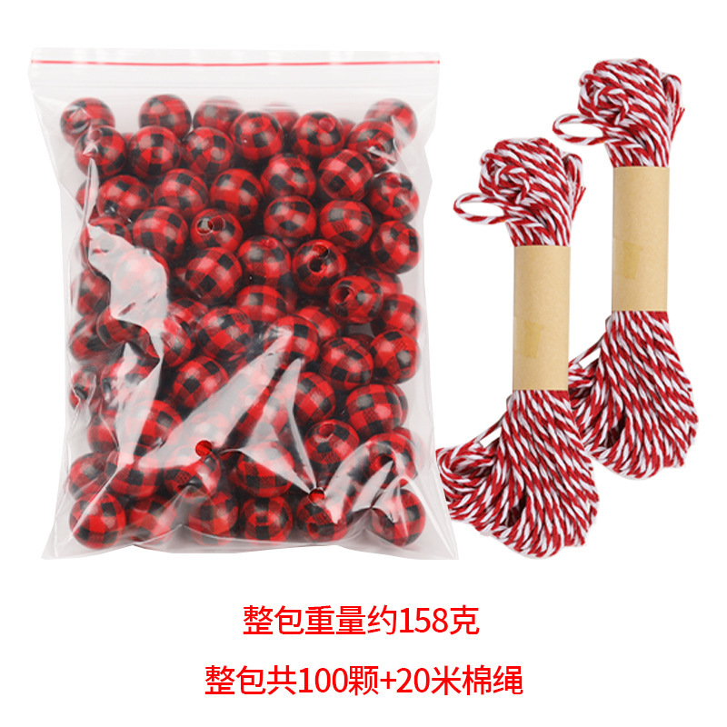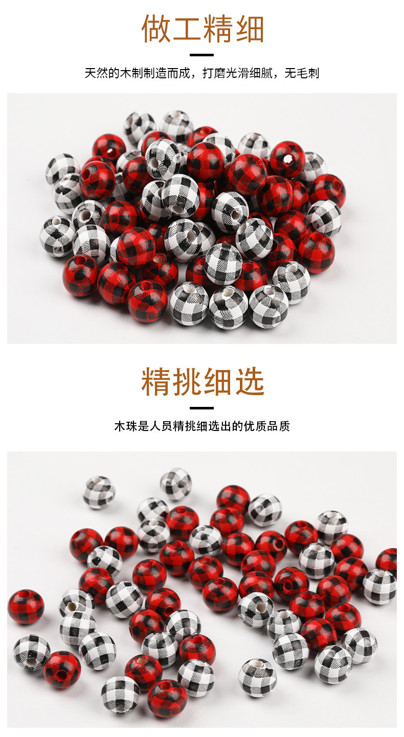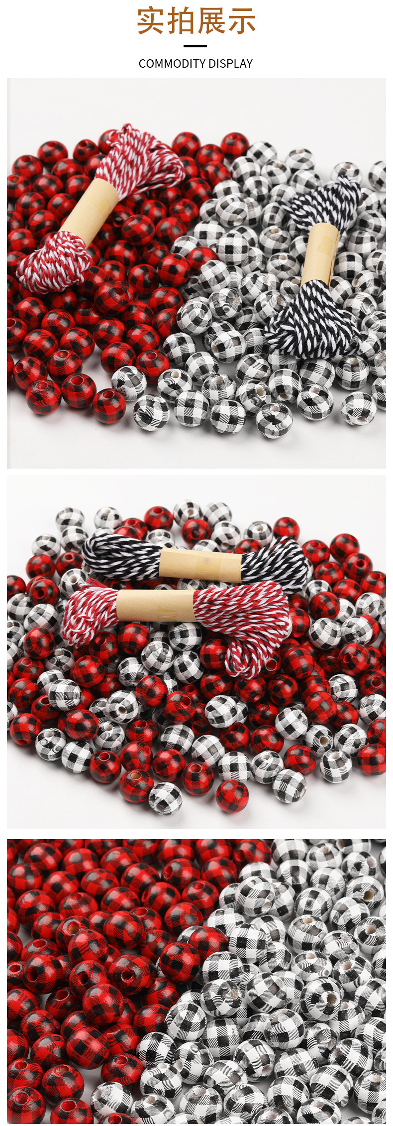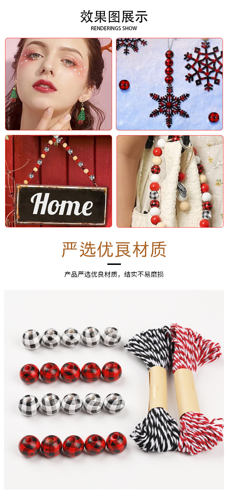 现货16mm儿童圣诞红黑格纹木珠棉绳组合套装彩色圆珠diy饰品配件