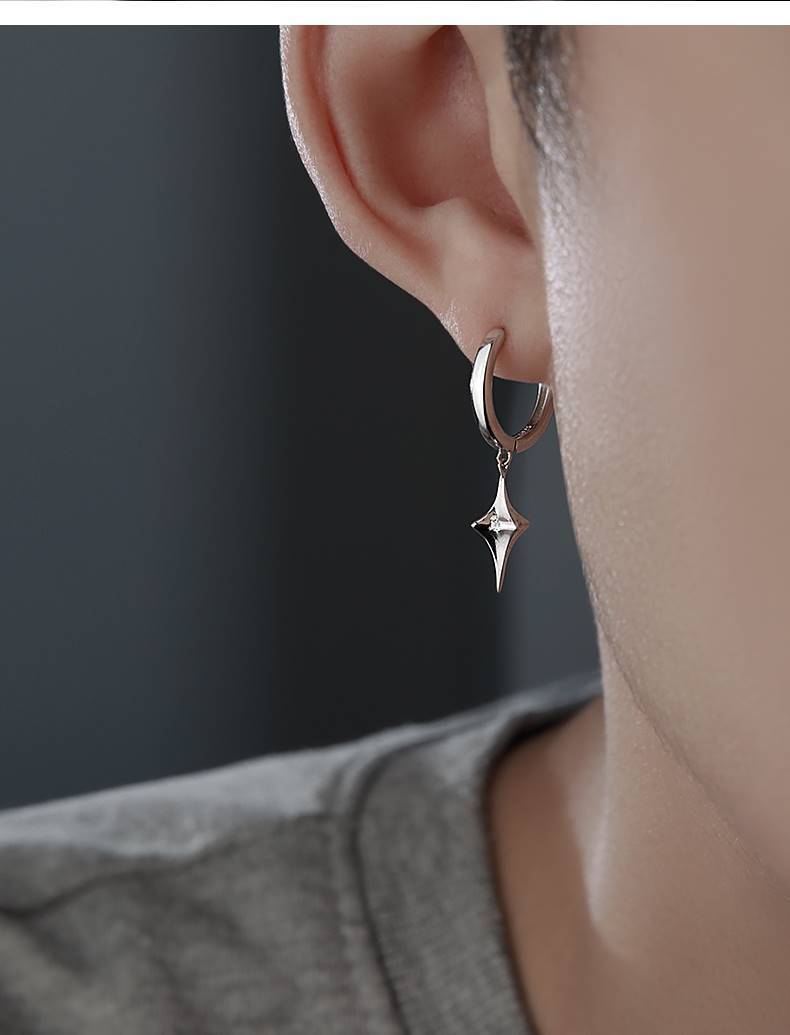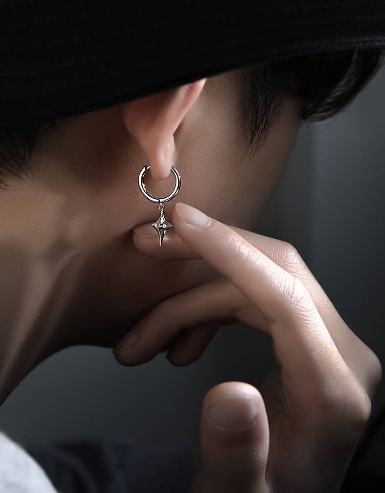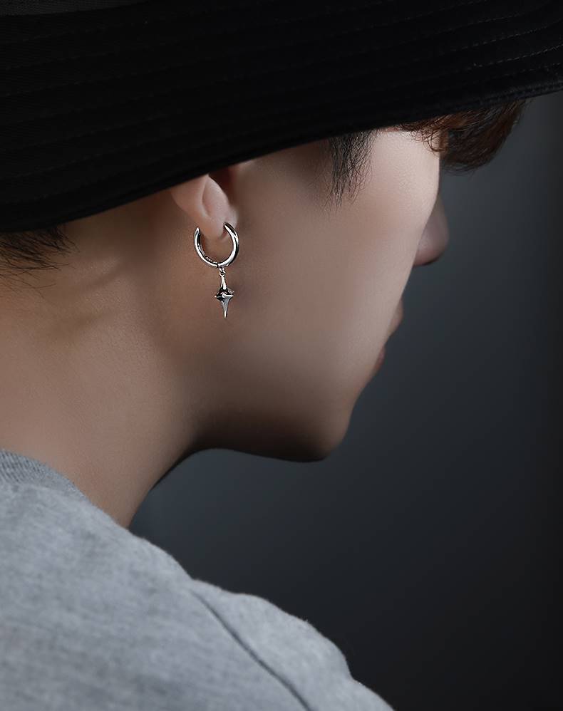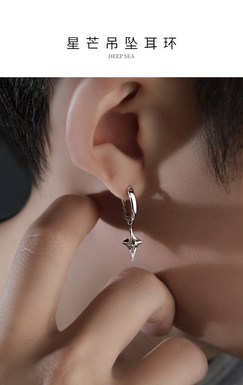 Star Ear Earrings Men's Niche Trendy Distinctive Ear Buckle Handsome Ins Style Earrings Simple Earrings Men's Single All-match Earrings