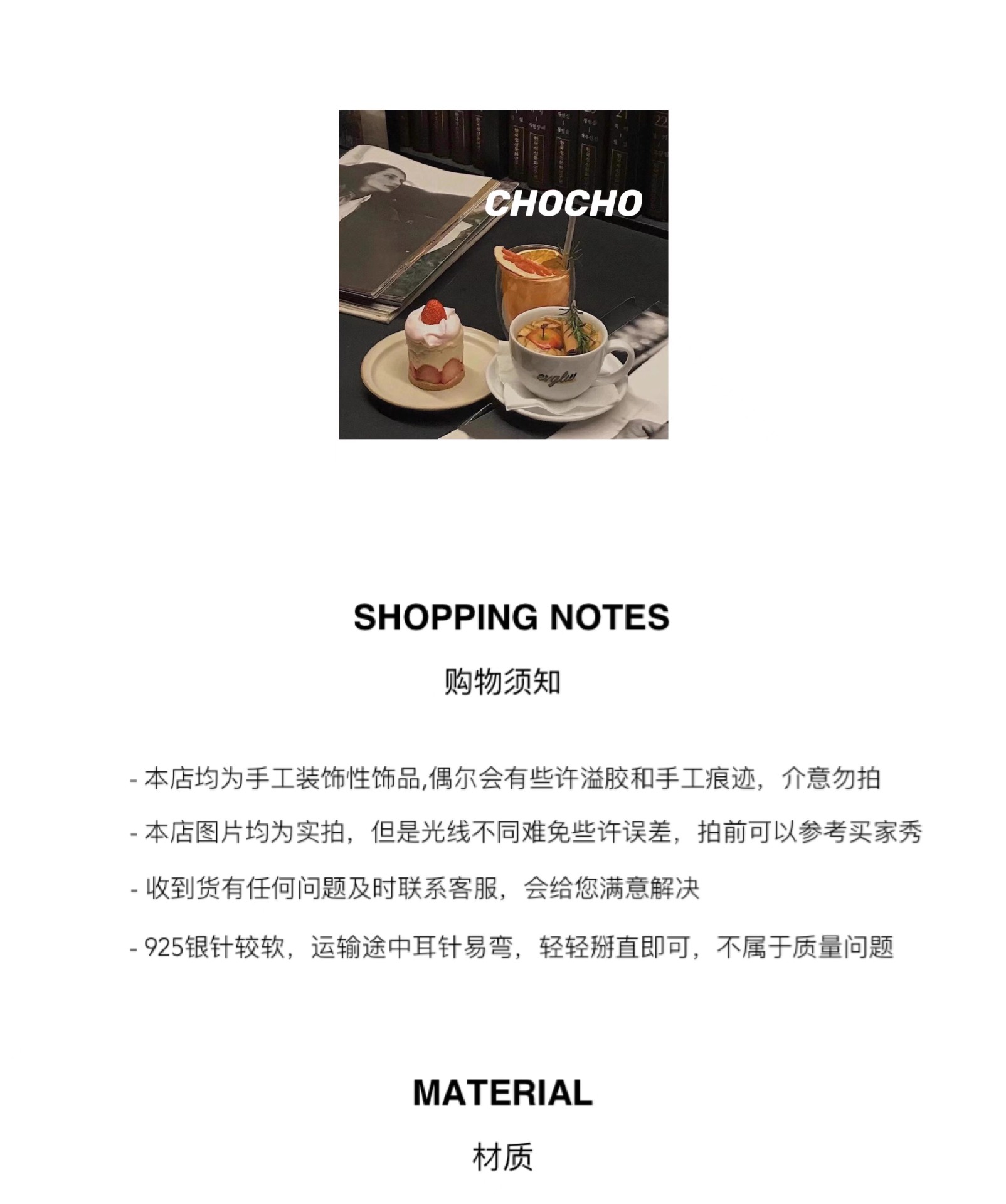 Chocho/Chagall Dinner Vintage vintage High-end Earrings Niche Design Earrings Earrings for Women