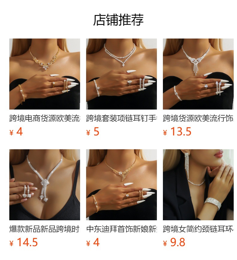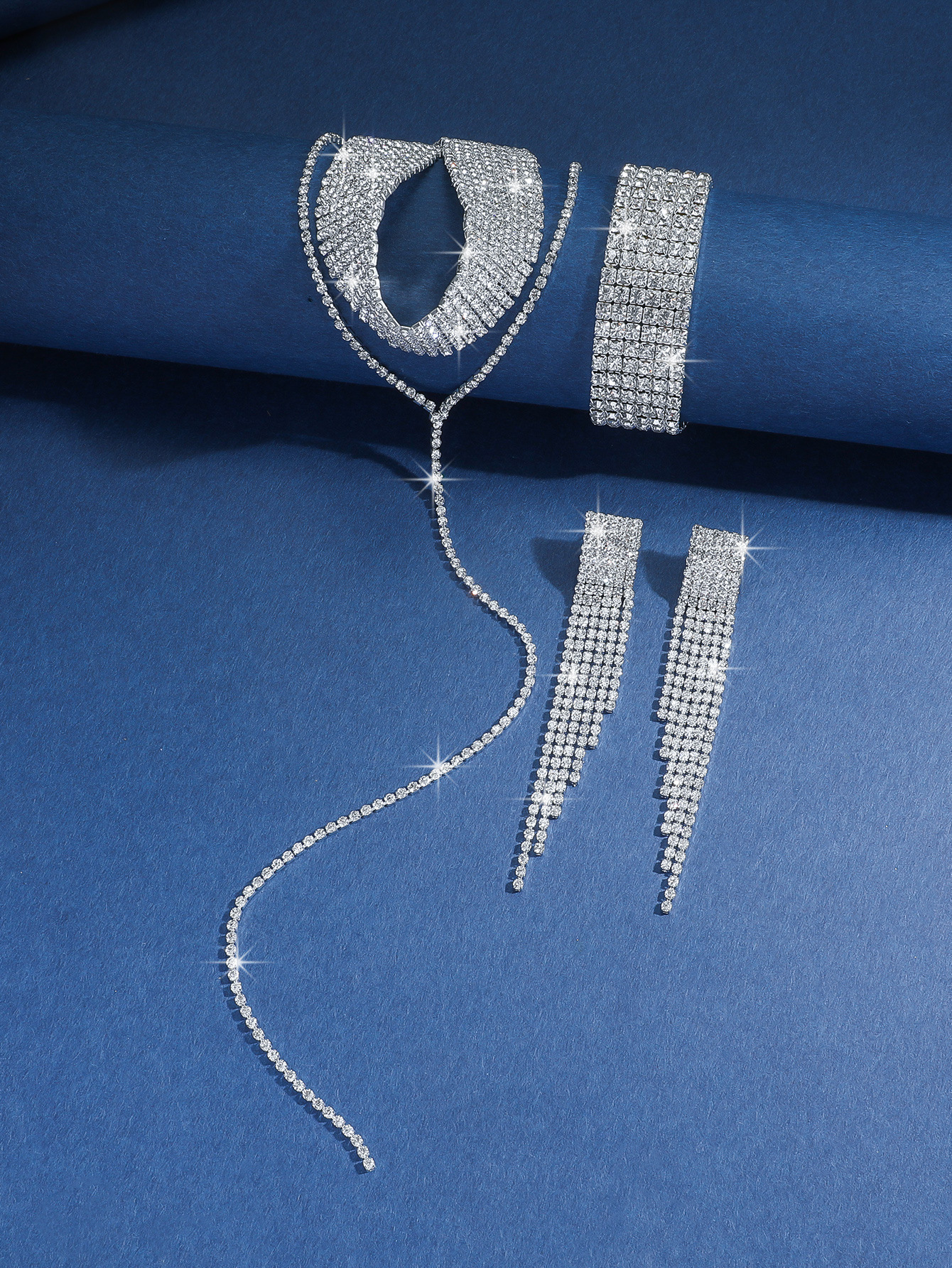 Europe and the United States cross-border new accessories bundle neck chain necklace full diamond claw chain bracelet earrings neck chain three-piece set full of diamond women