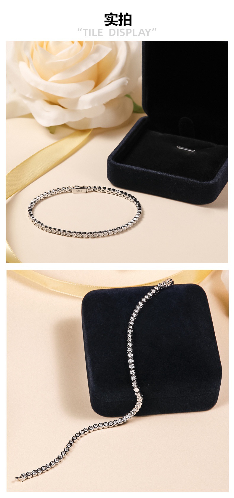 Cross-Border S925 Silver Moissanite Tennis Bracelet 16/17/18cm Popular for Men and Women, Single Row Full Diamond Geometric Squares