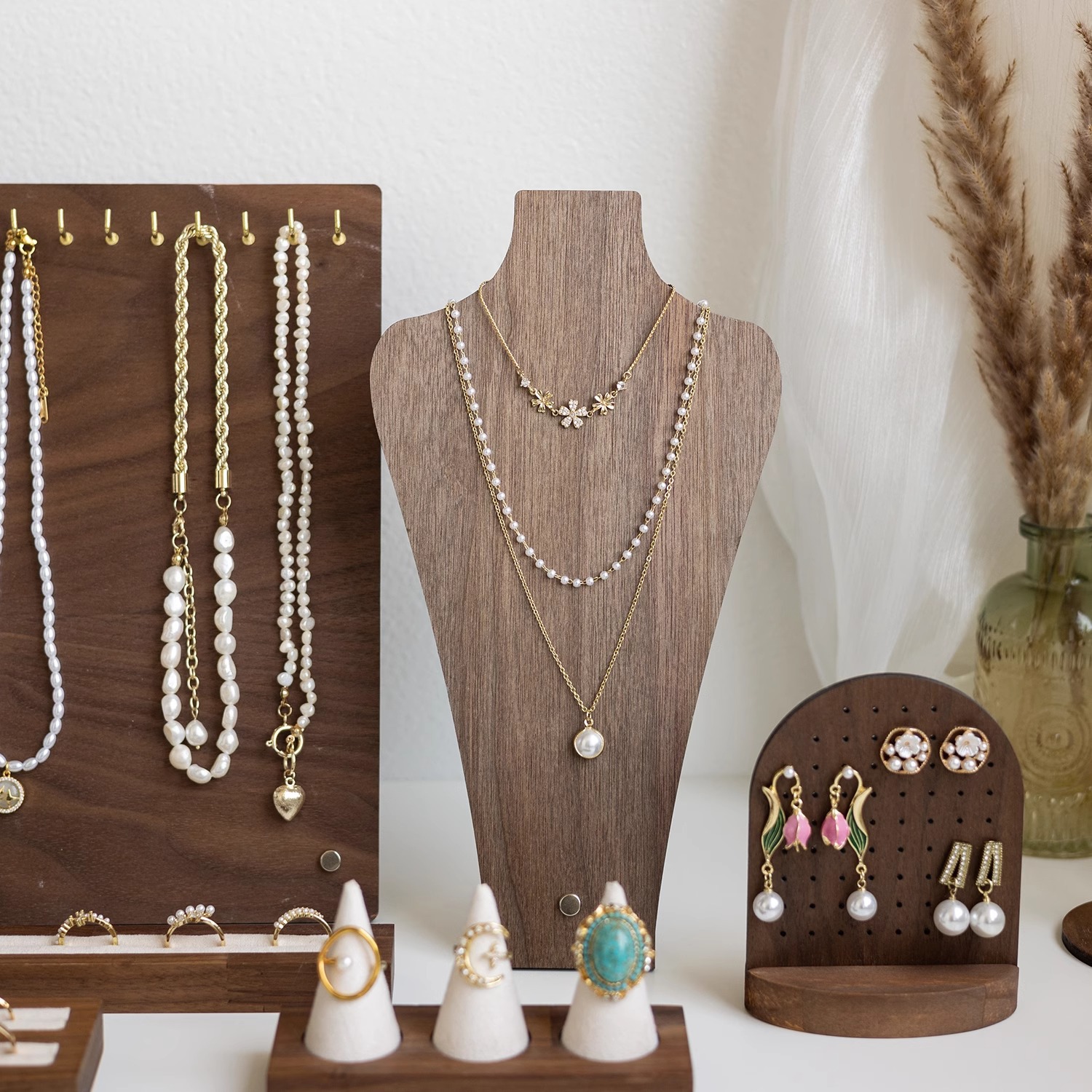 Walnut Color Large Capacity Necklace Display Stand Bracelet Bracelet Storage Rack Jewelry Pendant Shop Stall Display Shelf