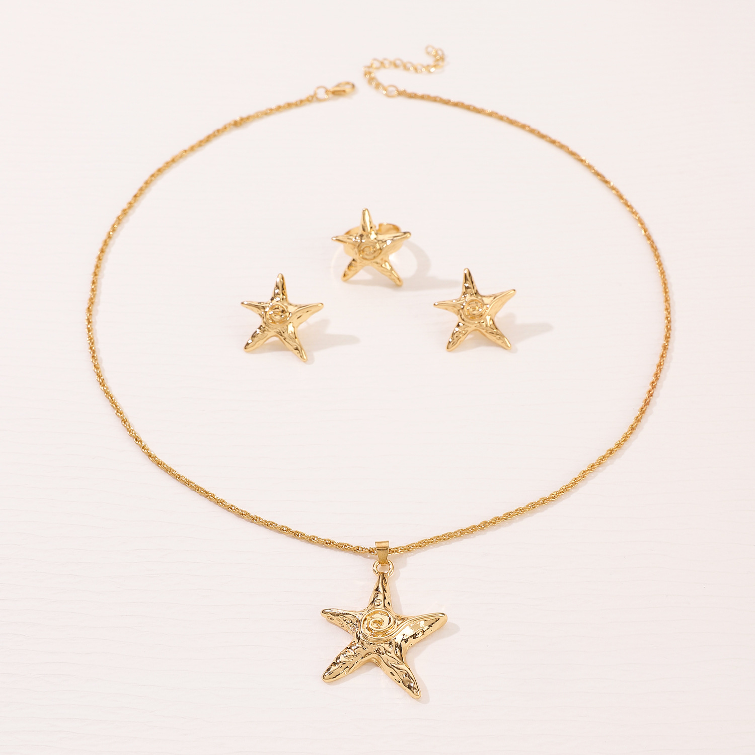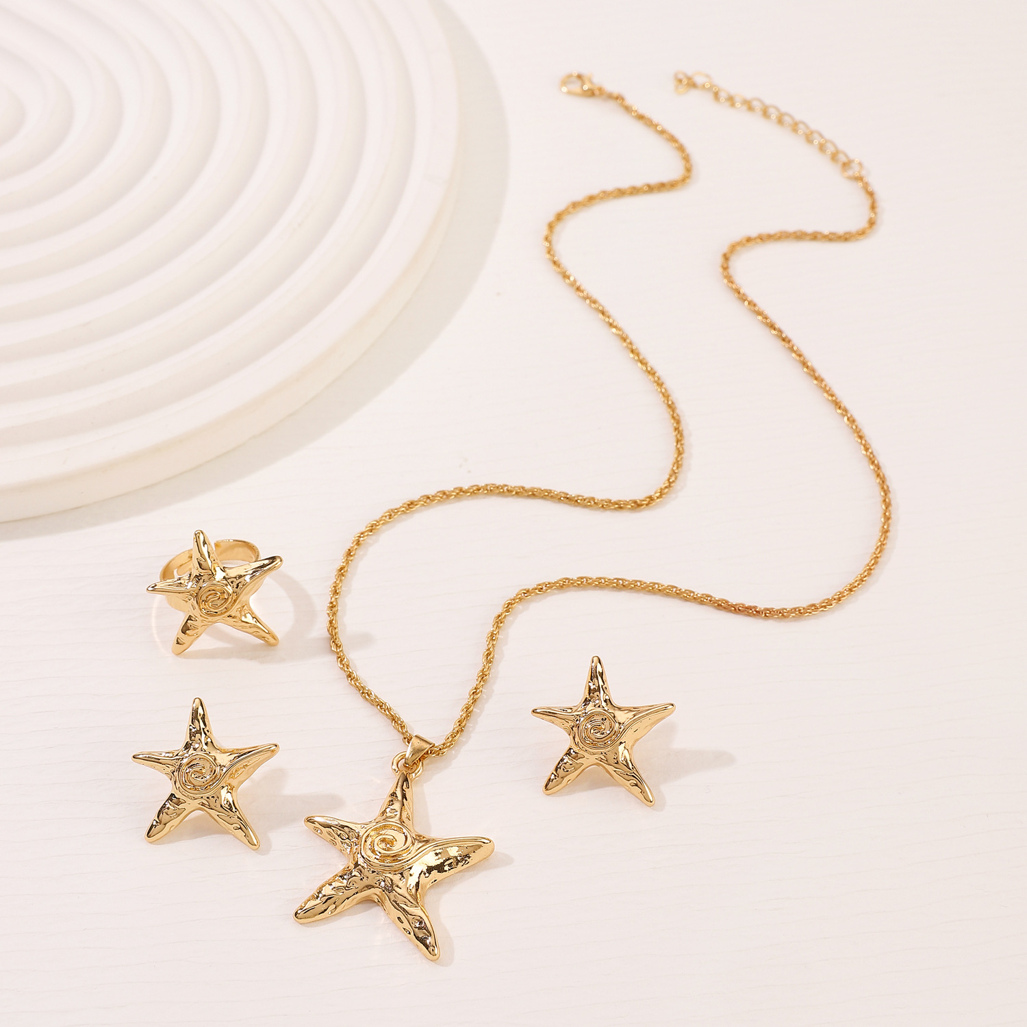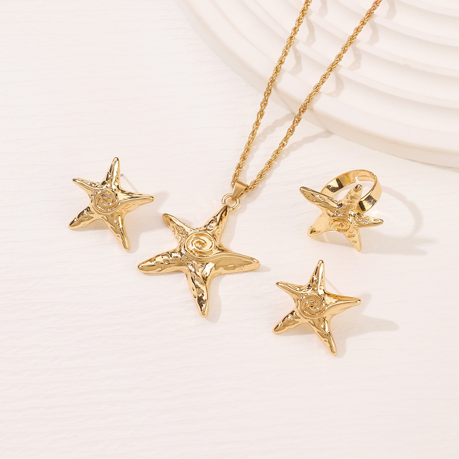 European and American Cross-border Starfish Spiral Earrings Ring Necklace suit ins Style Ocean Vacation Style Jewelry