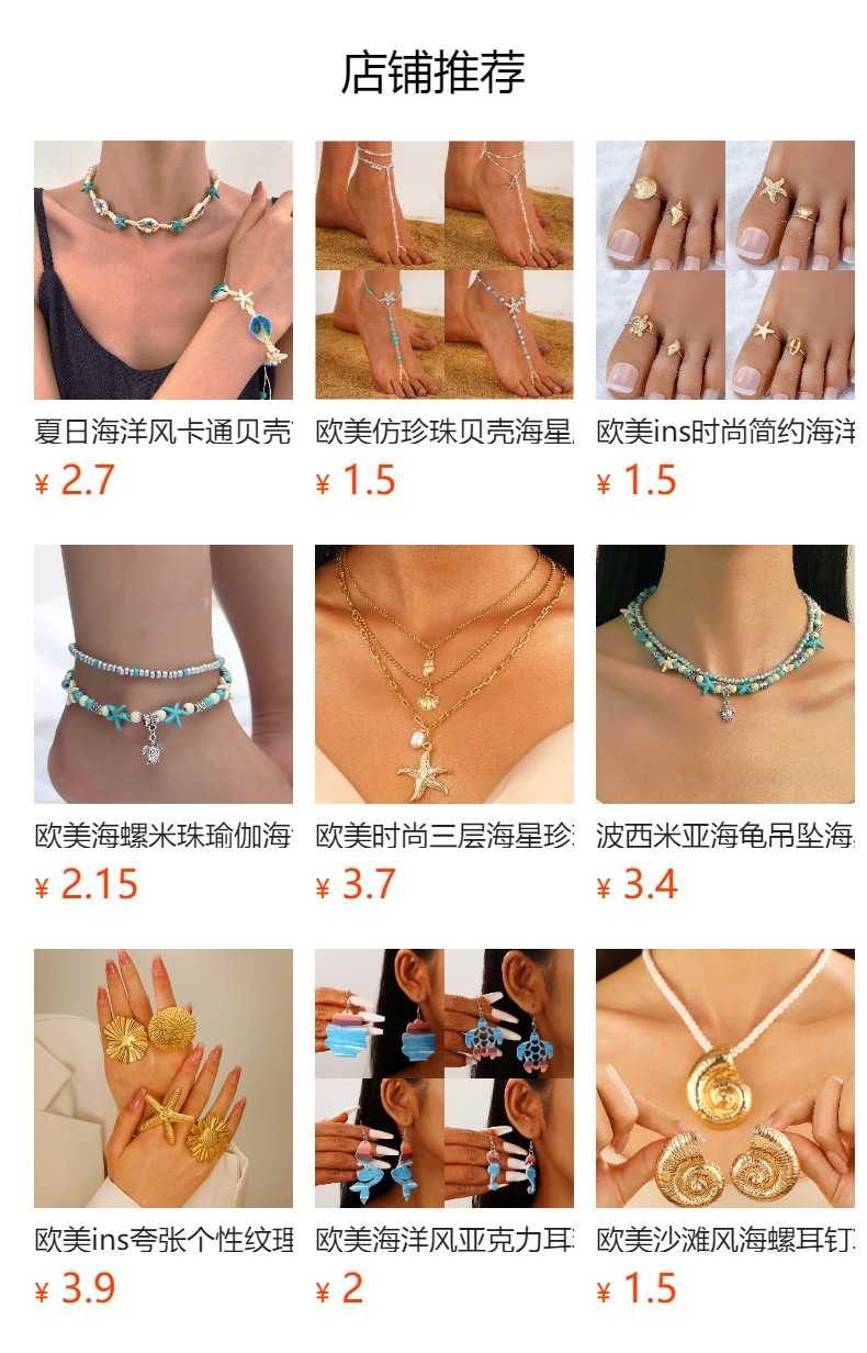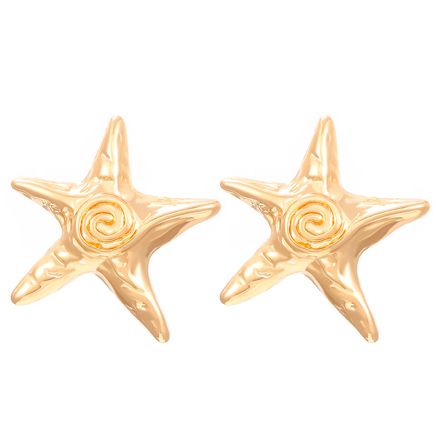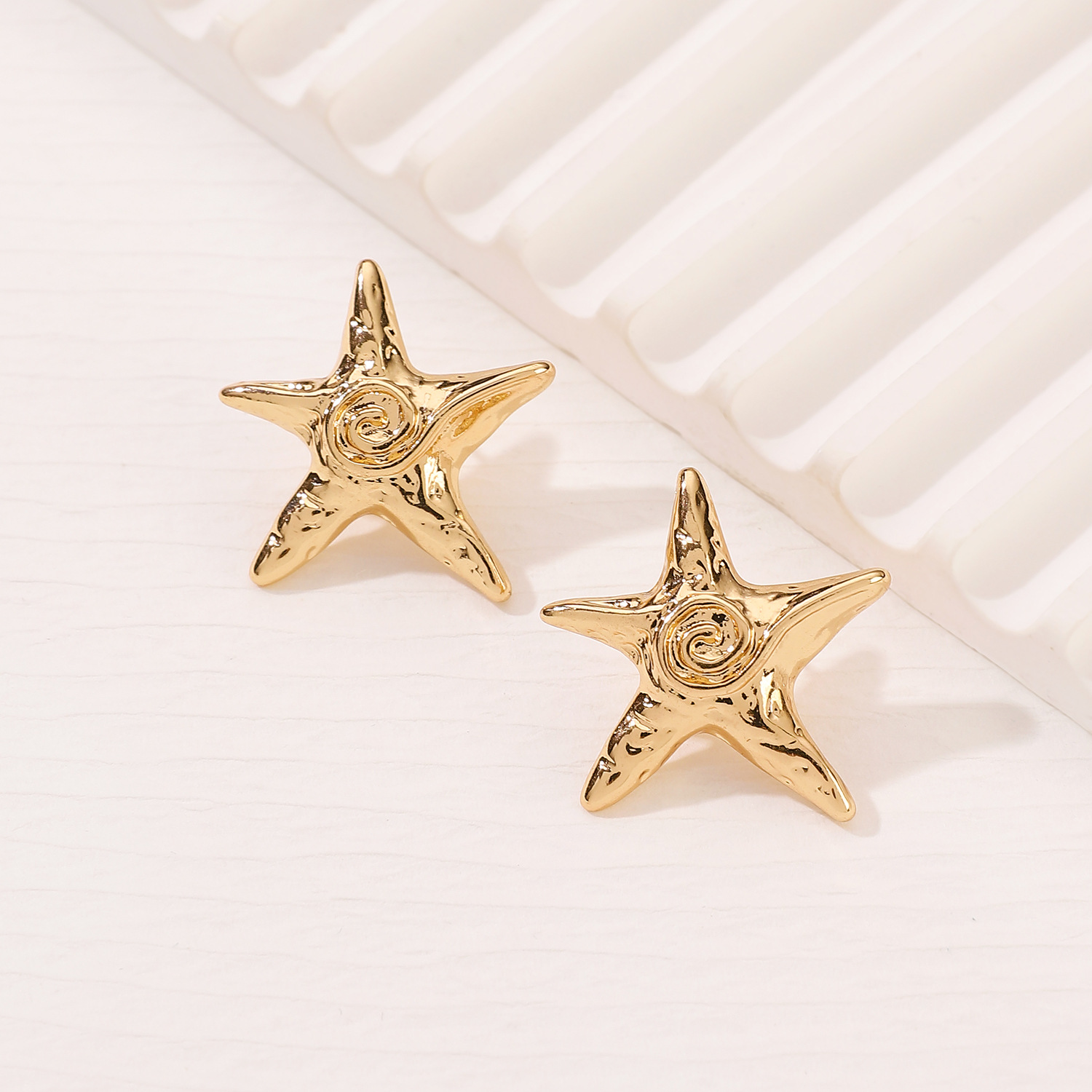 European and American Cross-border Starfish Spiral Earrings Ring Necklace suit ins Style Ocean Vacation Style Jewelry