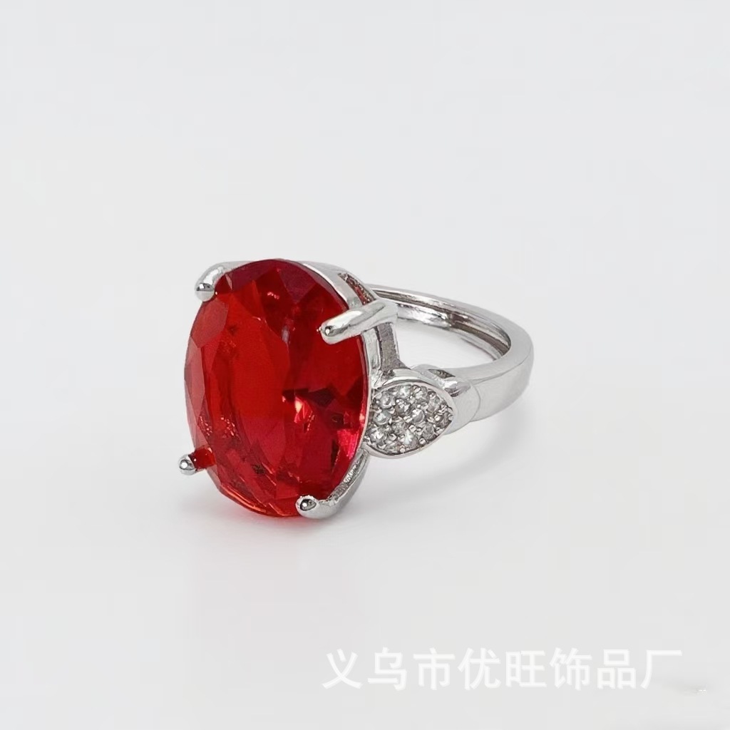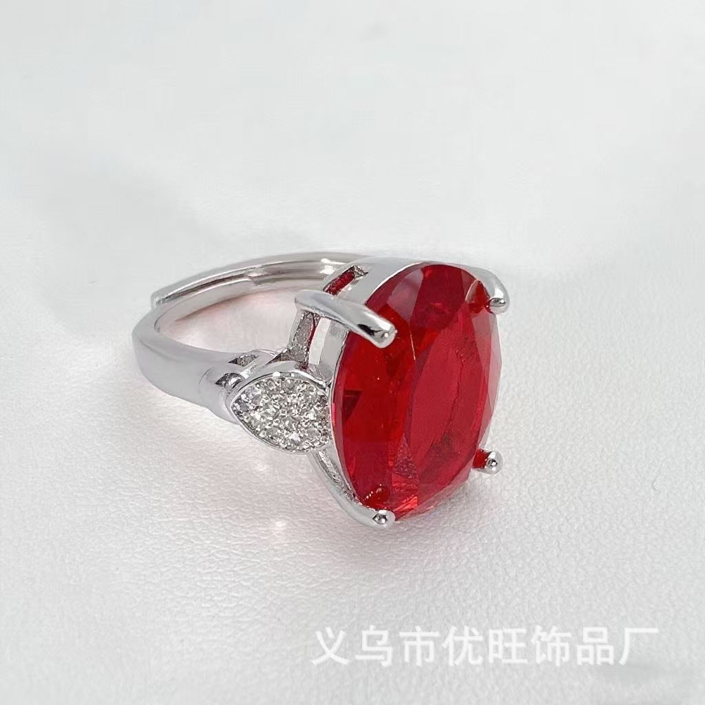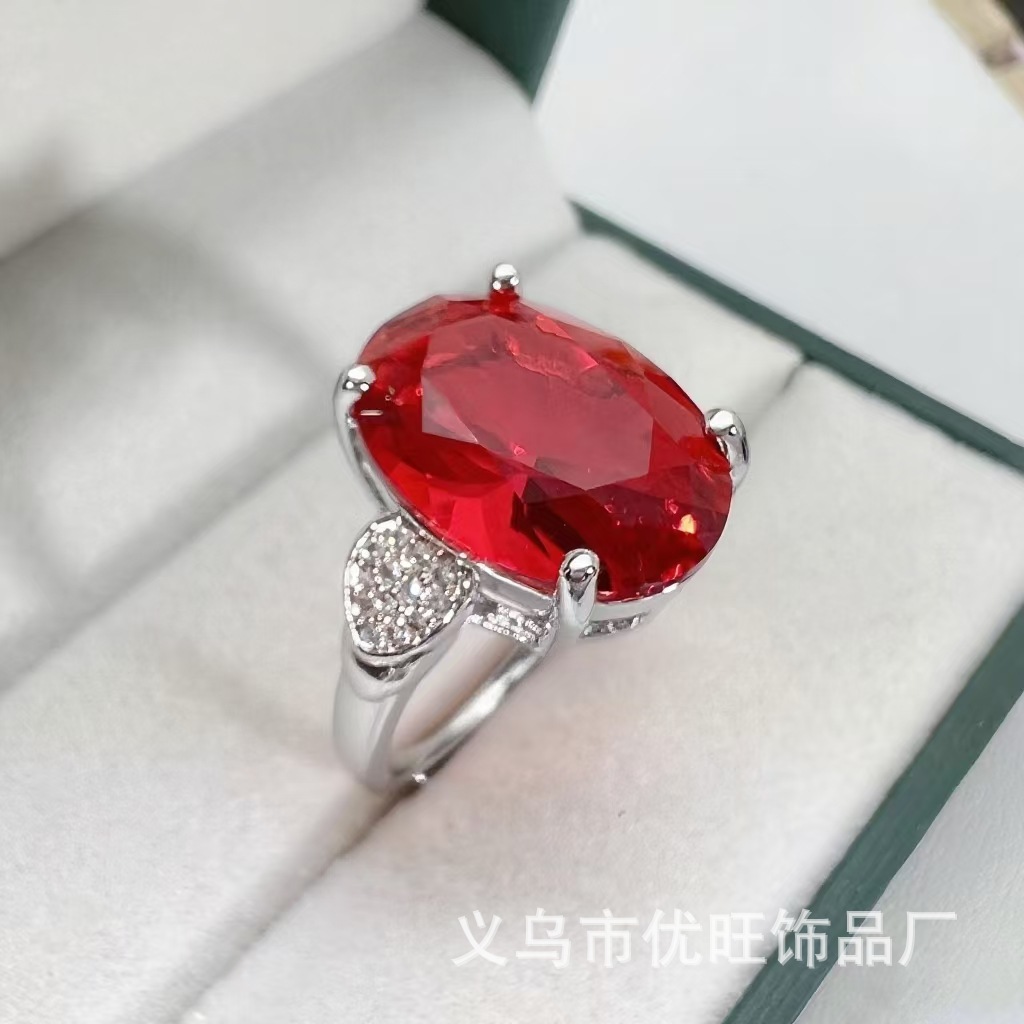 Douyin Internet Celebrity Live Broadcast Double Heart-Shaped Red Diamond Garnet Ring for Women Simple Temperament Egg-Shaped Crystal Ring Wholesale