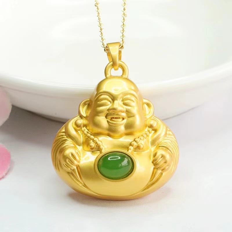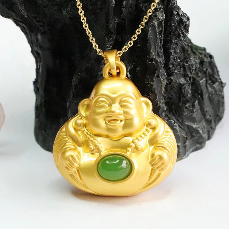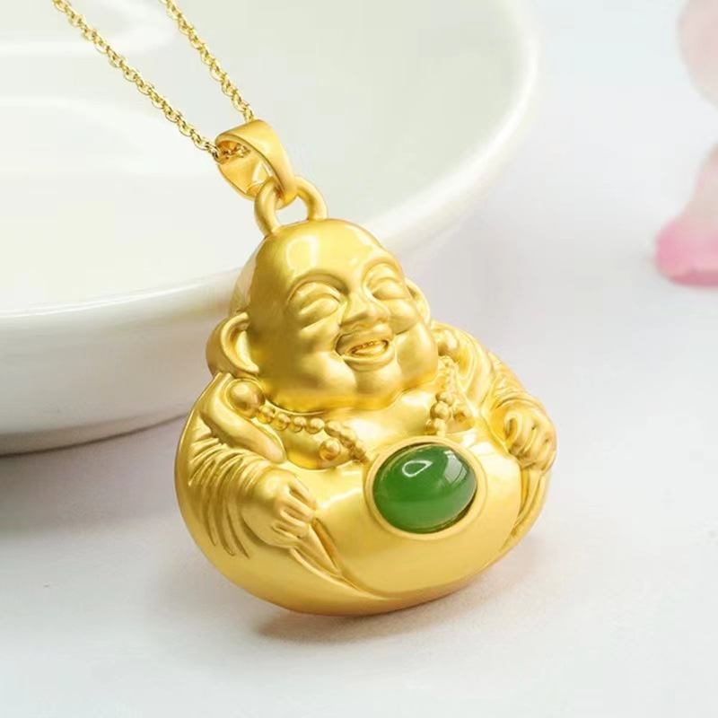 Ancient Gold Color-Preserving Maitreya Buddha Pendant Lucky Bag Gold Buddha Statue Blessing Lock Peace Lock Pendant Necklace DIY Original Design