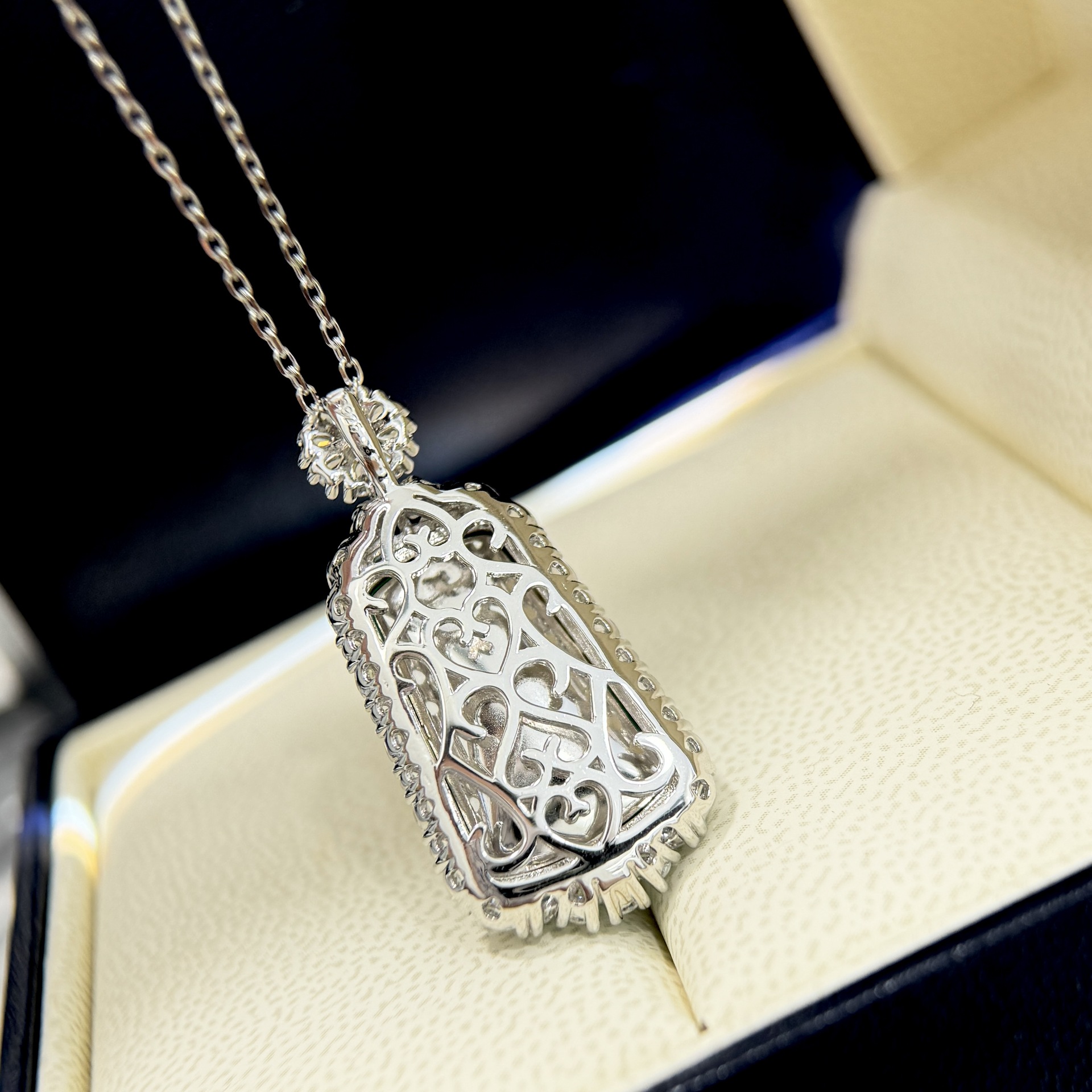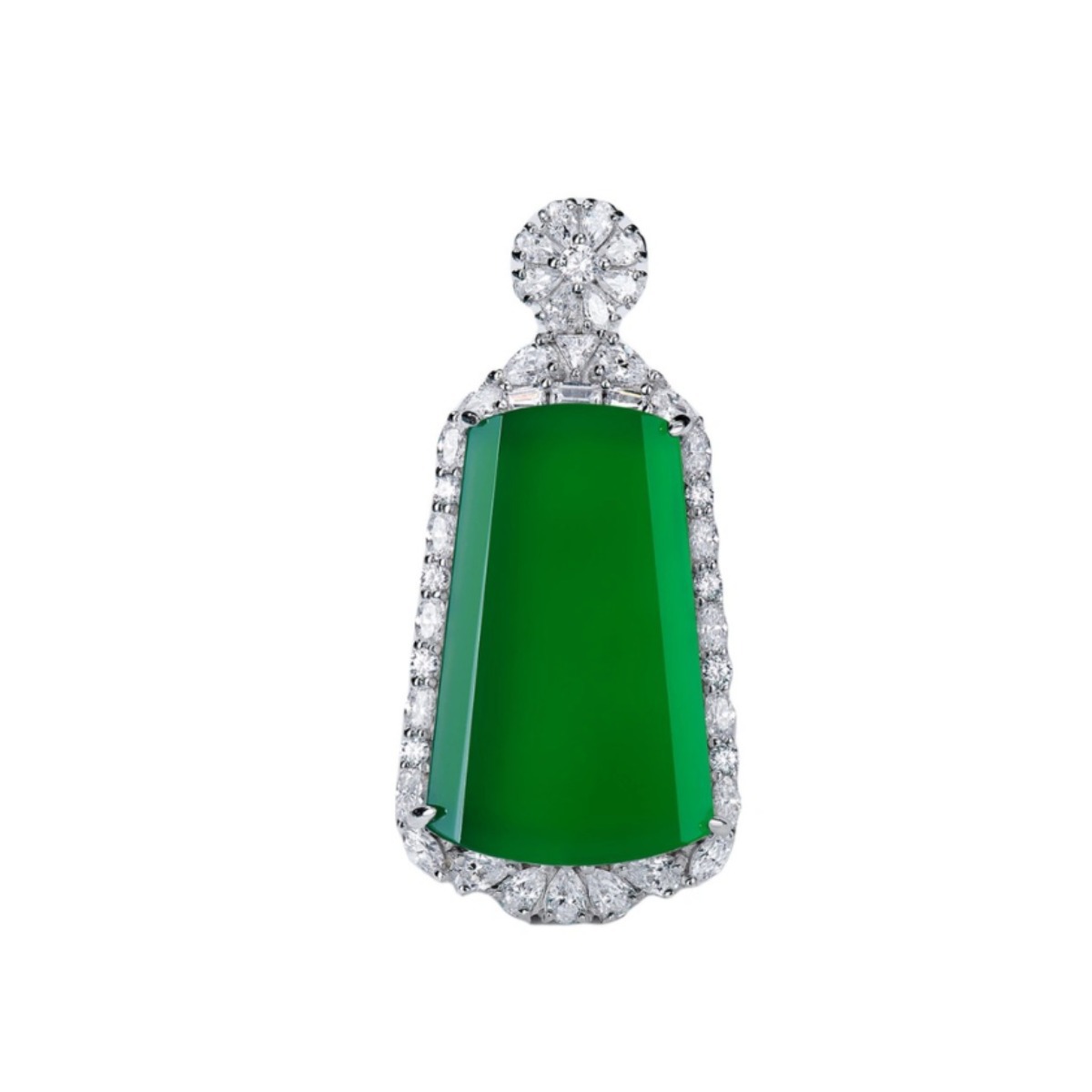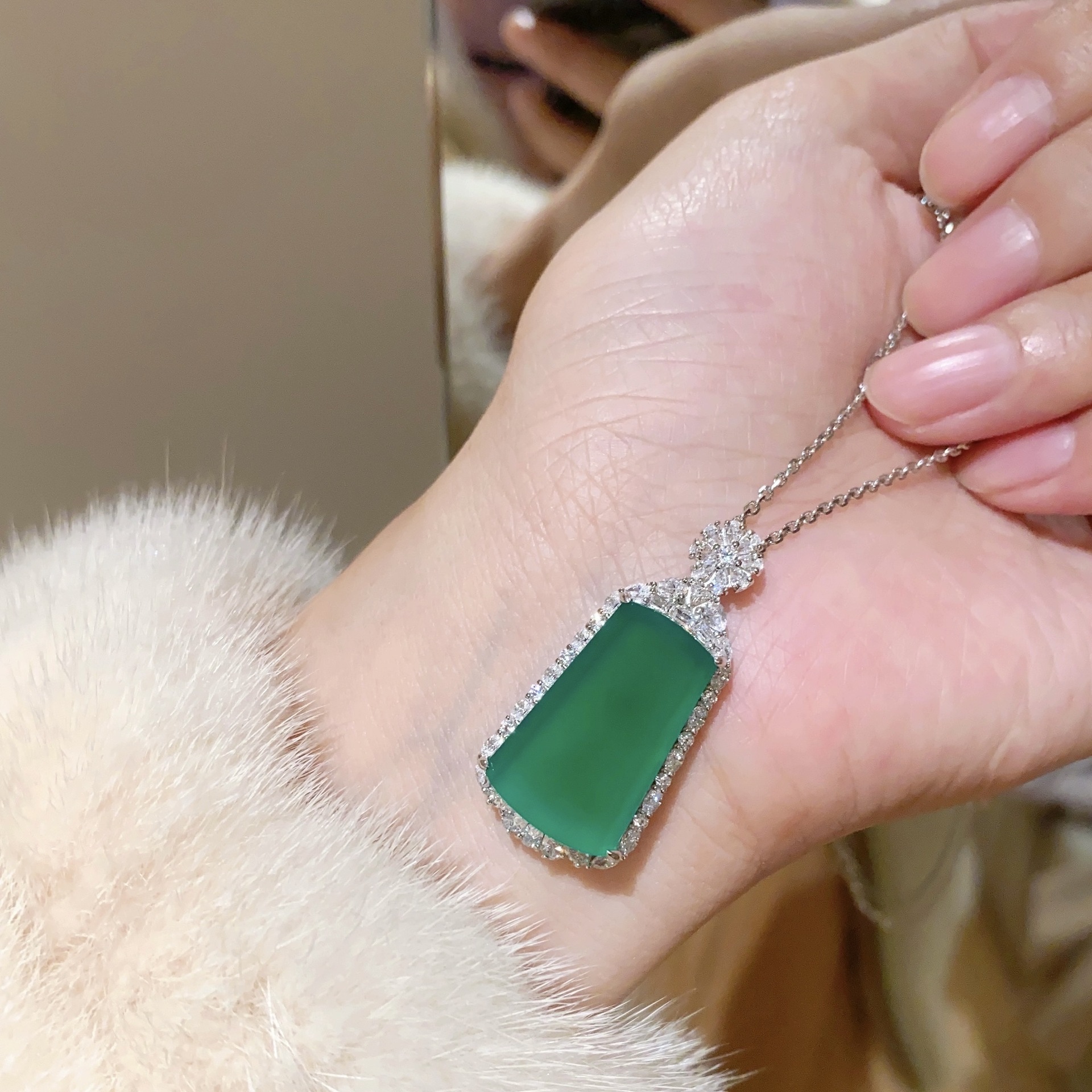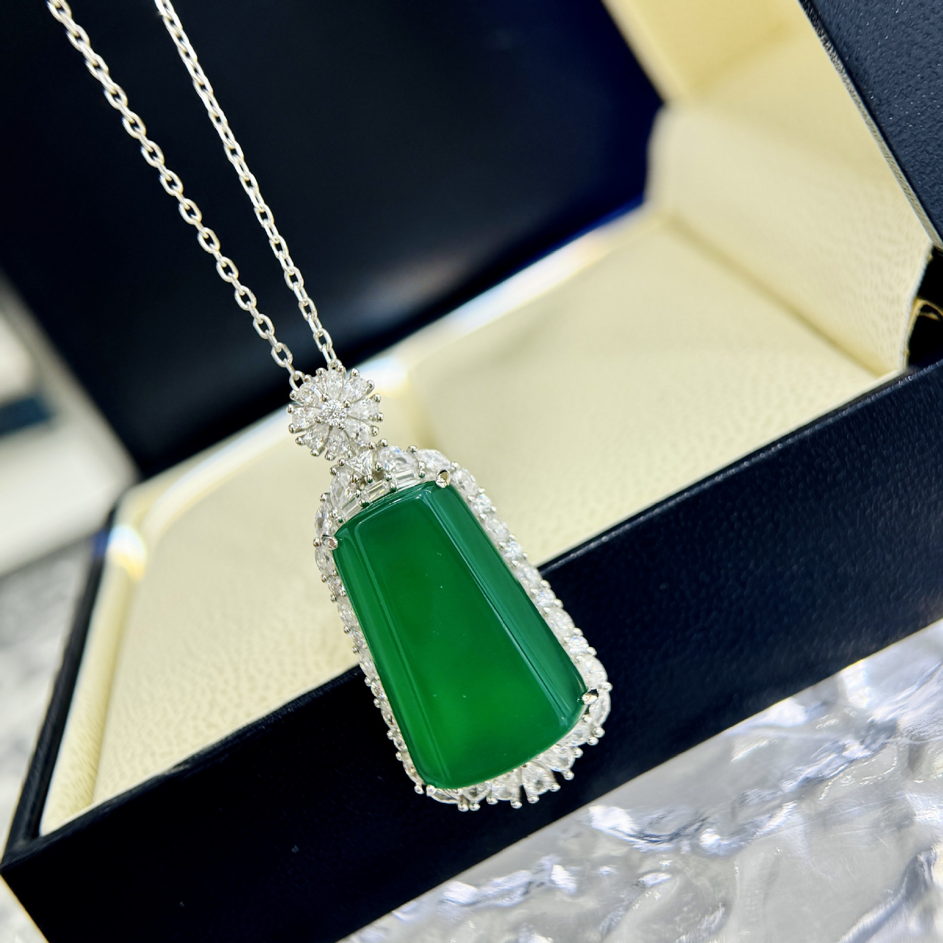 Sterling Silver S925 Chinese Style New Chinese Green Row Inlaid with White Diamond Chalcedony Green Piece No Matter Necklace Ice Type Yang Green