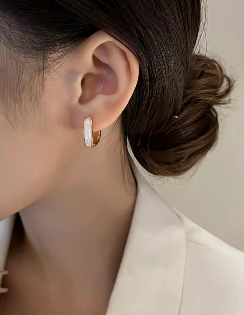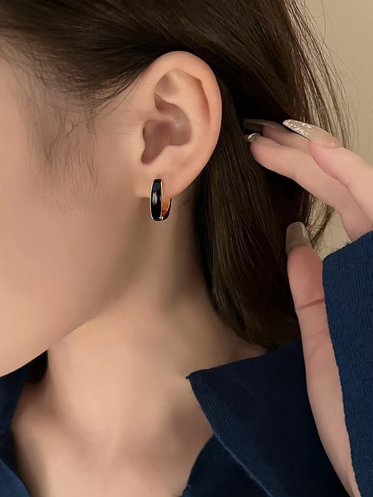South Korea Dongdaemun Glaze Square Ear Buckle Personality Niche Design Sense Geometric Temperament All-match Daily Commuter Earrings