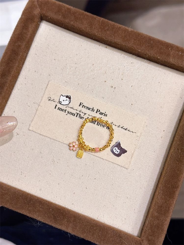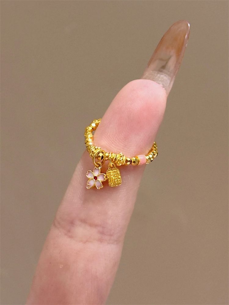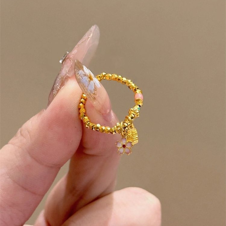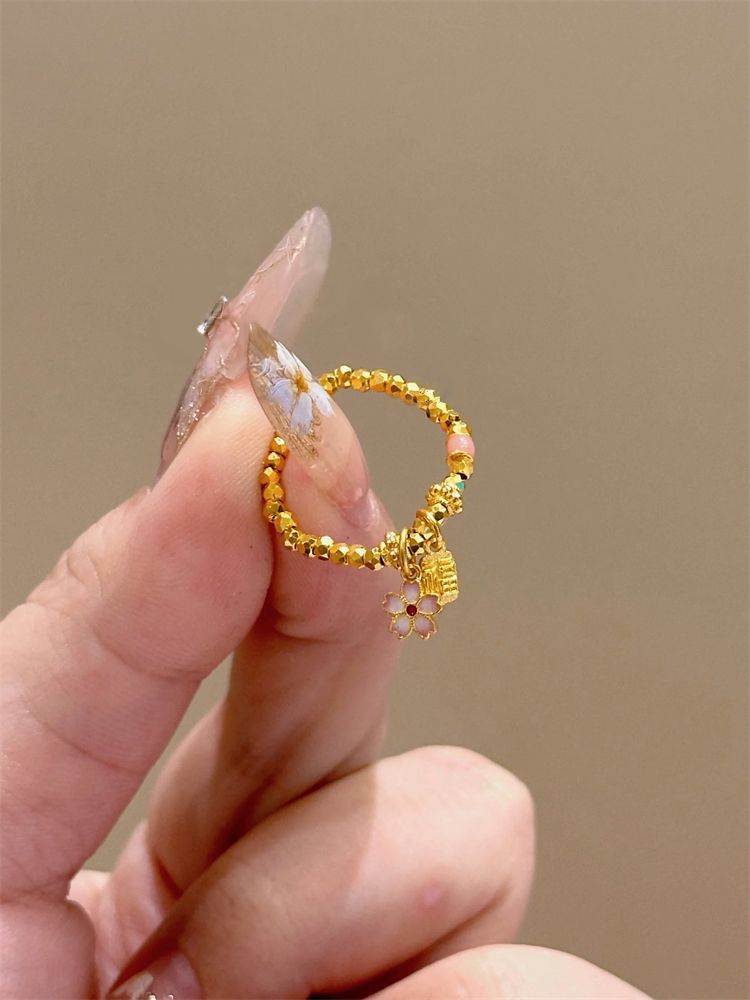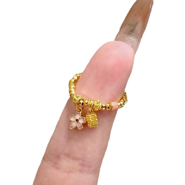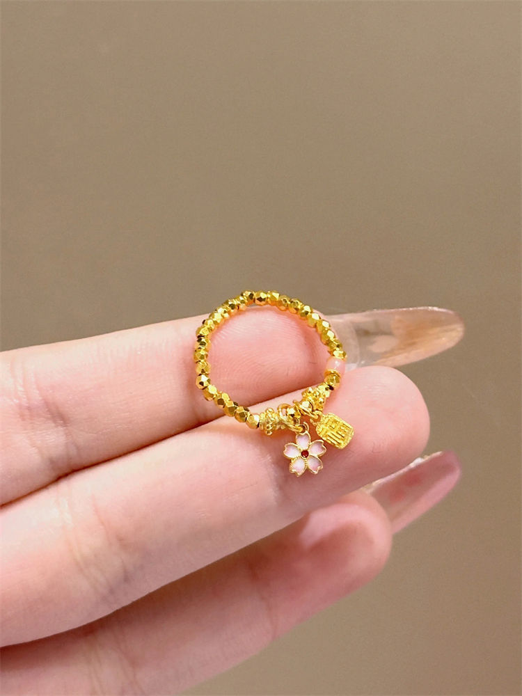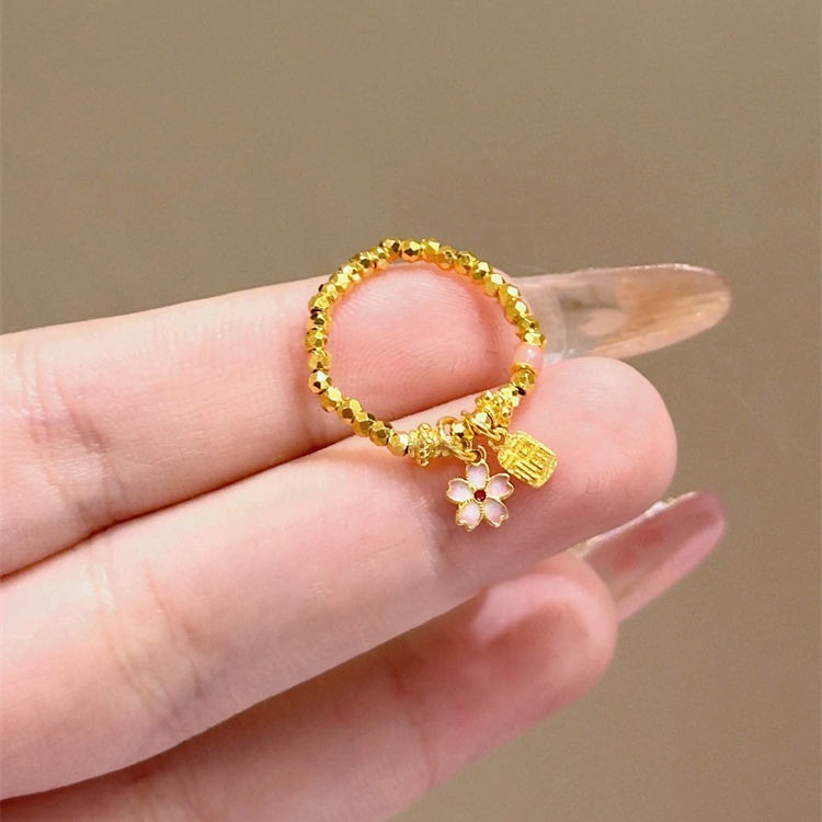 Fu Brand Cherry Blossom Ring for Women ins Niche Design Super Flashing Broken Gold Bouncy Bead Ring Personalized Index Finger Ring