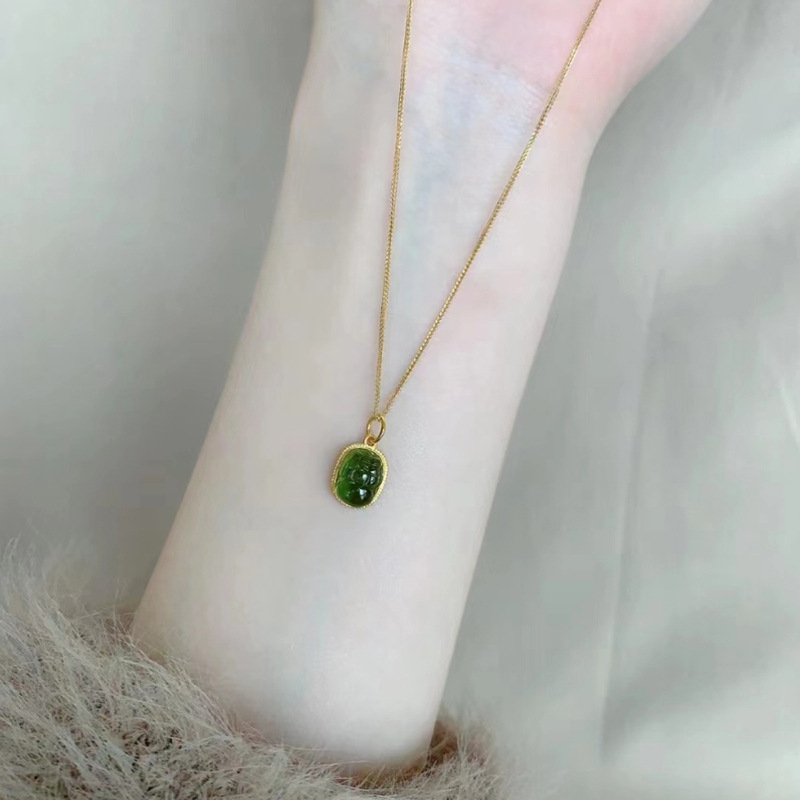 Xiaohongshu's New Imitation Hetian Jade Pixiu Necklace Accessible Luxury Fashion Trendyy Versatile Clavicle Chain High-end Niche Jewelry