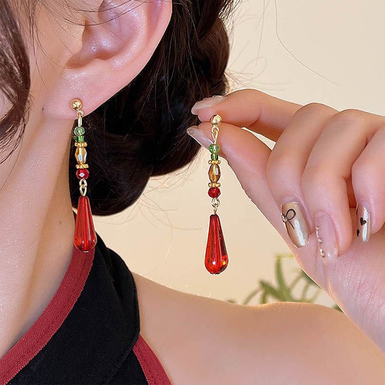 Color: Green water drop ear hooks