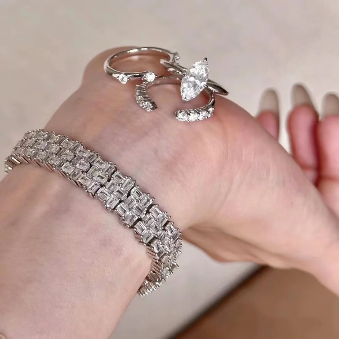 Little red book blogger with minimalist three-in-one stack ring bright super flash horse eye zircon open female ring