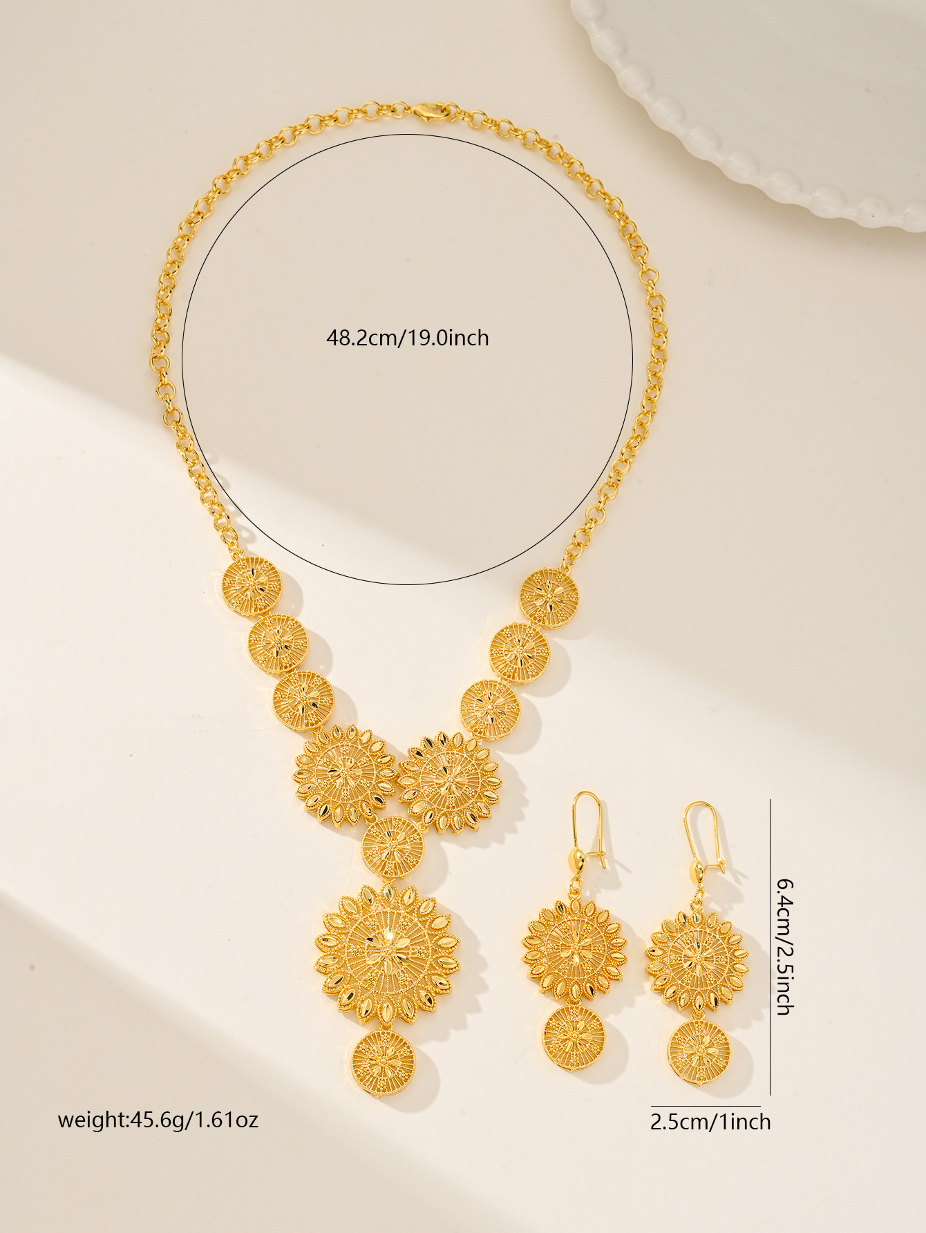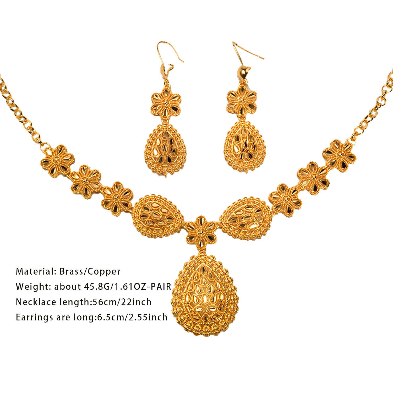 Cross Border 24K Gold Plated Bridal Necklace Earrings Two Piece Set India Dubai Jewelry Drop Shaped Sand Gold Jewelry suit