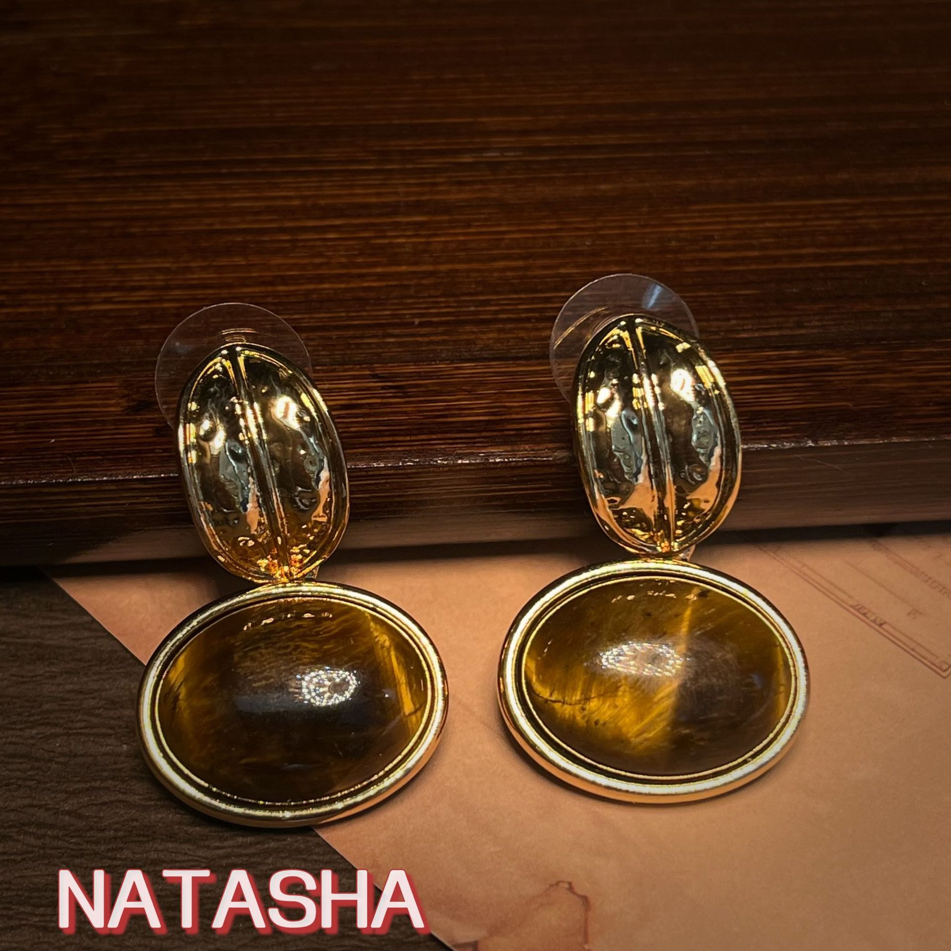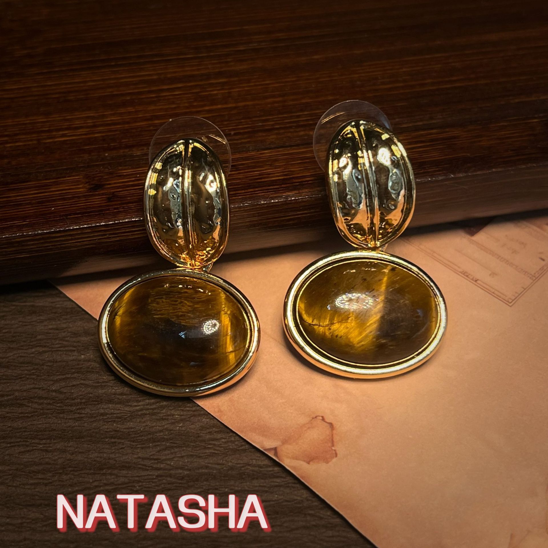 Artistic Retro Fashion Atmospheric Maillard Necklace Earrings European and American Middle vintage Tiger's Eye Collarbone Necklace