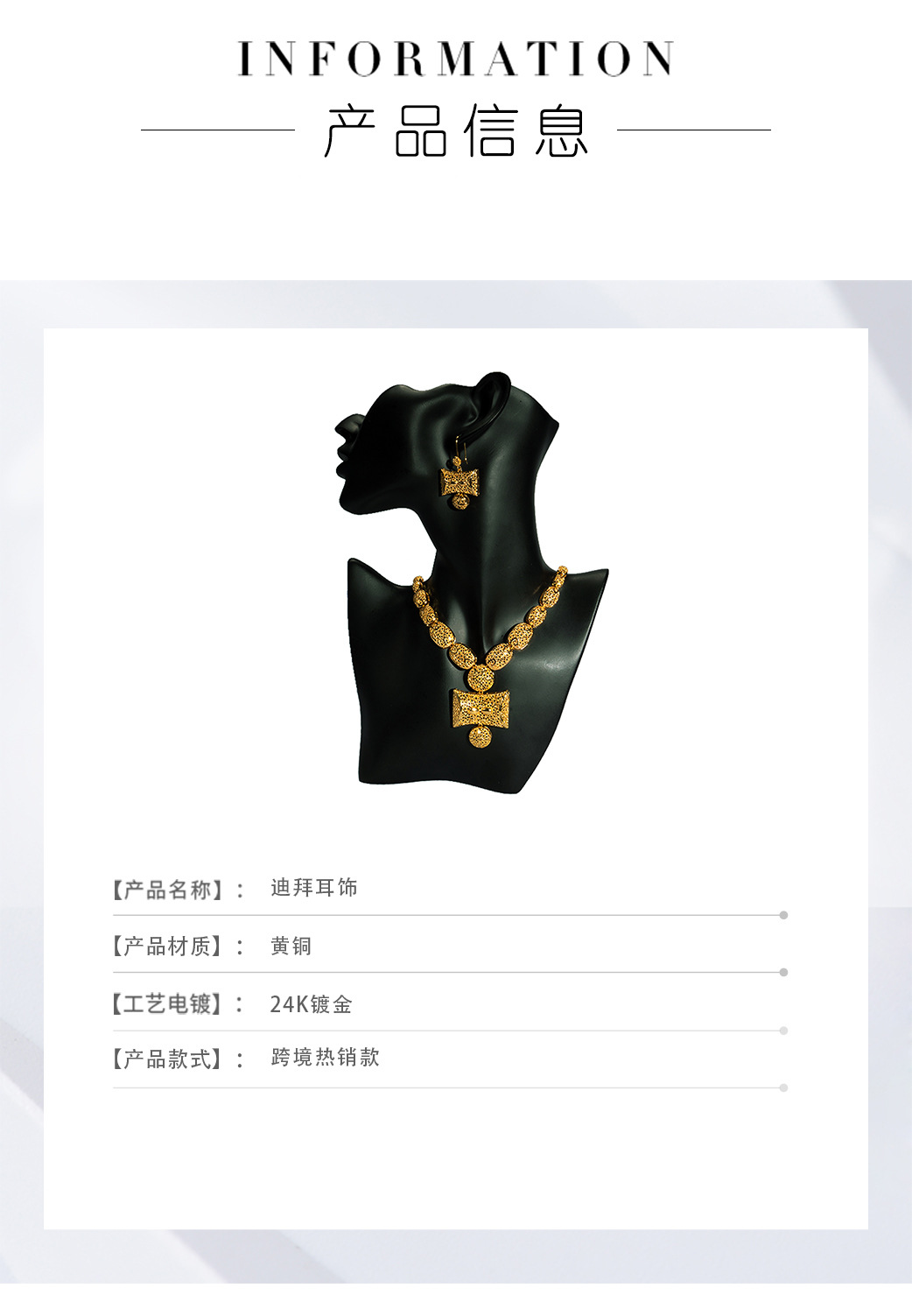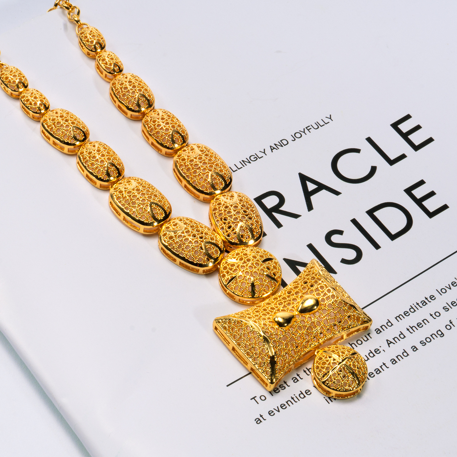 Dubai Cross-border Long Tassel Large Necklace suit 24k Gold Plated Necklace Earrings Two-piece jewelry sets