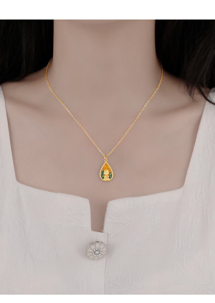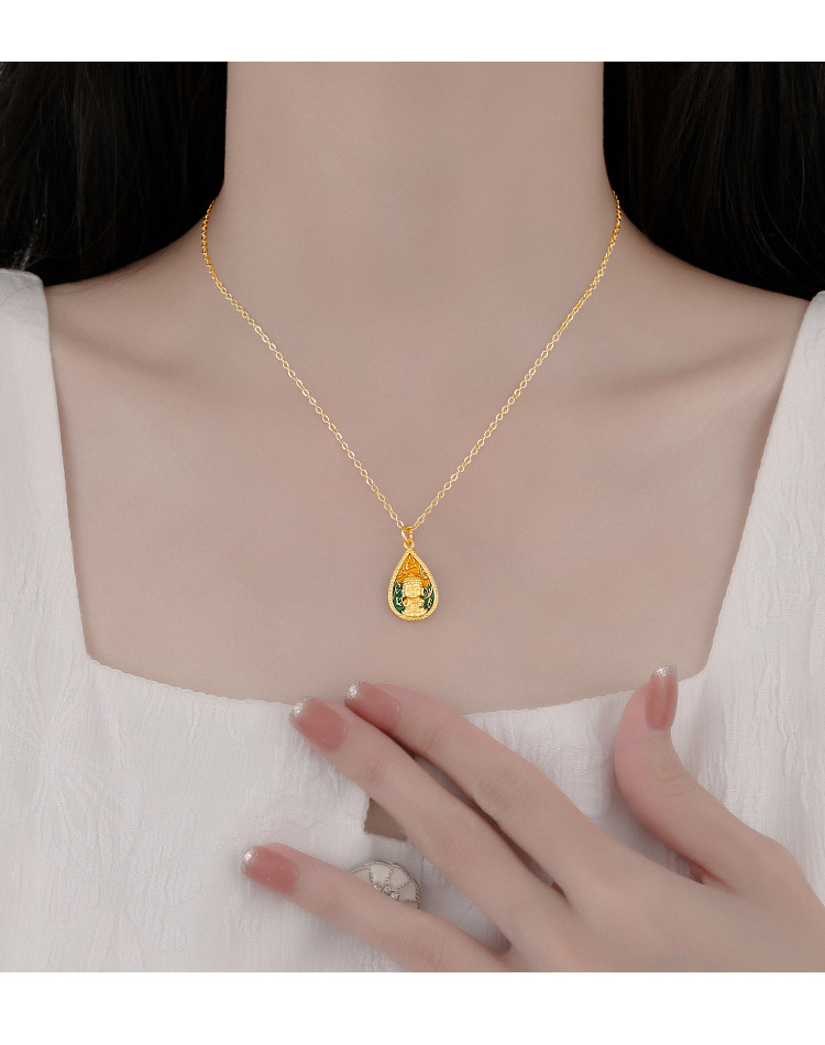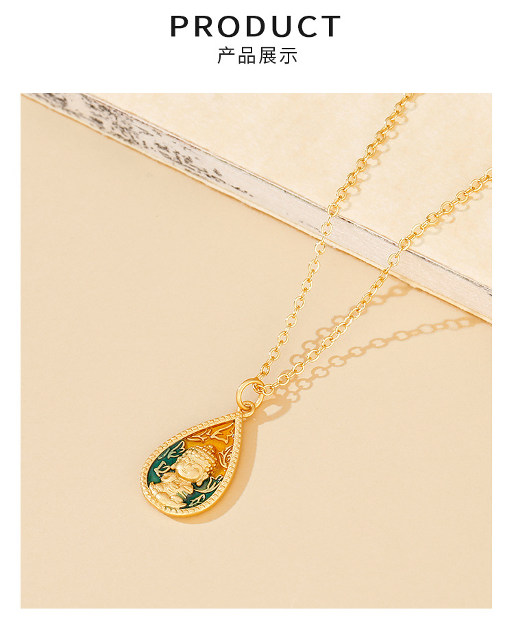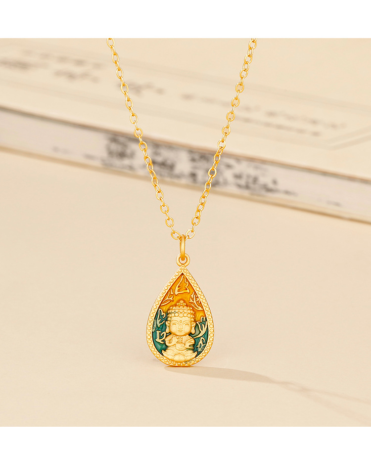 New Necklace of Fated Master Buddha Culture Blessing Buddha Burned Blue Ancient Chinese Style Niche Pendant High-grade Clavicle Chain
