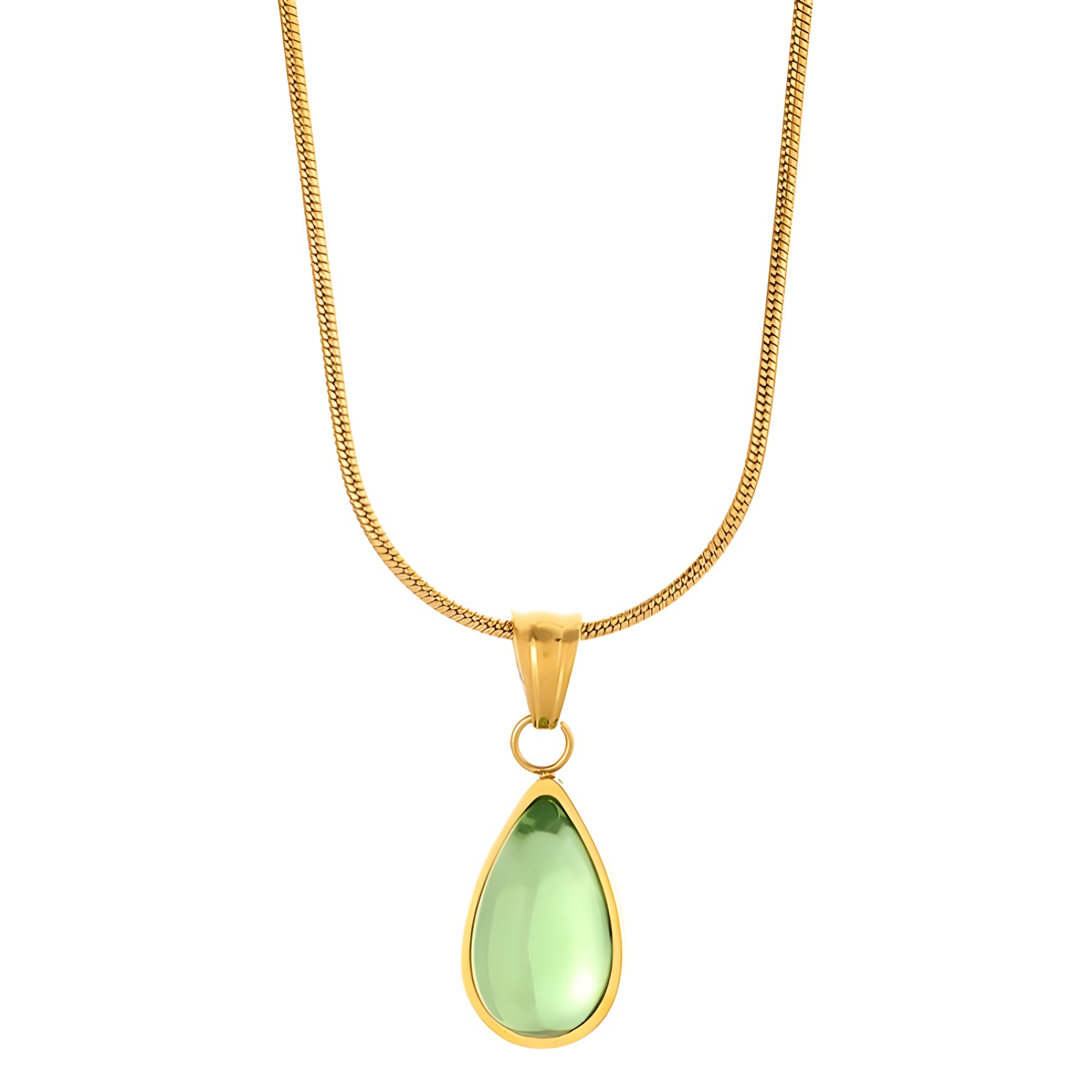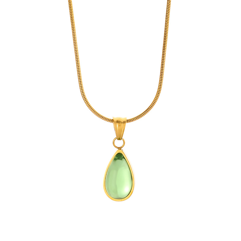 French Style Light Luxury Clear Green Water Drops Blue Marine Titanium Steel Necklace Jewelry Women's Retro Mermaid Tears Clavicle Chain